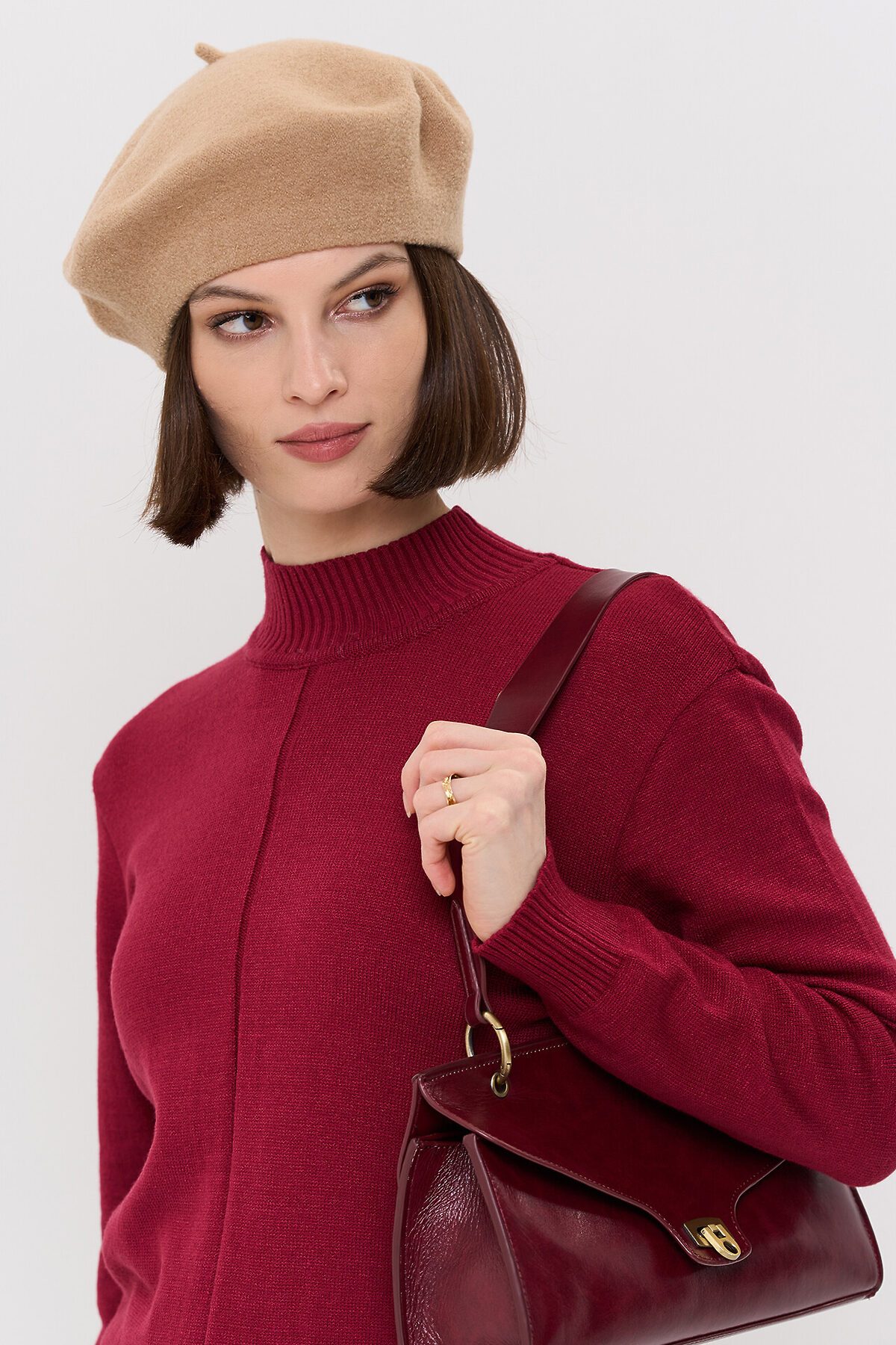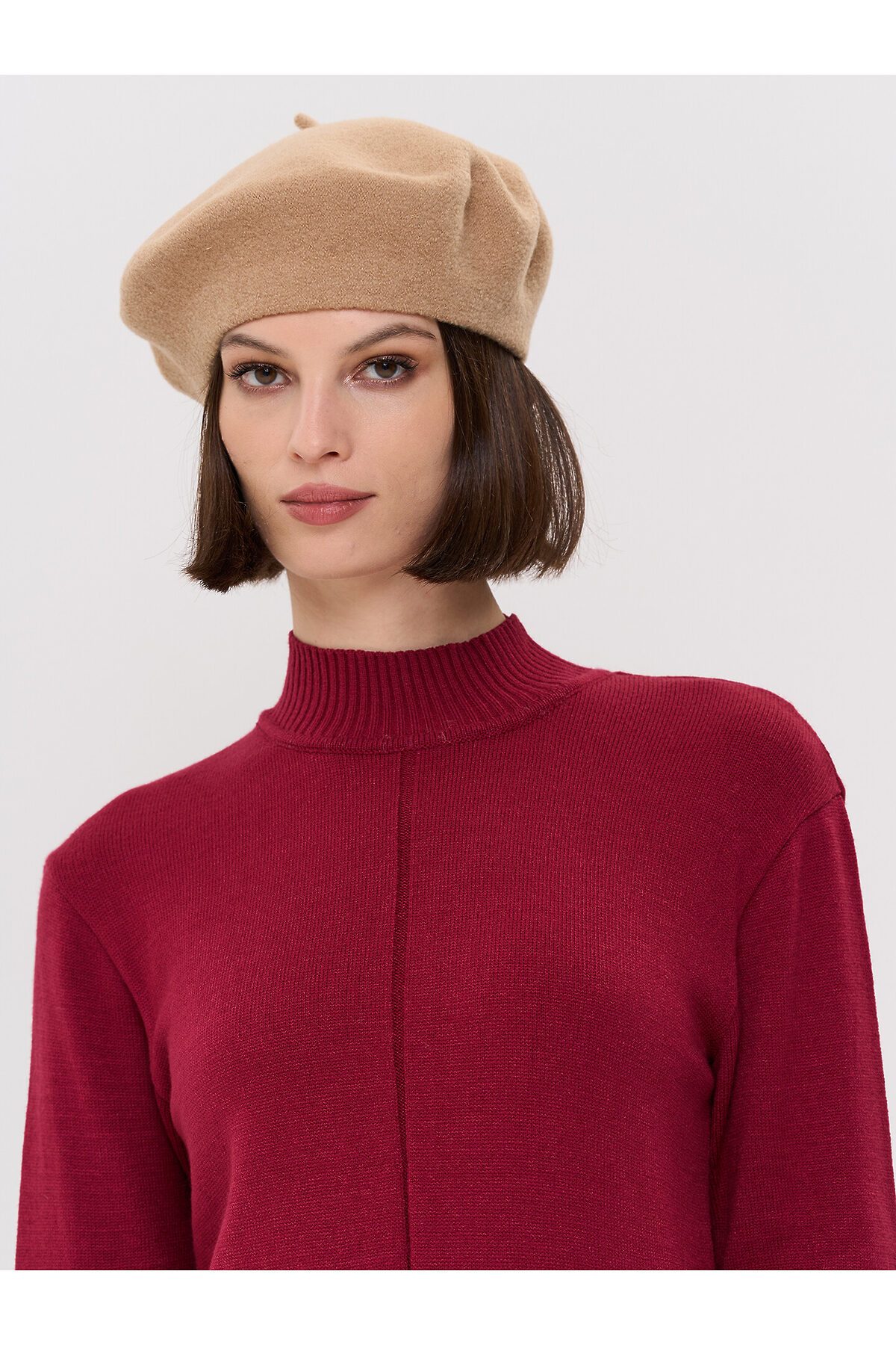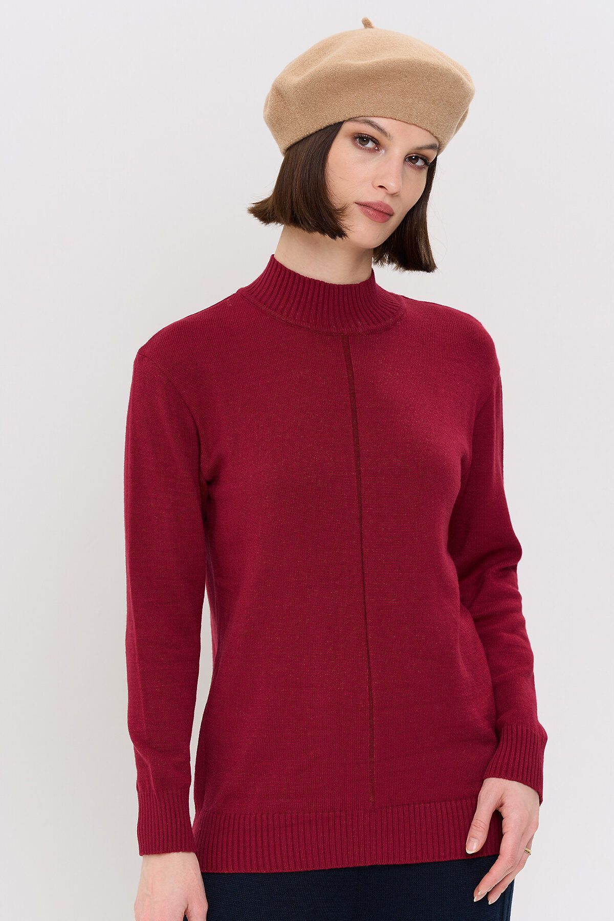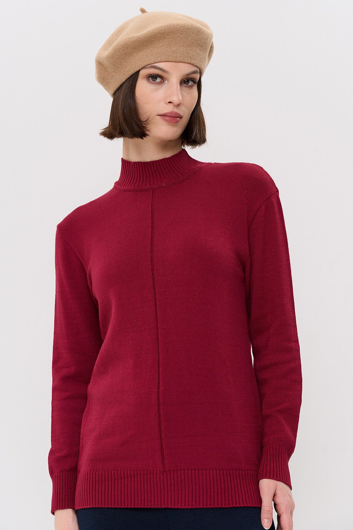Вязаный джемпер с воротником-стойкой.