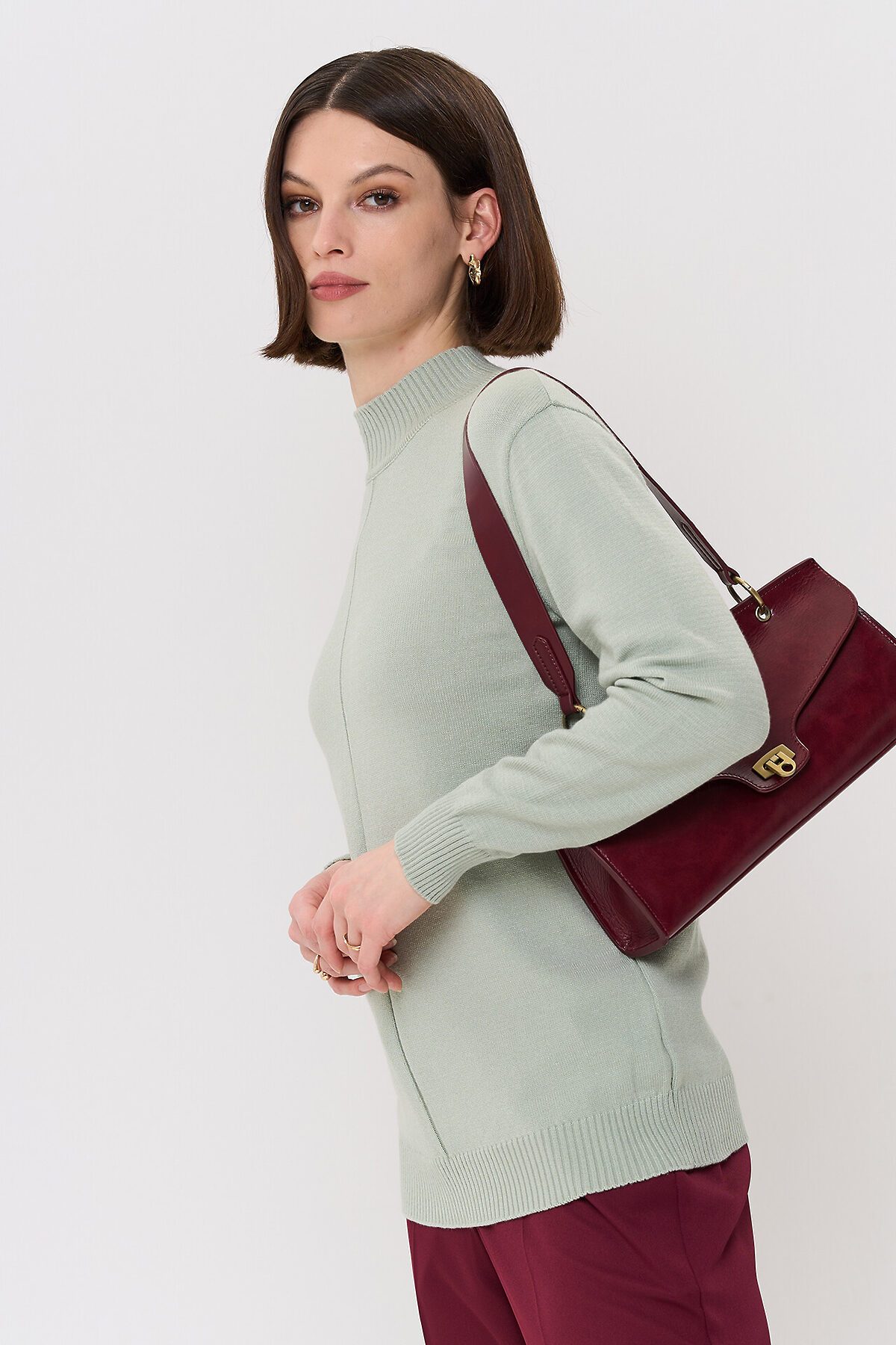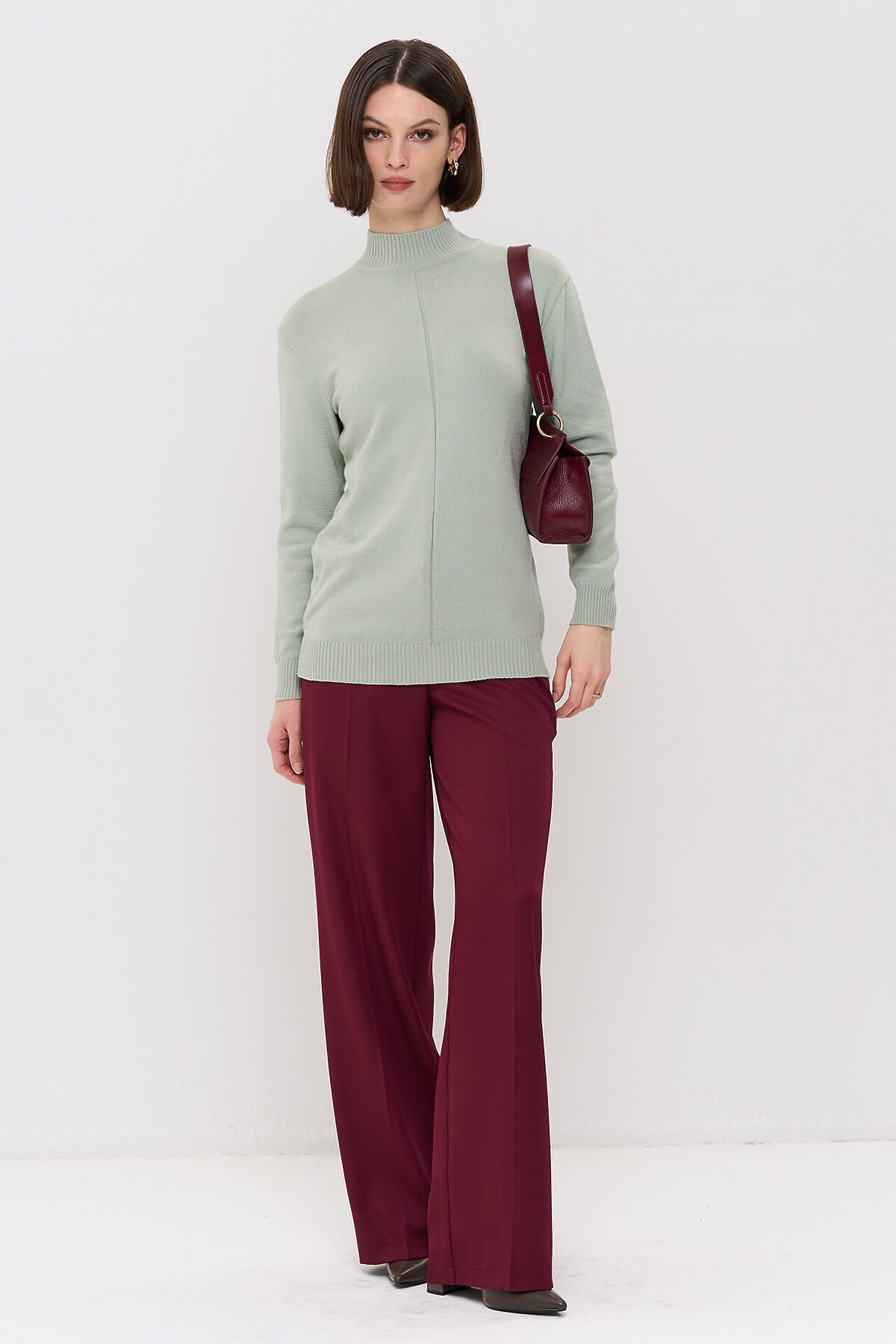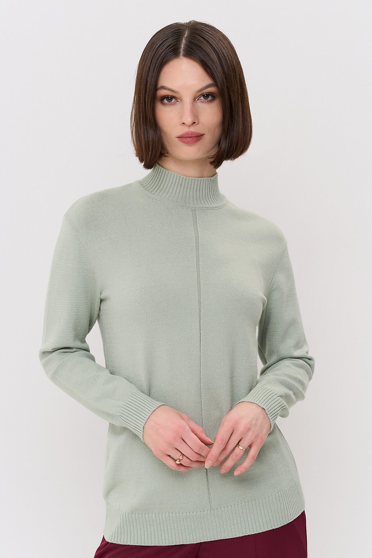 Вязаный джемпер с воротником-стойкой.