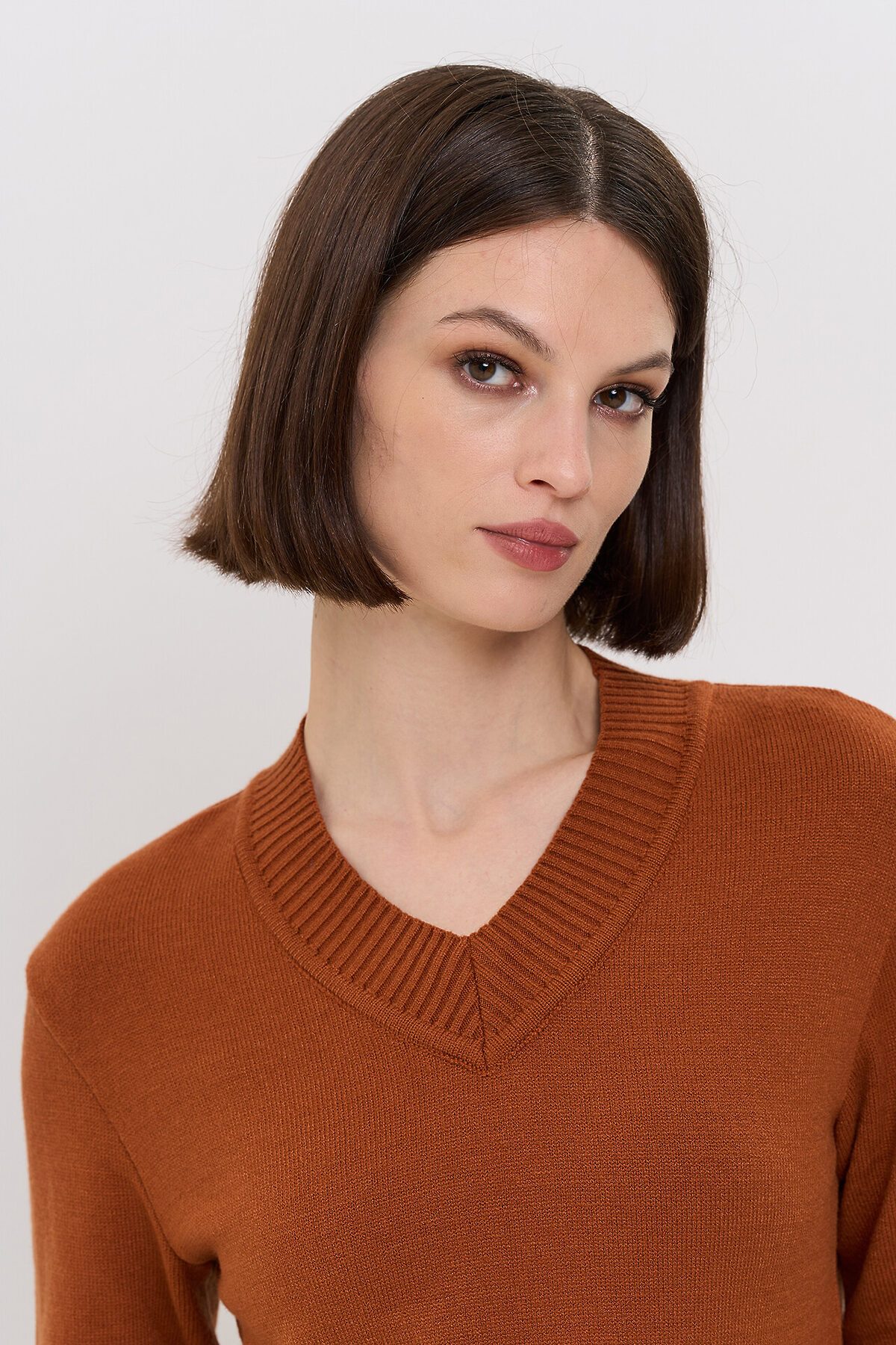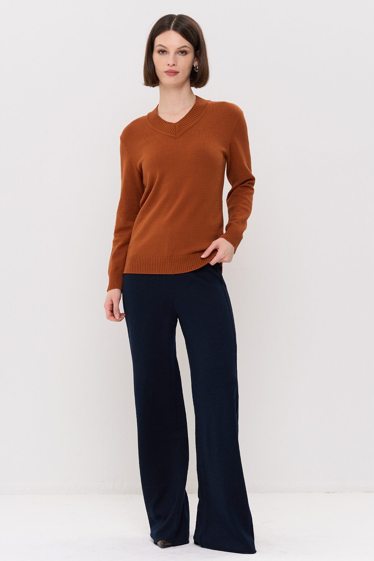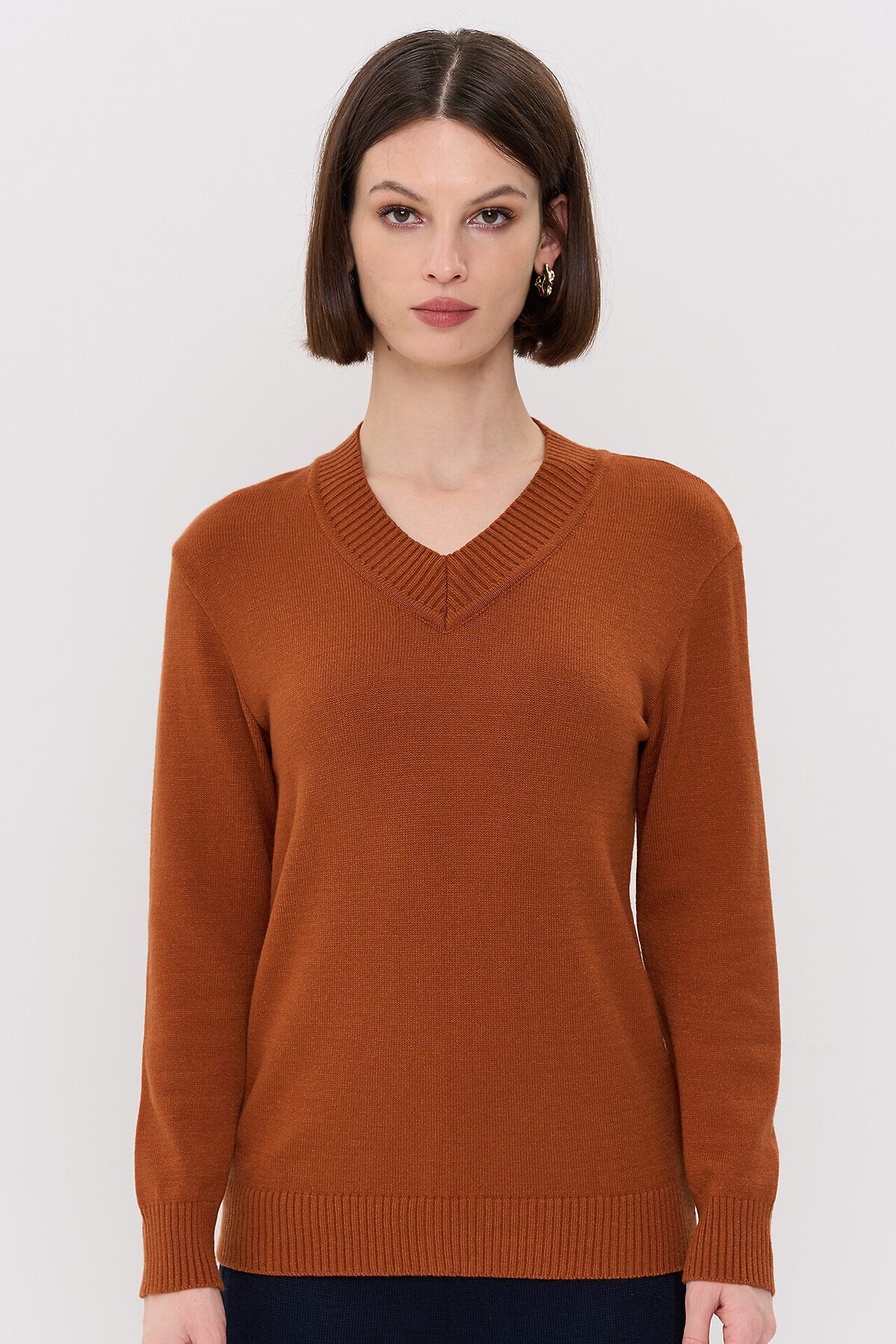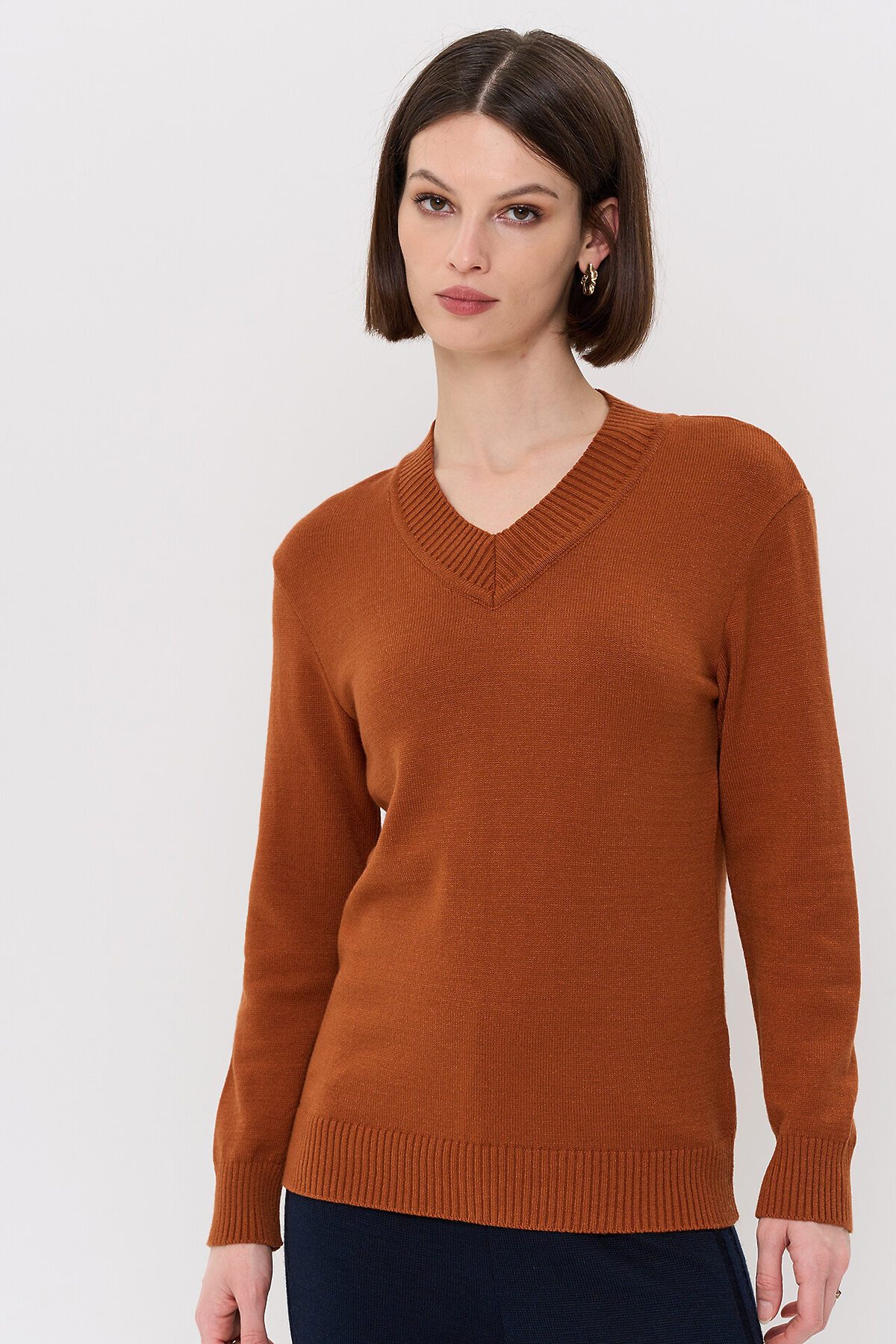 Вязаный джемпер с V-образным вырезом горловины.