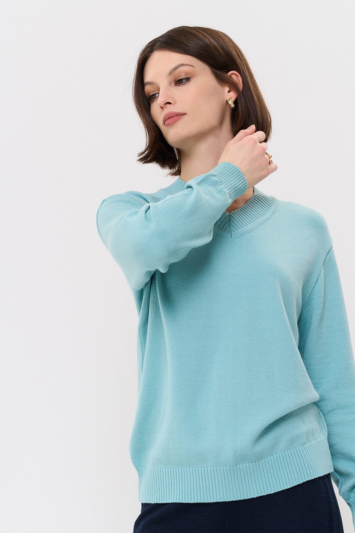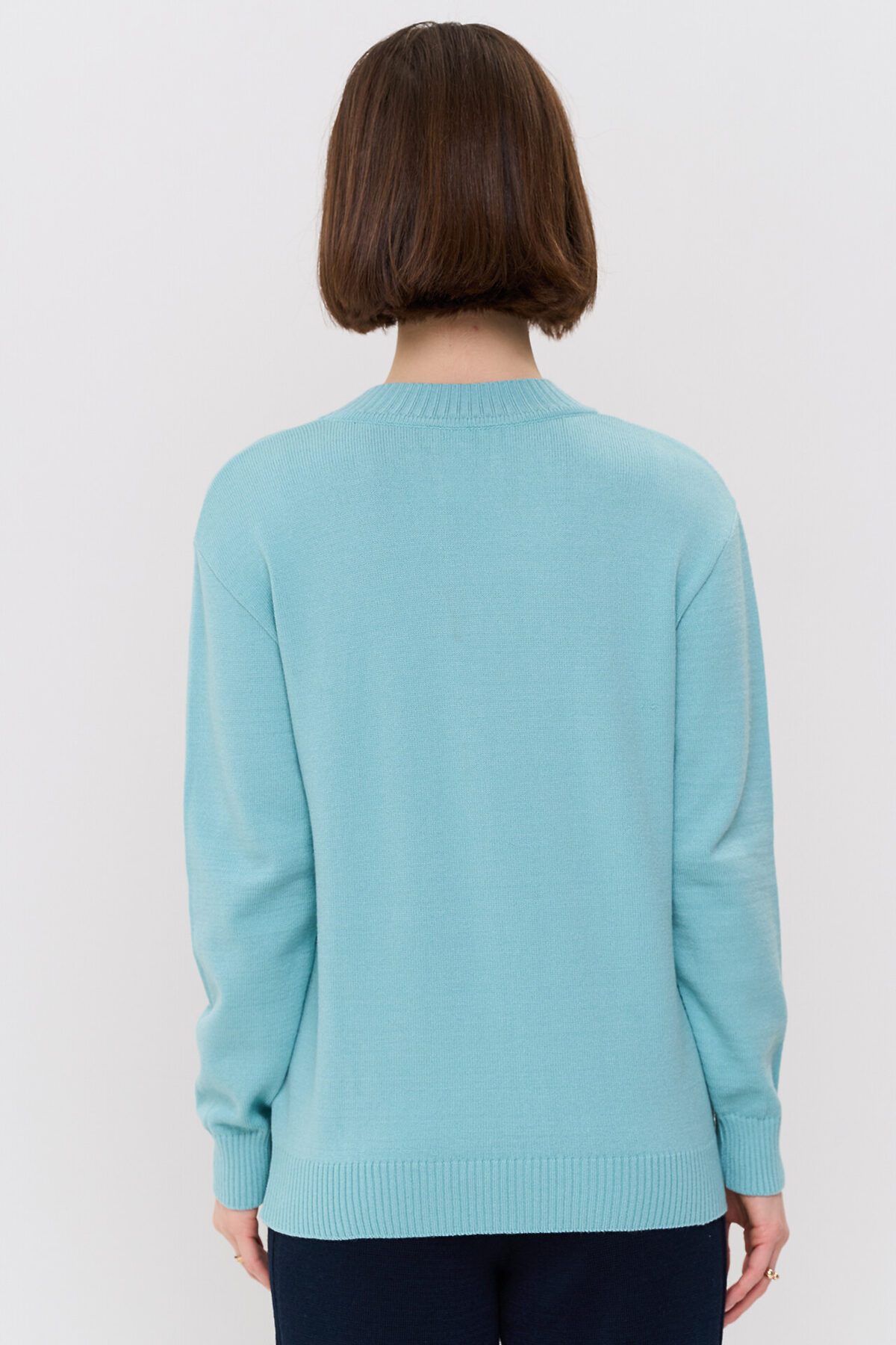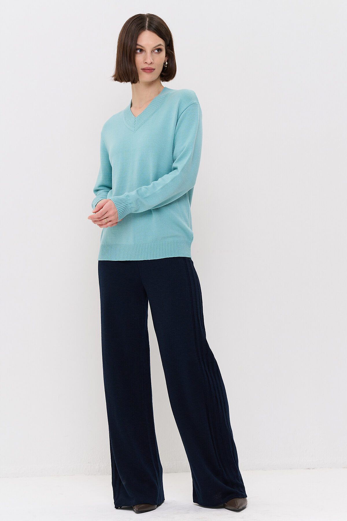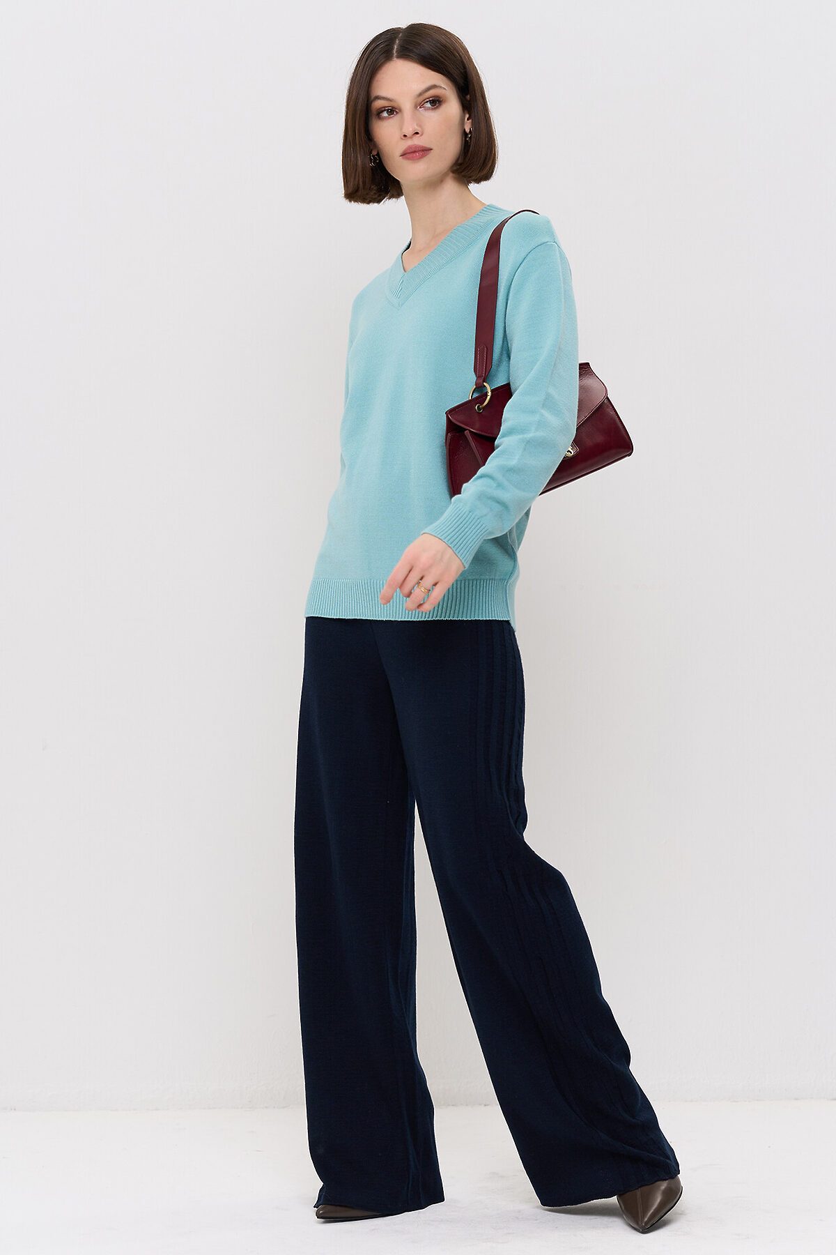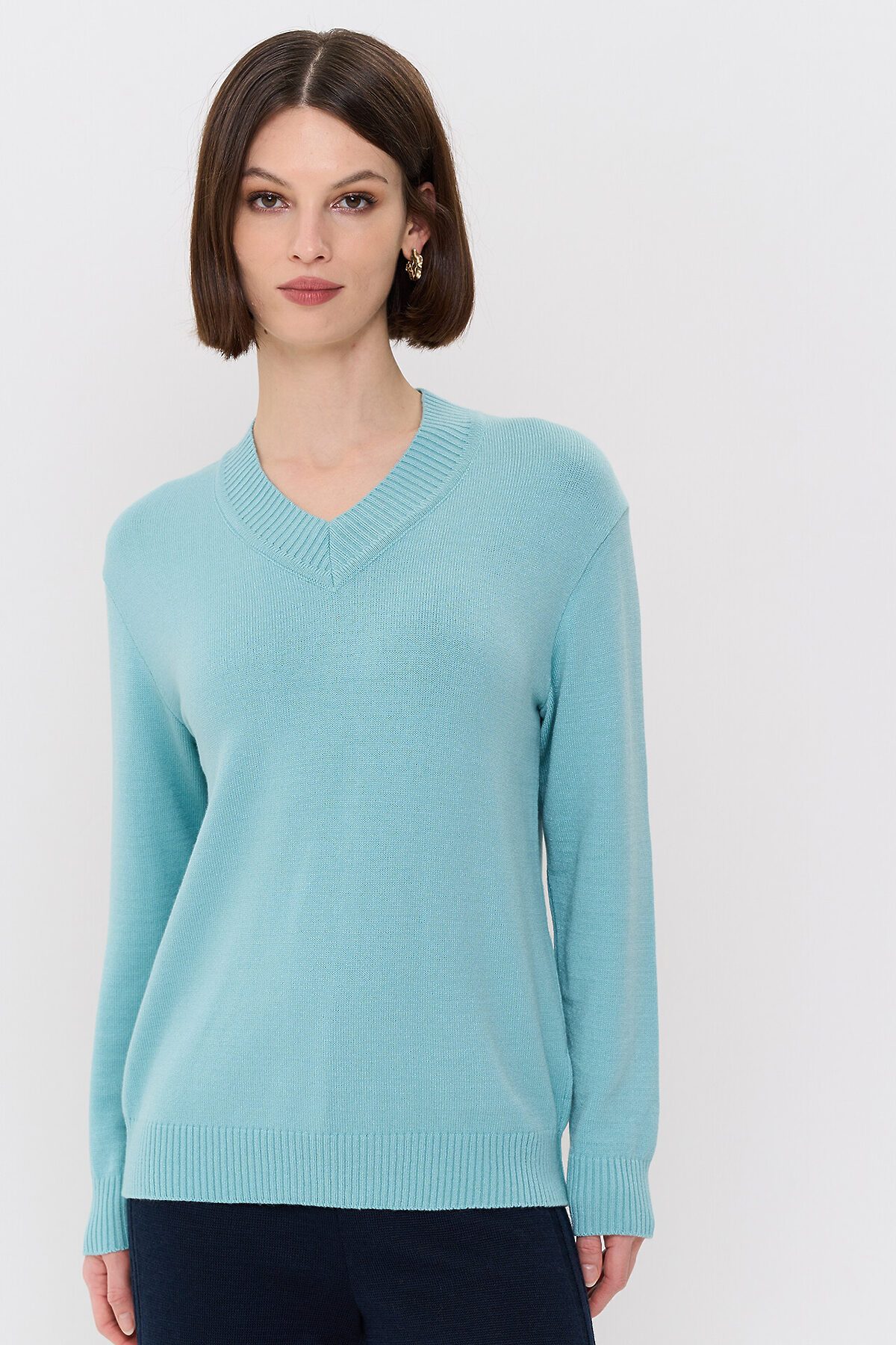 Вязаный джемпер с V-образным вырезом горловины.