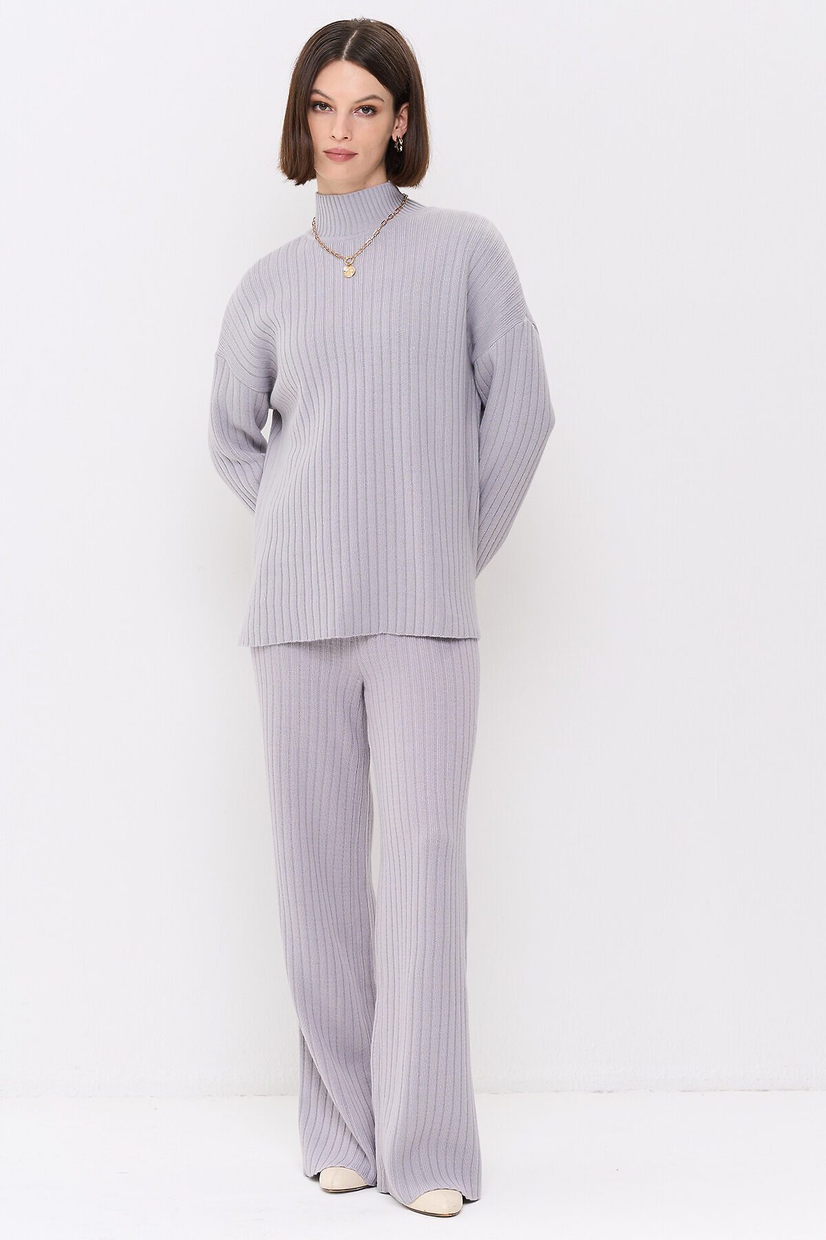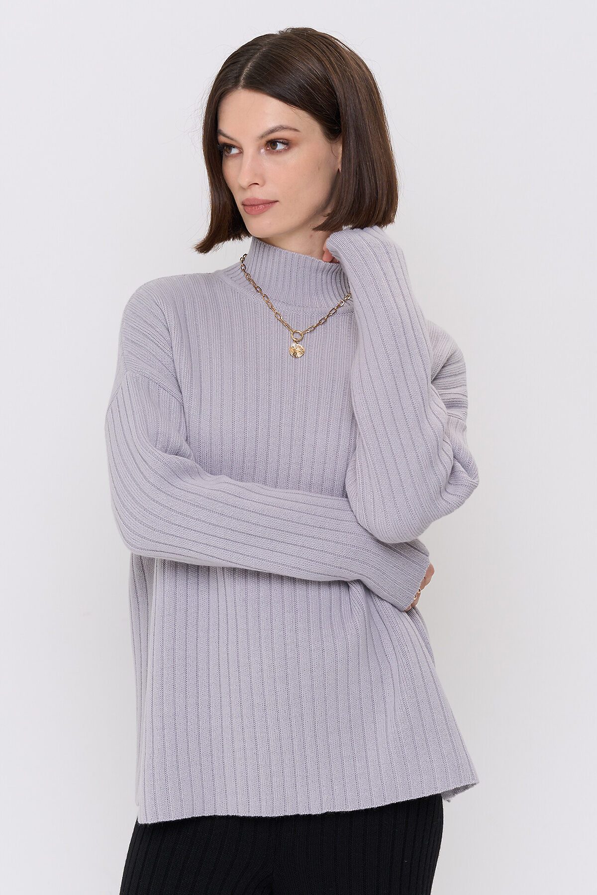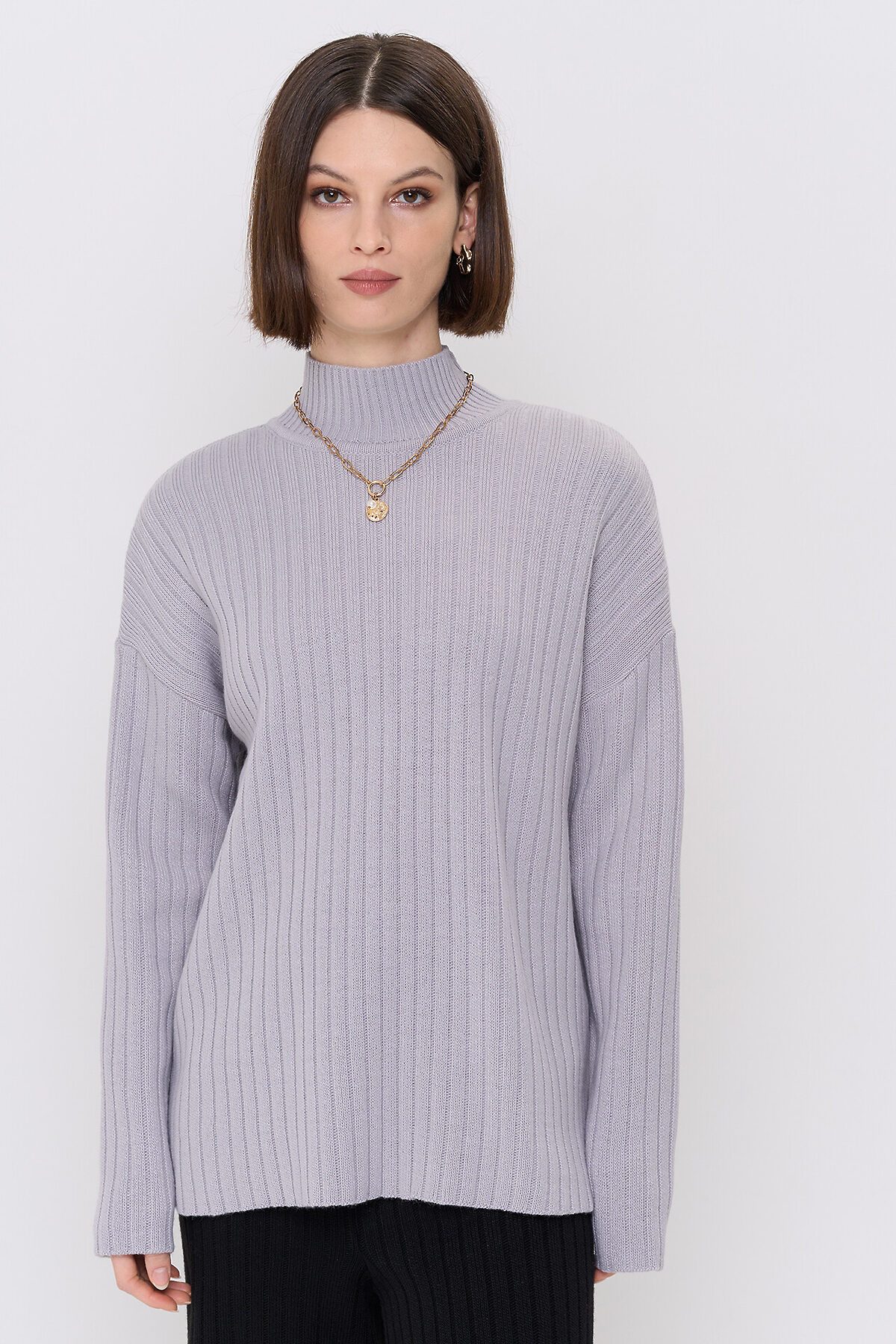 Вязаный джемпер с воротником-стойкой.