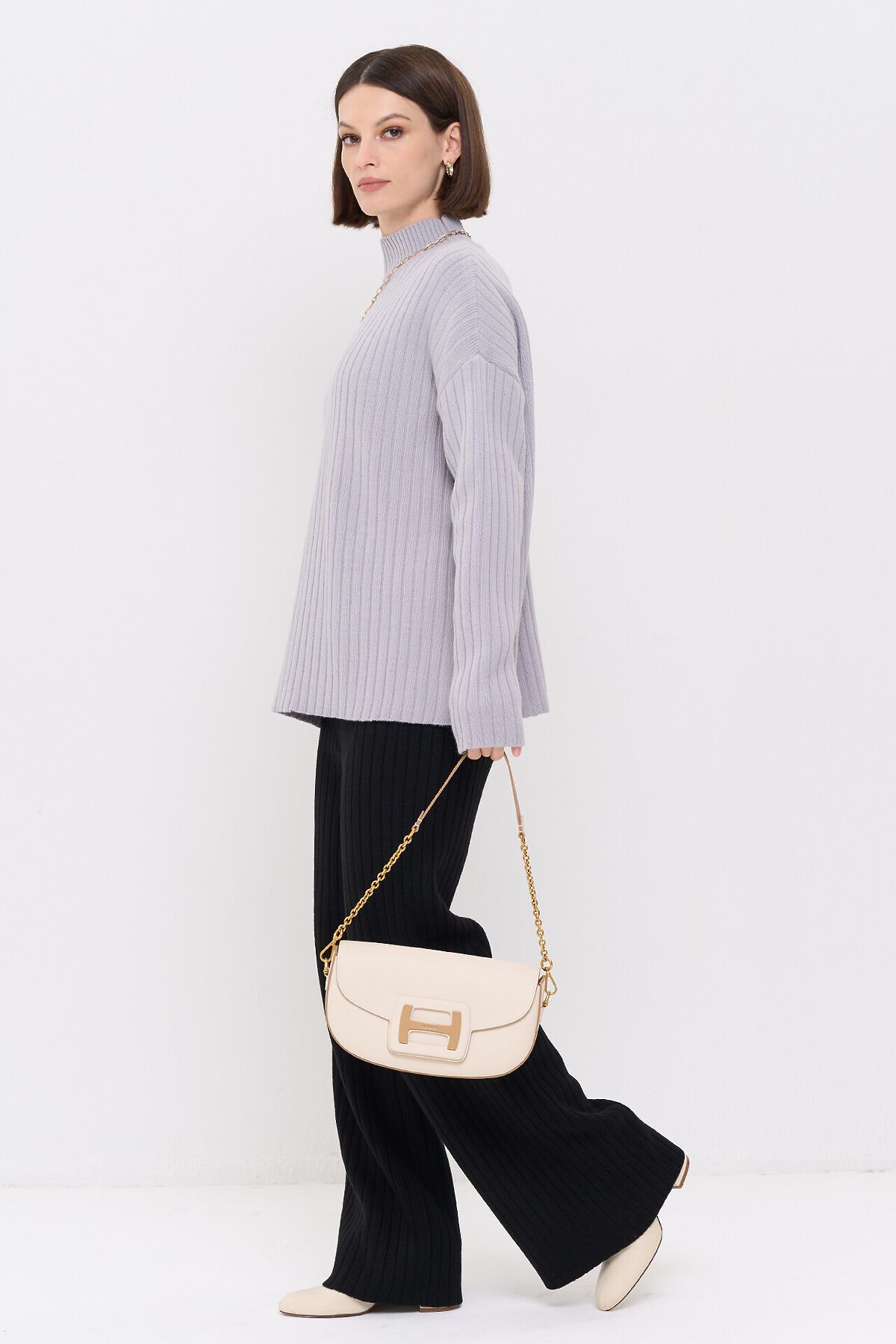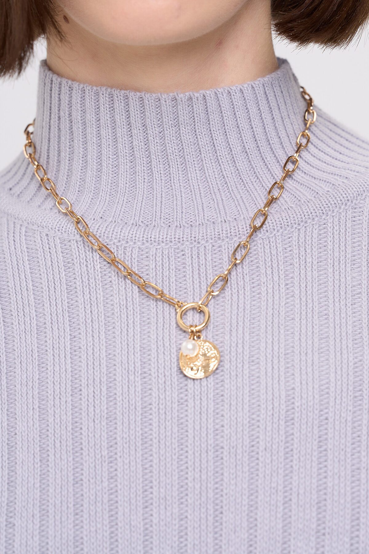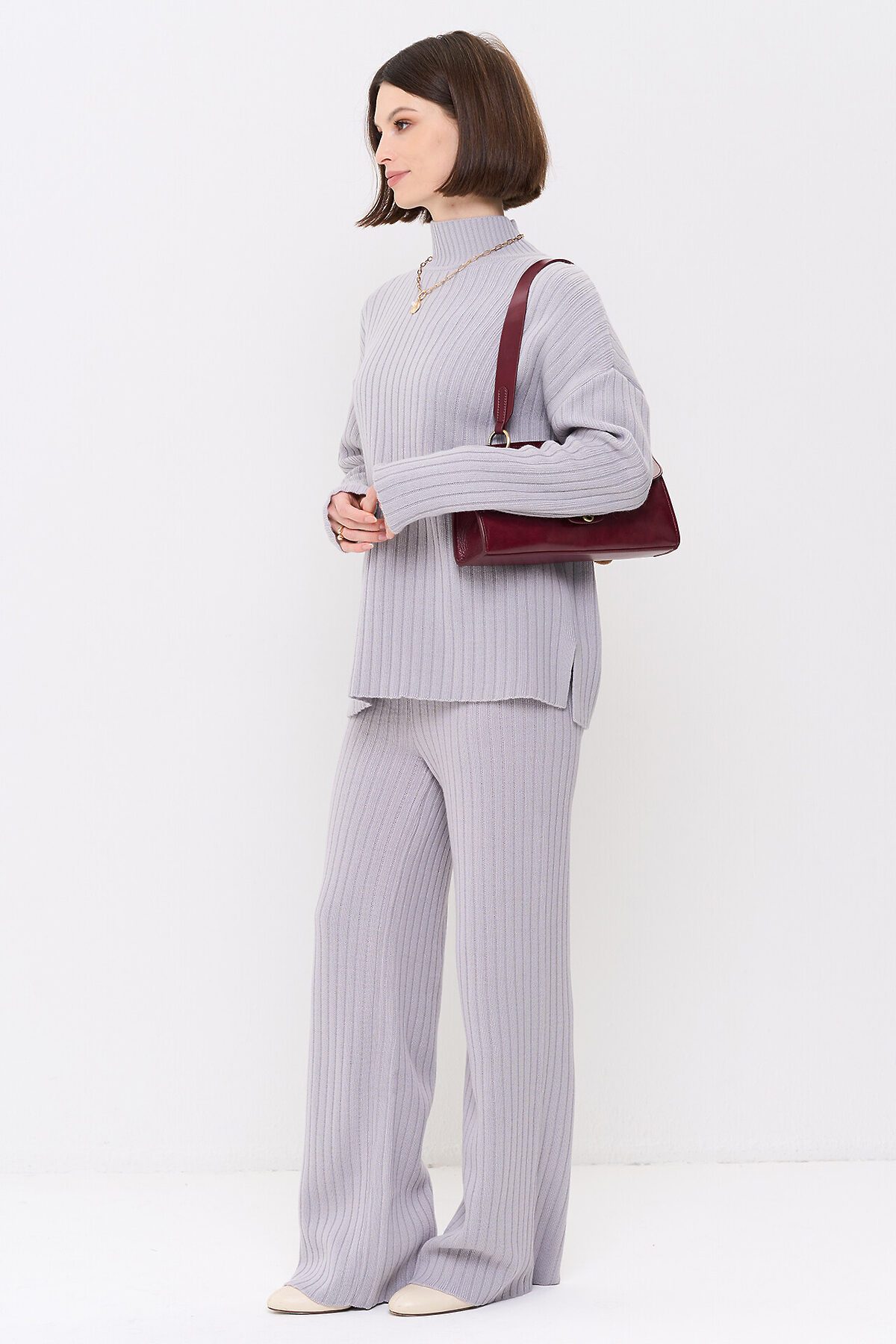 Вязаный джемпер с воротником-стойкой.