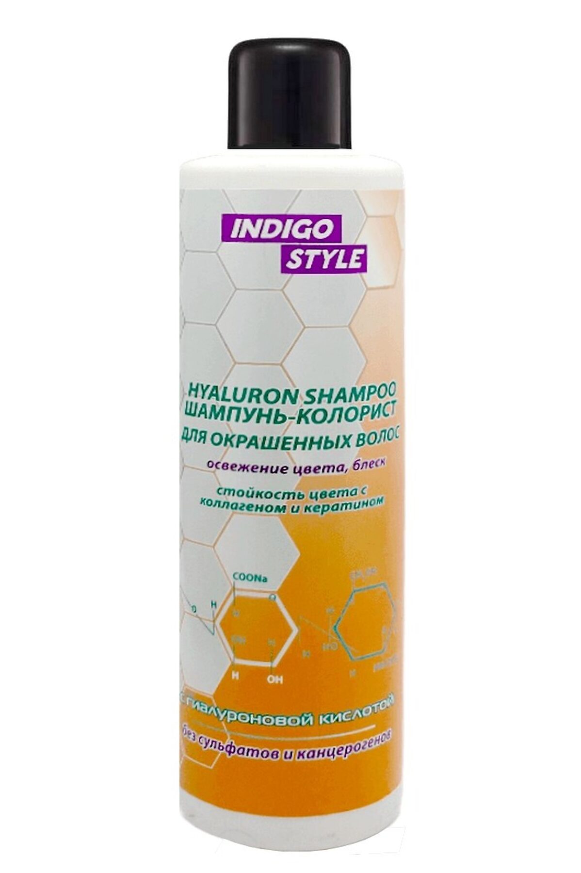 Indigo Style Hyaluron Шампунь-колорист для окрашенных волос, 200 мл (освежение цвета, блеск стойкость цвета с коллагеном и кератином) Помогает защитить цвет от потускнения и сохранить его насыщенность Каждый день волосы такие же насыщенные цветом и роскошные, как после посещения салона. Способствует стойкости цвета. Гиалуроновая кислота в составе, продуцируя выработку кератина и других белков является строительным материалом для клеток луковицы волос, тем самым глубоко питая и защищая их. Это важно для окрашенных волос, так как они подвергаются сильному химическому воздействию, частично разрушающему клетки. Гиалуроновая кислота гарантирует интенсивное увлажнение волос, это практически незаменимый компонент для их питания. Она хорошо притягивает молекулы воды, благодаря чему волосы имеют ухоженный вид. Гиалуроновая кислота – мощный активатор роста волос, она стимулирует кровообращение и катализирует выработку белков, коллагена и эластина. Гиалурон способствует полному восстановлению волос после всех видов окрашивания, химической завивки и иных видов воздействия на волосы в салонных и домашних условиях. Улучшает процесс синтеза организмом кератина, благодаря чему волосы приобретают естественный блеск. Гиалуроновая кислота минимизирует риск выпадения волос. Мягко очищает и подходит для ежедневного применения. Шампунь бережно очищает волосы, обеспечивая максимальный уход и восстановление поврежденной структуры. Гиалуроновая кислота — как заплатка, она помогает восстановить структуру волос и служит строительным материалом для восстановления структуры, регенерации волос и является превосходным восстанавливающим, питательным, увлажняющим и защитным средством при уходе за ломкими, секущимися, ослабленными волосами, которые часто подвергаются химической и термической обработке, а также неблагоприятным воздействия окружающей среды: перемены климата, плохая экология и т.д. Важным достоинством препарата является мягкое и профессиональное очищение кожи головы и волос от любых видов загрязнений, так как восстанавливающие компоненты глубоко воздействуют на поврежденные участки. Шампунь придает тонким, ослабленным, сухим волосам дополнительный объем и естественный блеск. Активные ингредиенты в составе питают и разглаживают внешнюю поверхность волос. Важен так же дополнительный эффект: облегчается расчесывание, исчезает ломкость волос. Гиалуроновая кислота образует защитную пленку на поверхности кожи головы, благодаря чему ее сопротивление негативным факторам окружающей среды усиливается. Происходит нормализация внутренних процессов обмена, идет восстановление водного баланса. Исчезает сухость, по этой же причине устраняется и перхоть, а шевелюра при этом преображается внешне — появляется блеск, локоны приобретают видимую упругость и гладкость. Из-за интенсивного питания ускоряется рост волосяных стержней, что приводит к увеличению общей густоты и утолщению каждого волоска. Важна способность гиалуроновой кислоты усиливать эффект других активных компонентов,