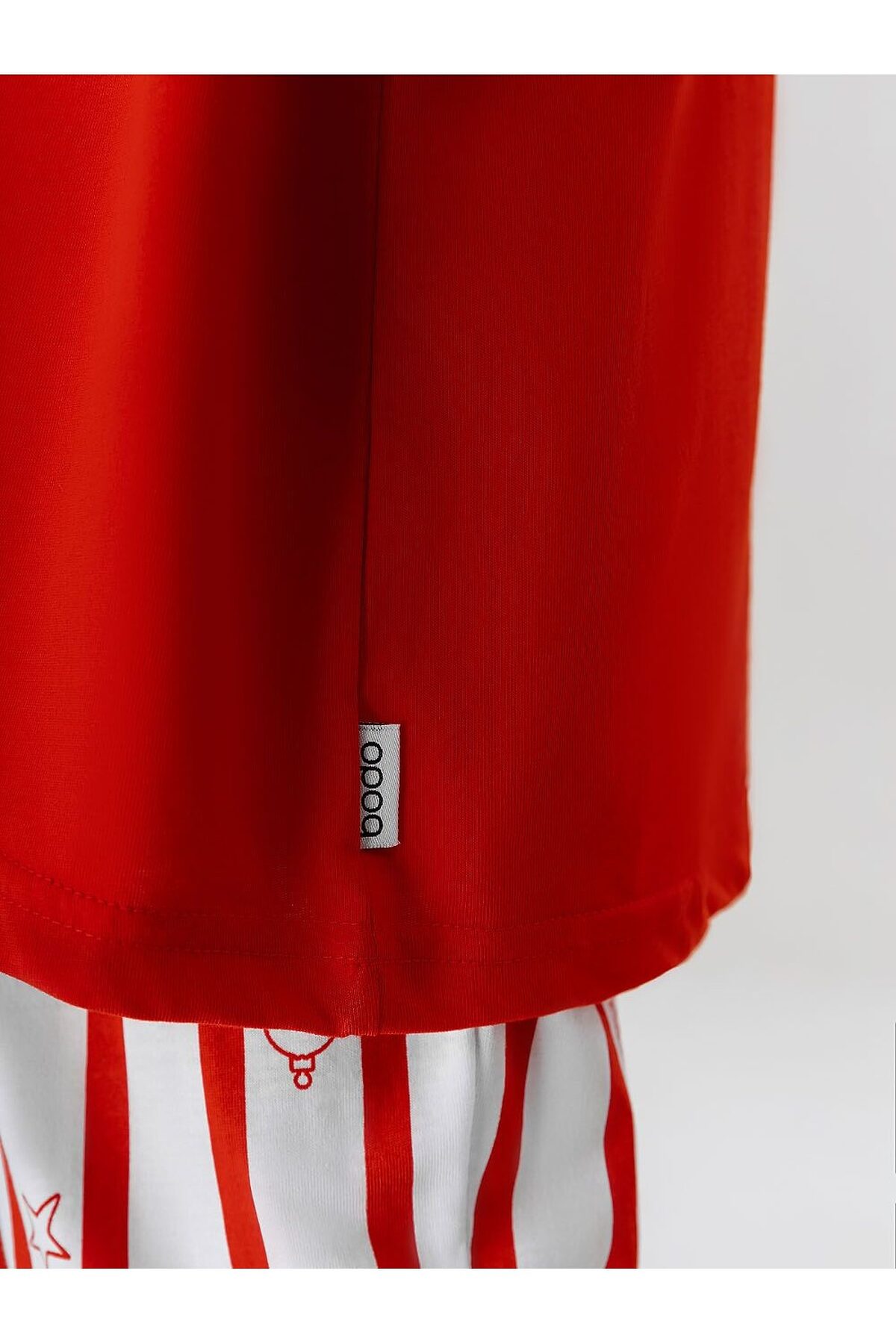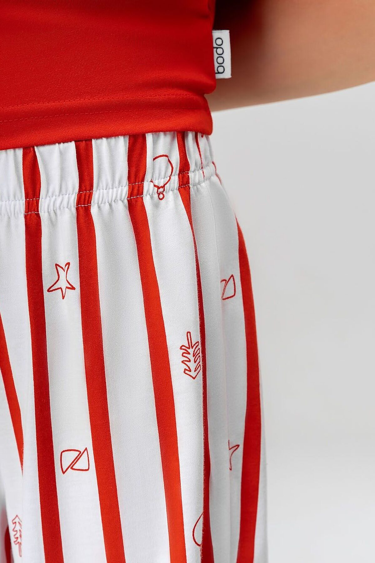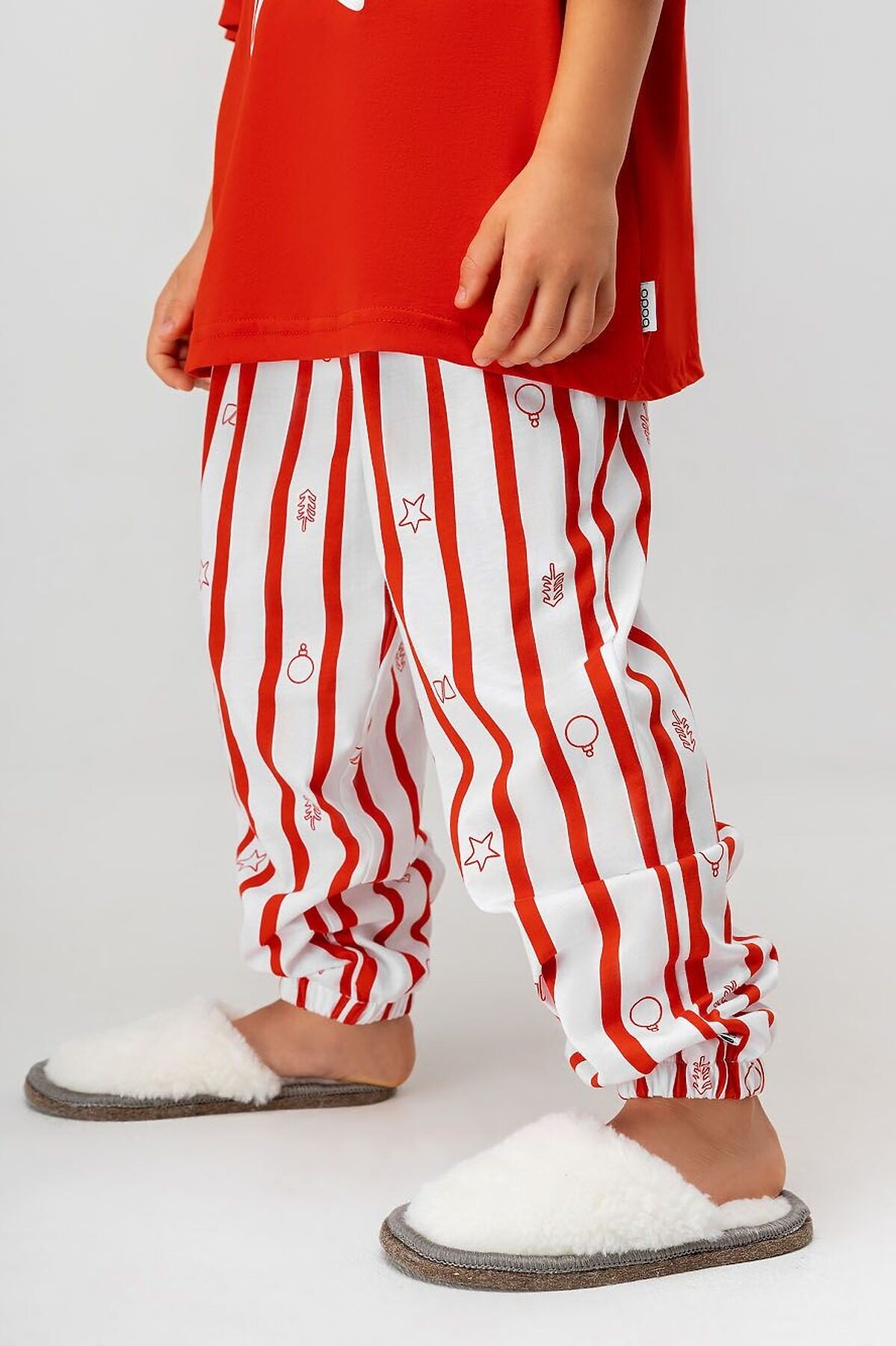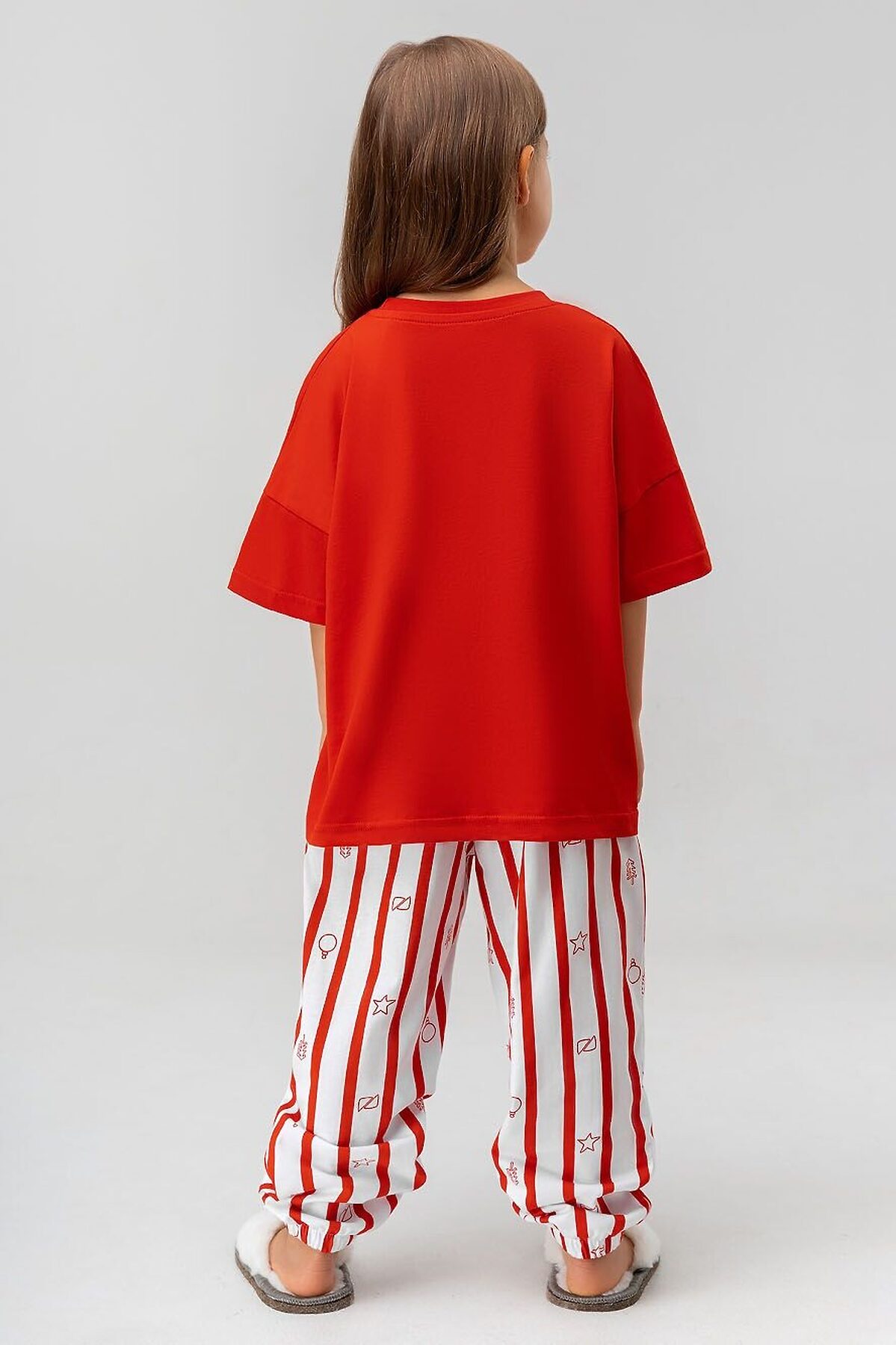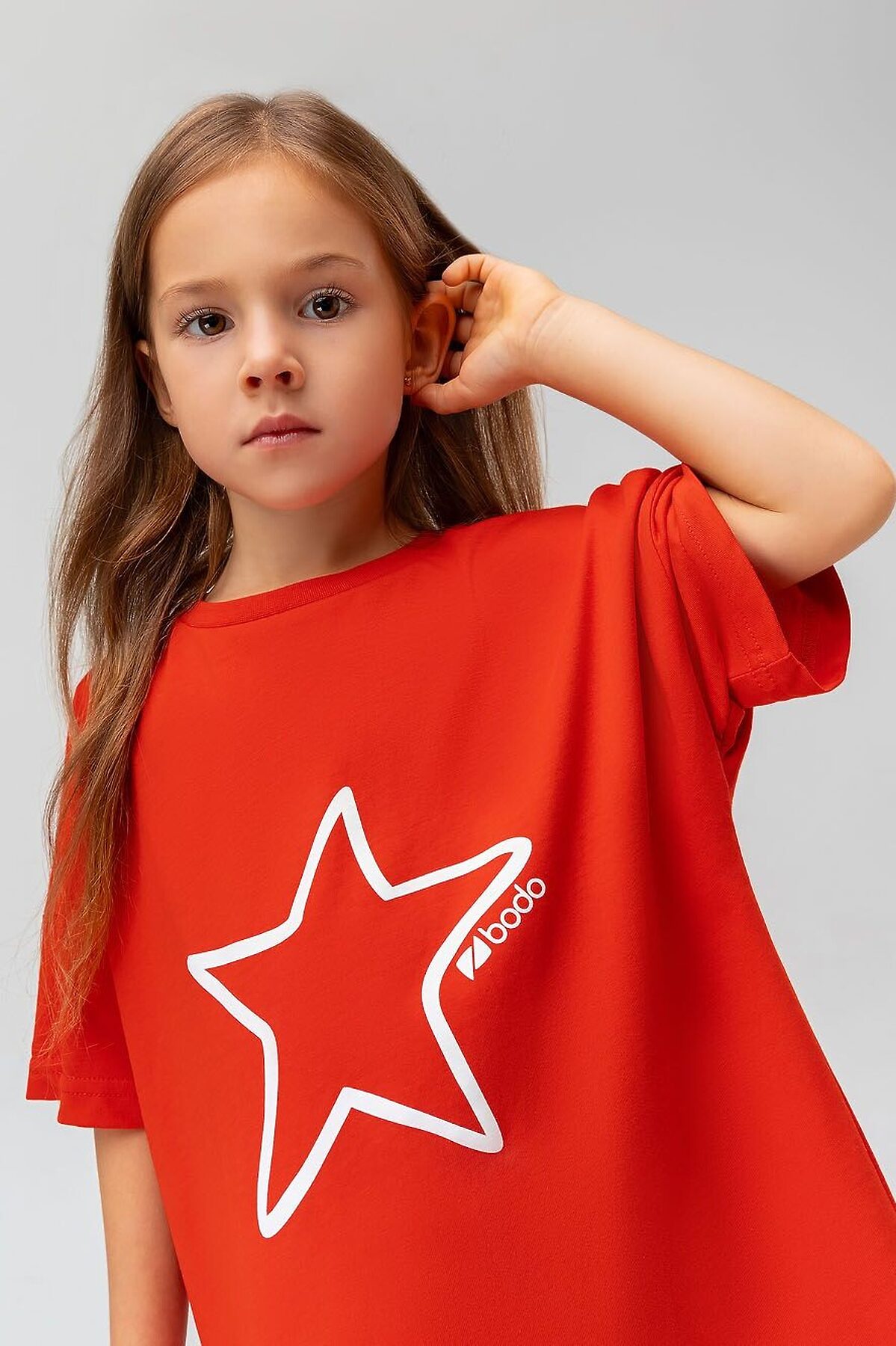 Футболка свободного силуэта с коротким рукавом. Горловина футболки округлой формы. Низ изделия прямой. На полочке расположен принт "Звезда". Брюки свободного силуэта, без карманов, низ изделия на резинке.