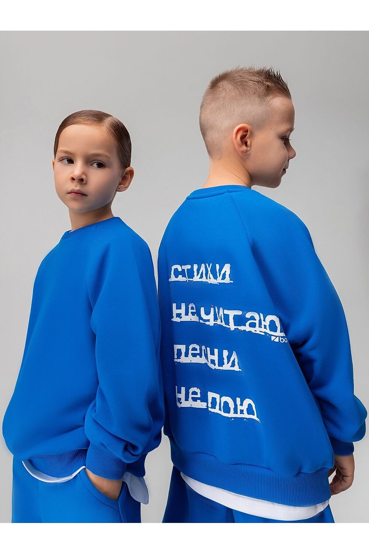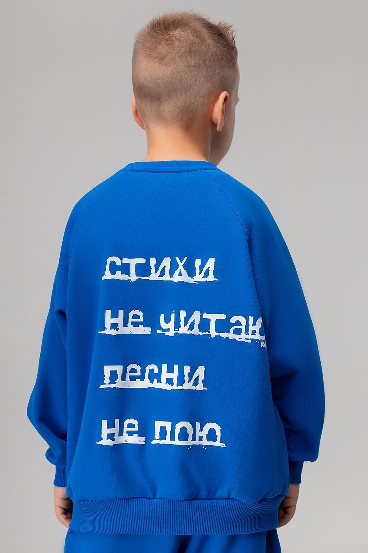 Свитшот прямого силуэта, с длинным рукавом на манжете. Свитшот с поясом по низу изделия. На спинке принт "Стихи не читаю Песни не пою" . Свободные брюки на поясе с внутренней резинкой. Низ брюк с манжетой на резинке. Брюки с боковыми карманами.