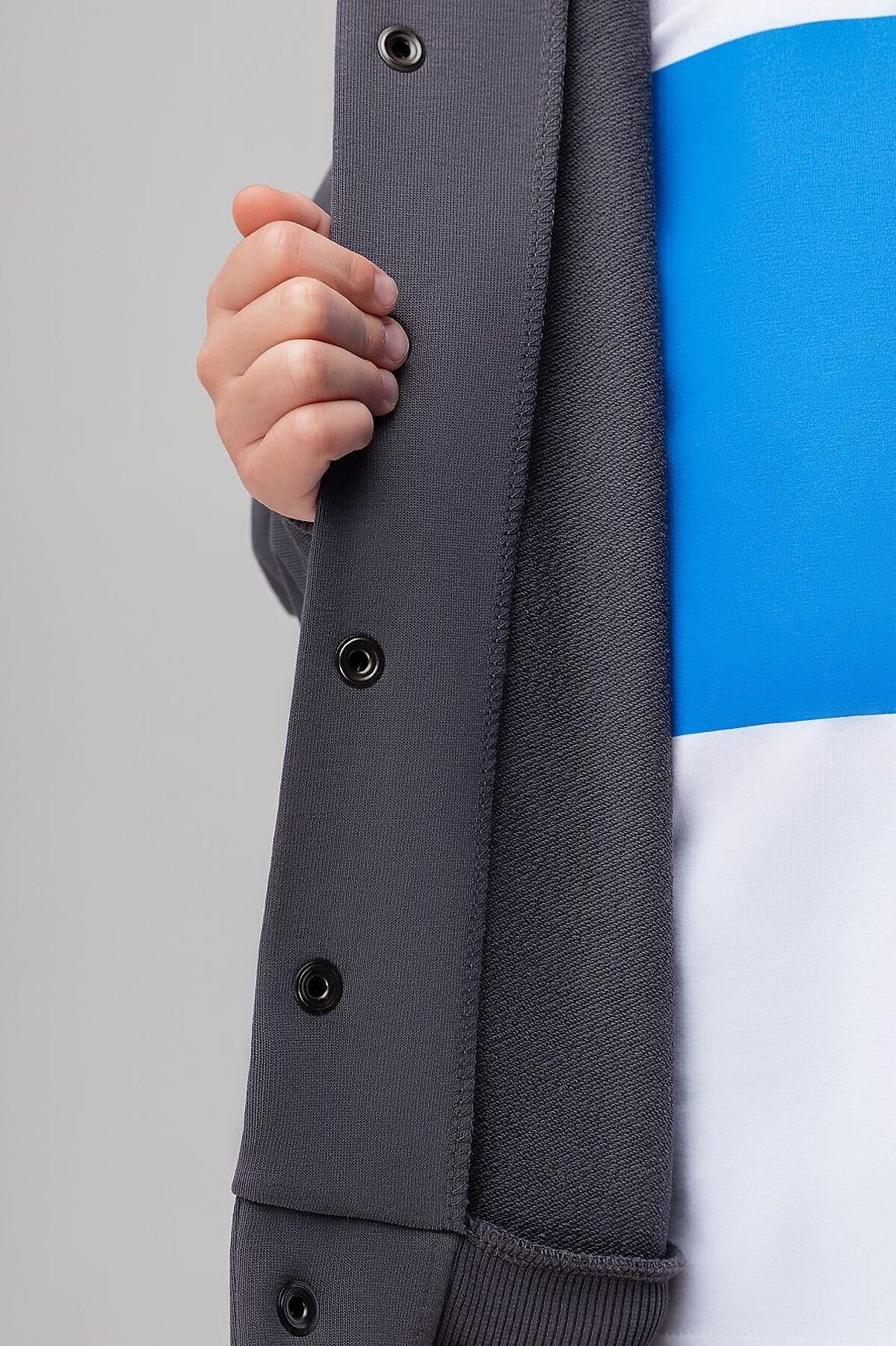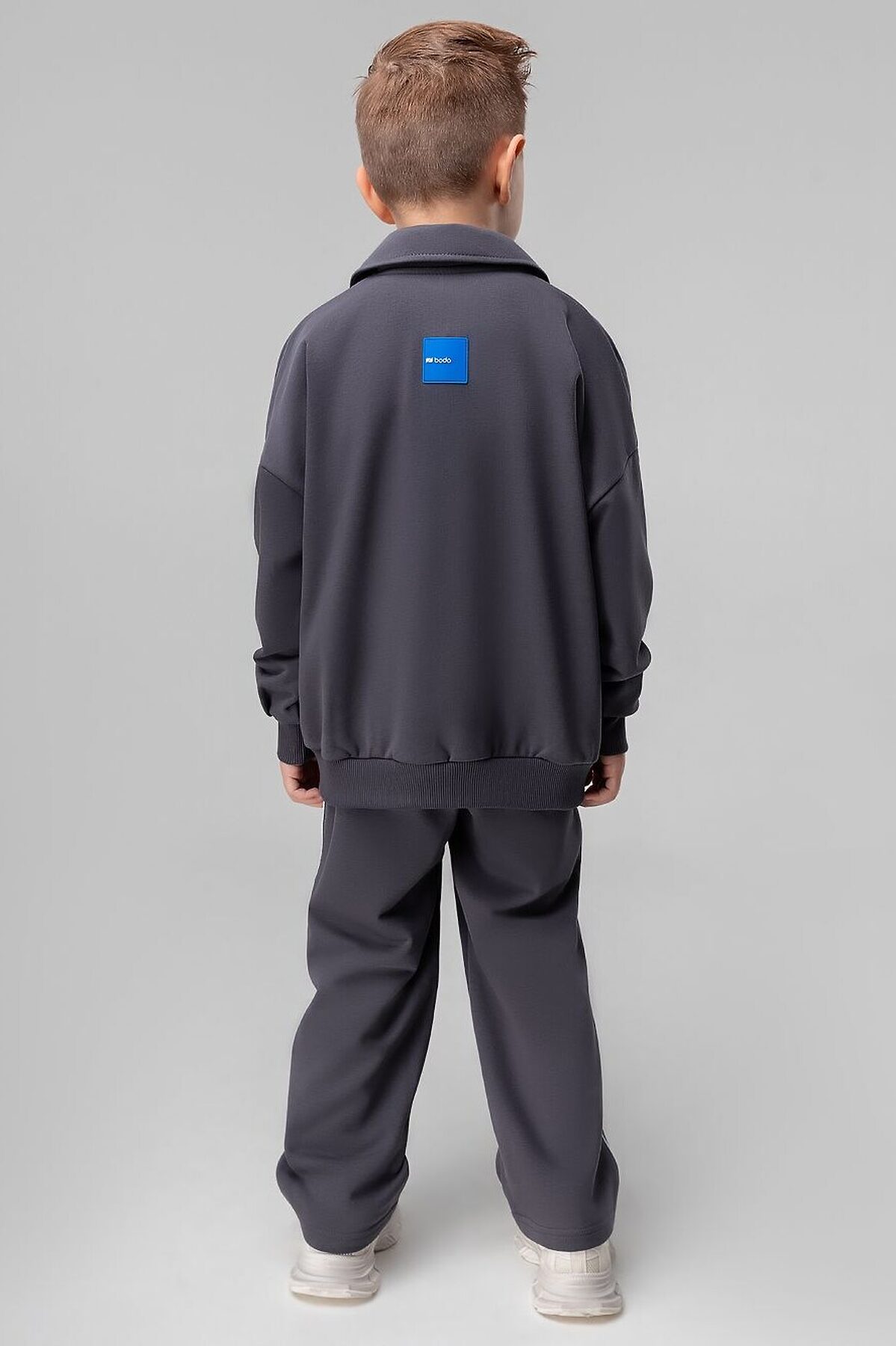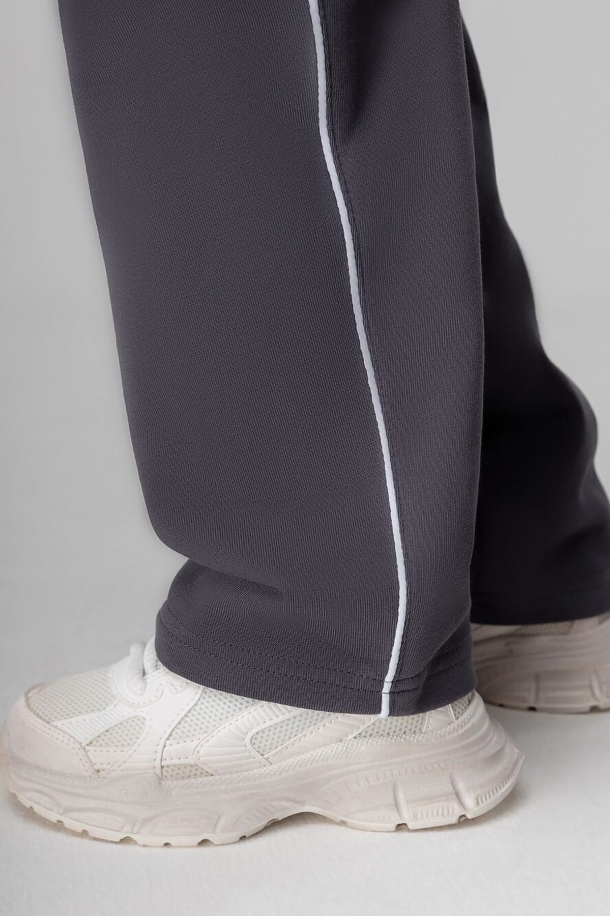 Свободная толстовка прямого силуэта на кнопках, с длинным рукавом с манжетой. Толстовка с отложным воротником. Толстовка с поясом по низу изделия. Брюки прямые свободные на поясе с внутренней резинкой. С боковыми карманами. Брюки оформлены атласным кантом по боковым швам.