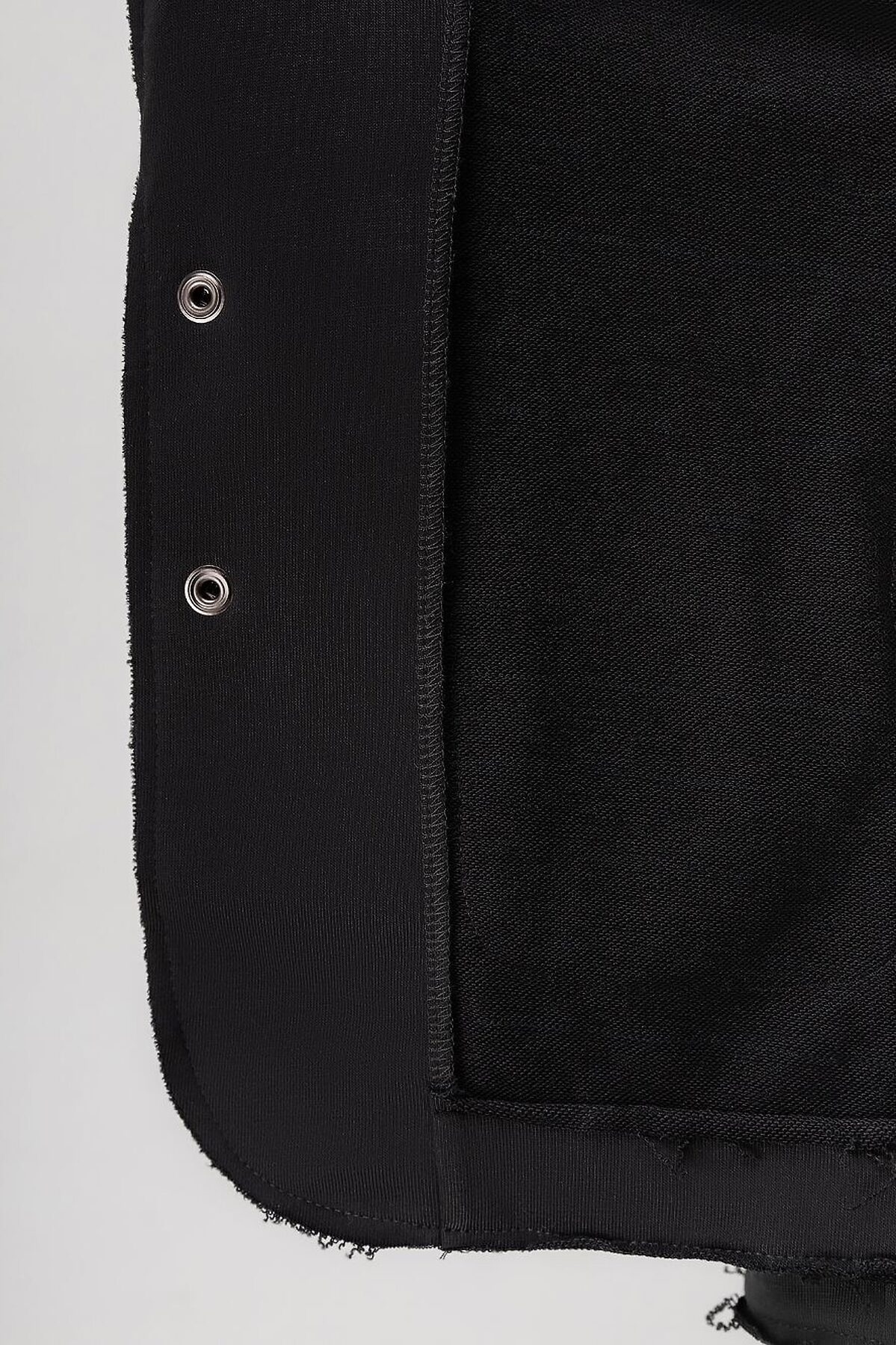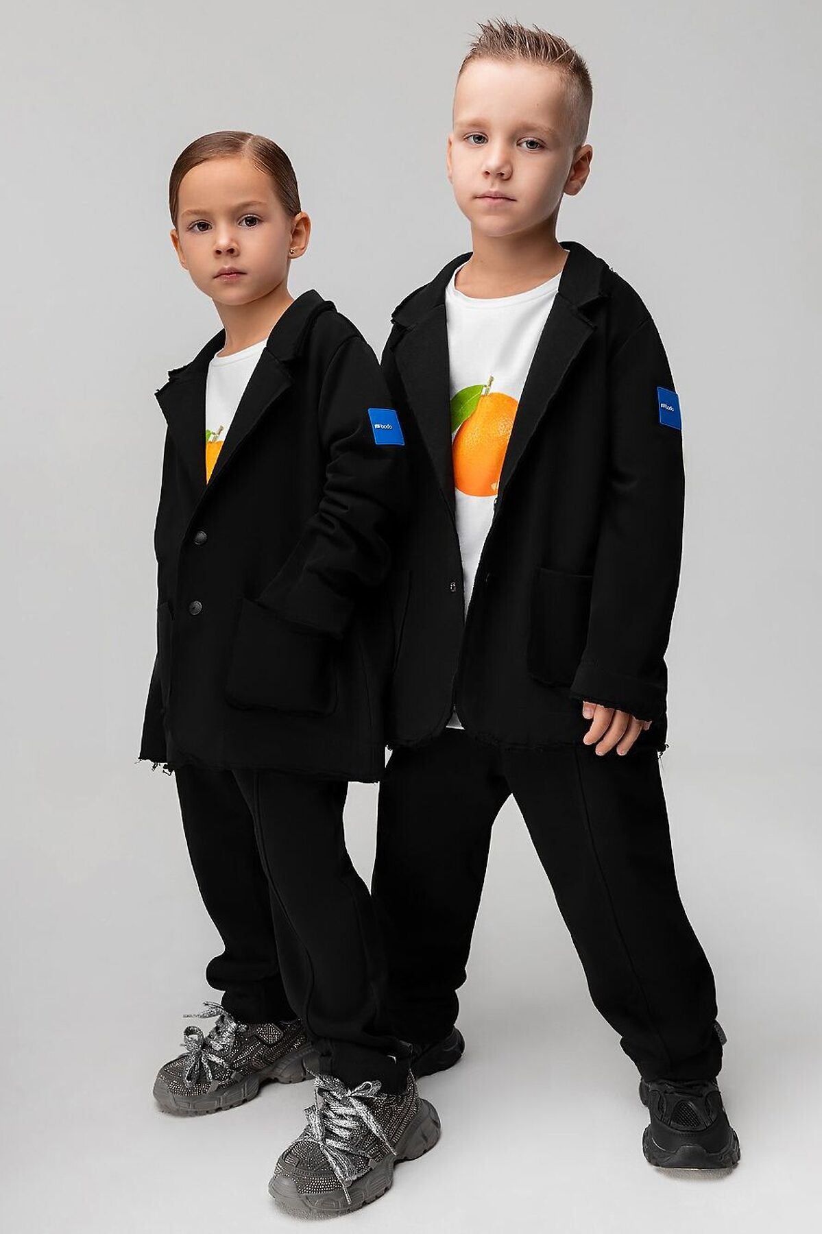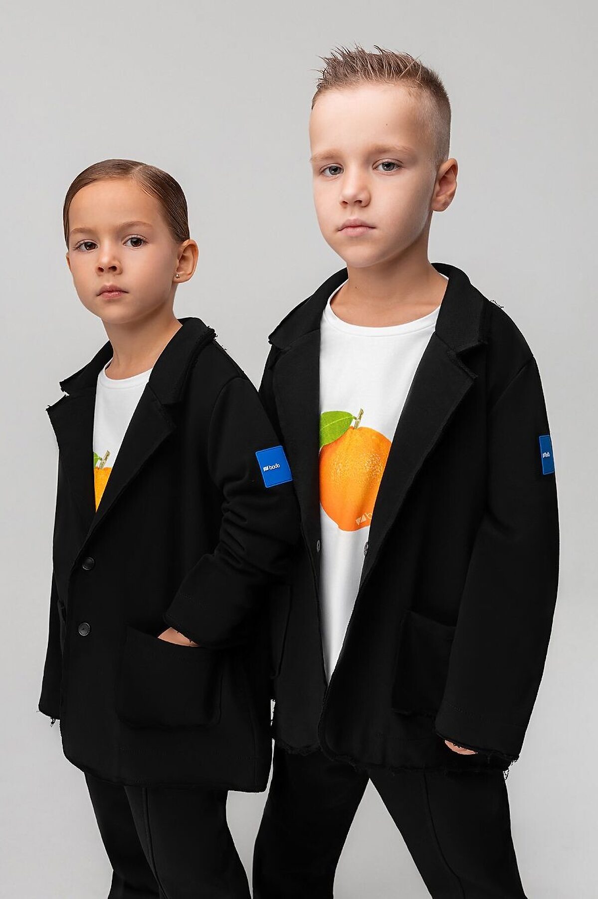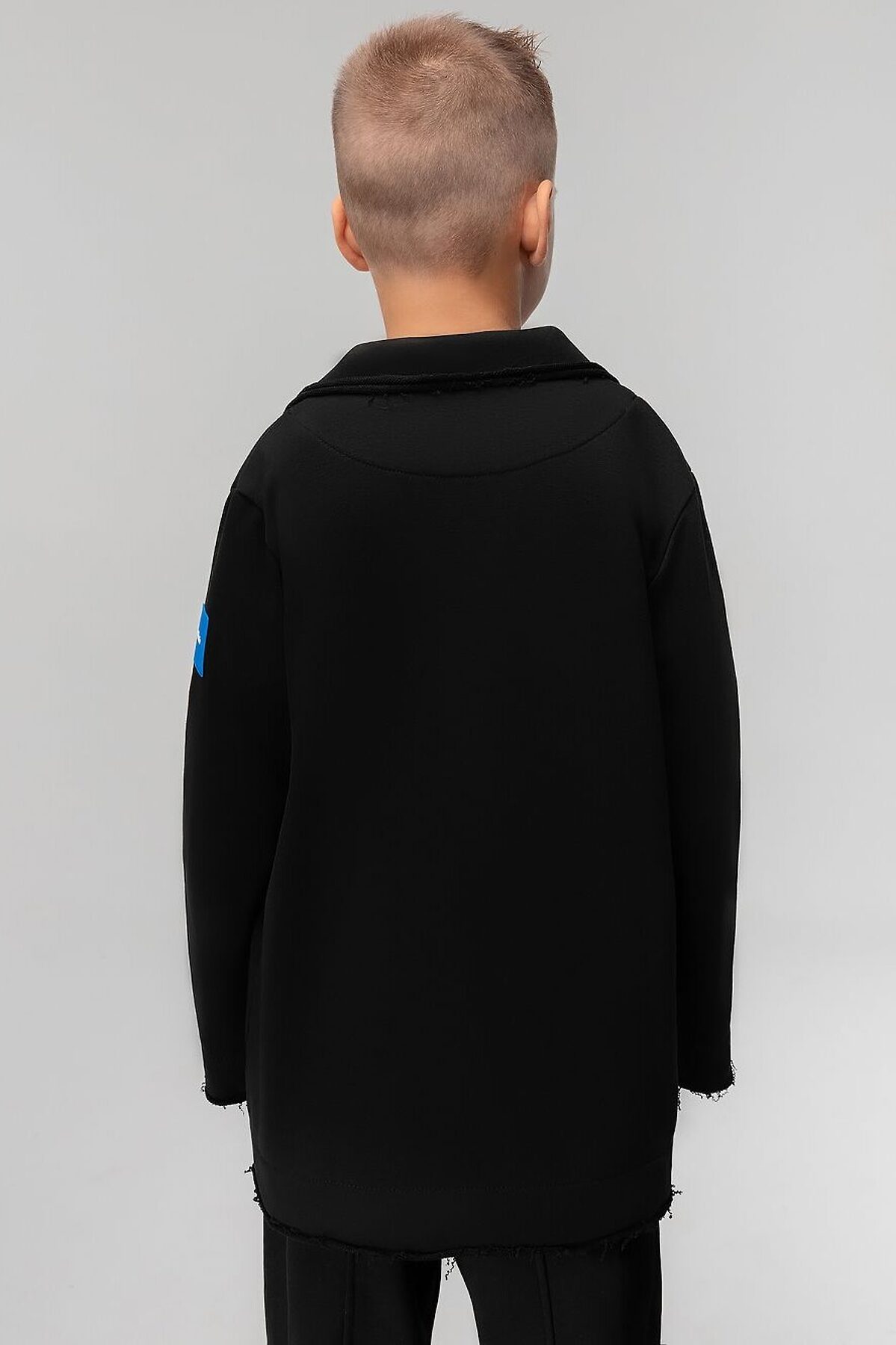 Прямой пиджак без подкладки, отложной воротник, на полочке два накладных кармана с необработанными краями.