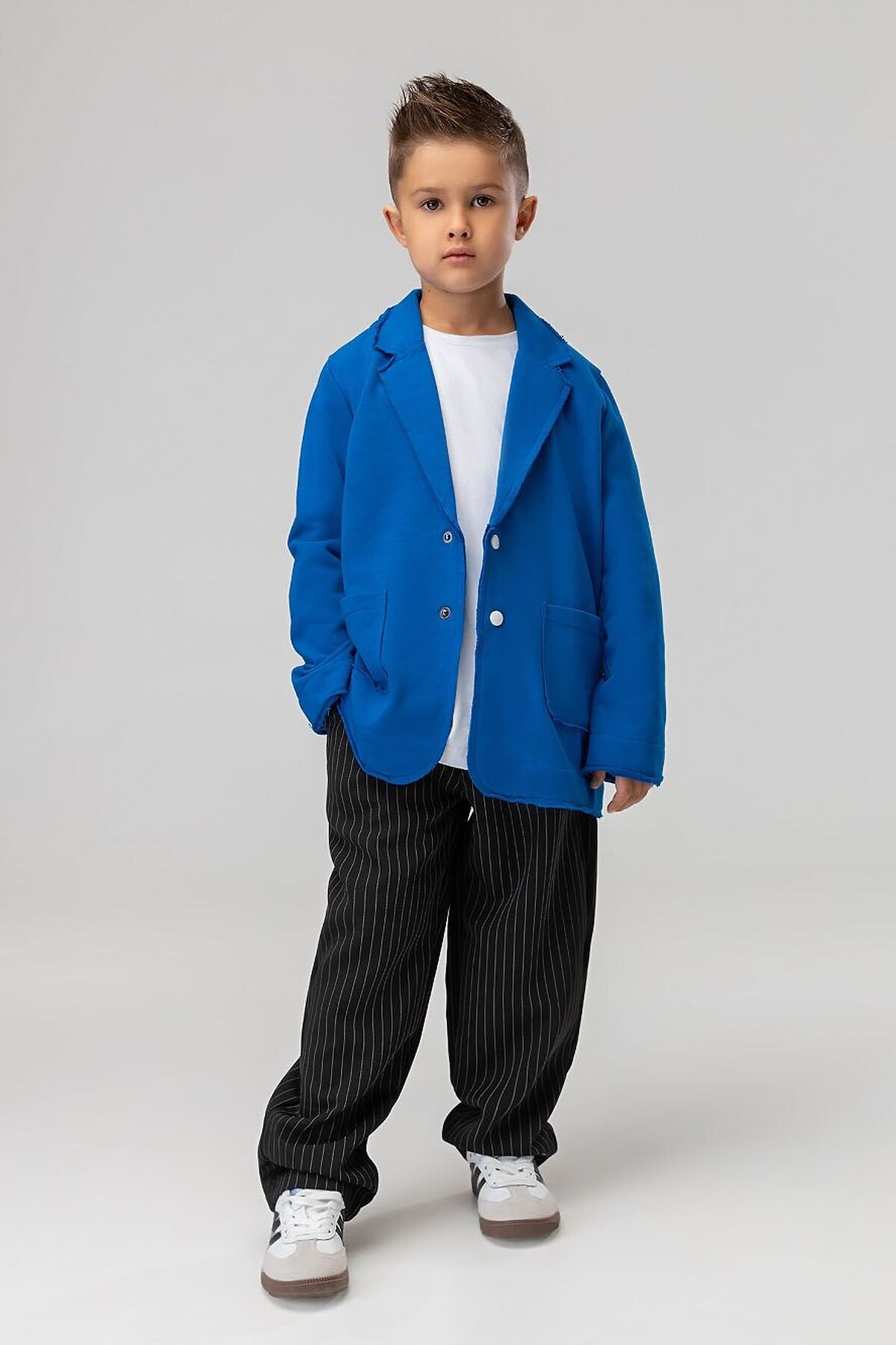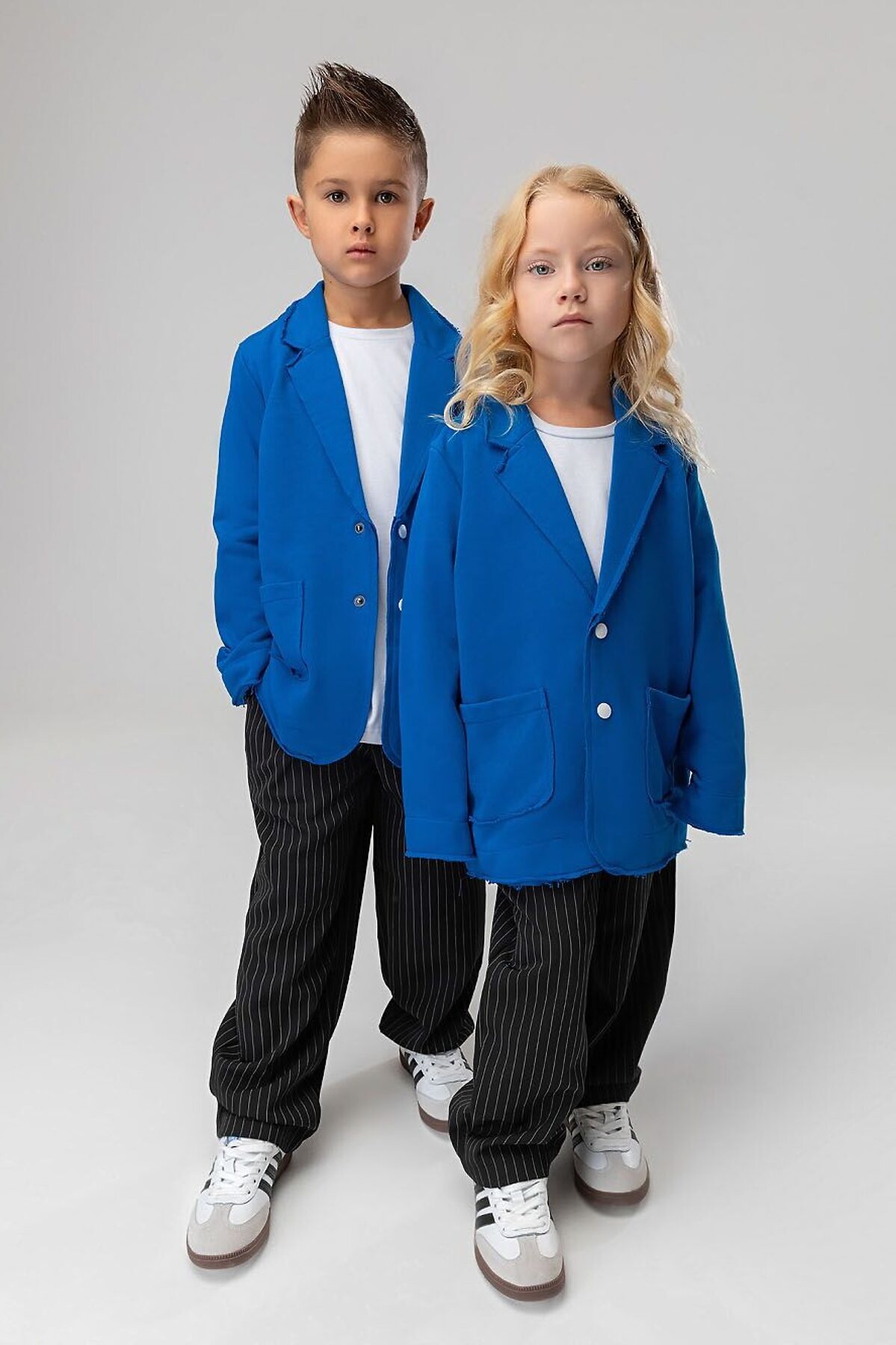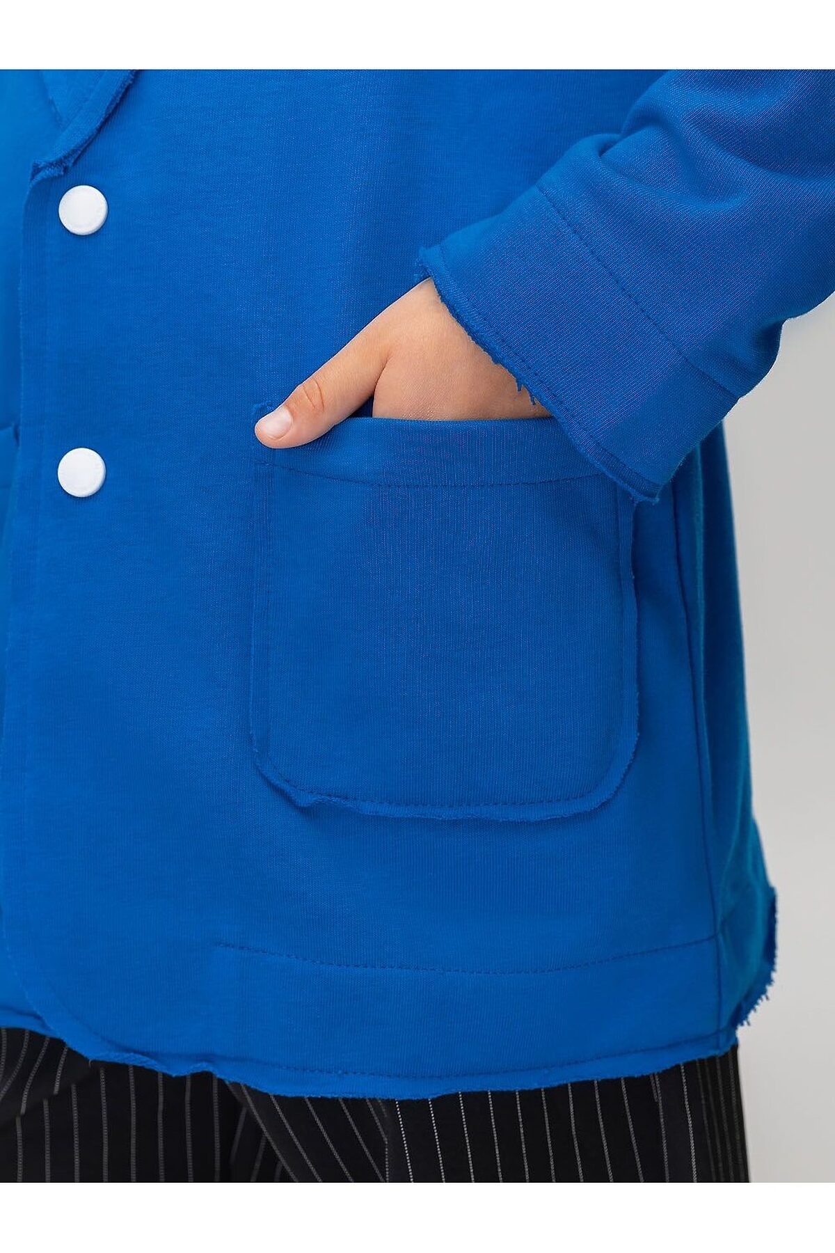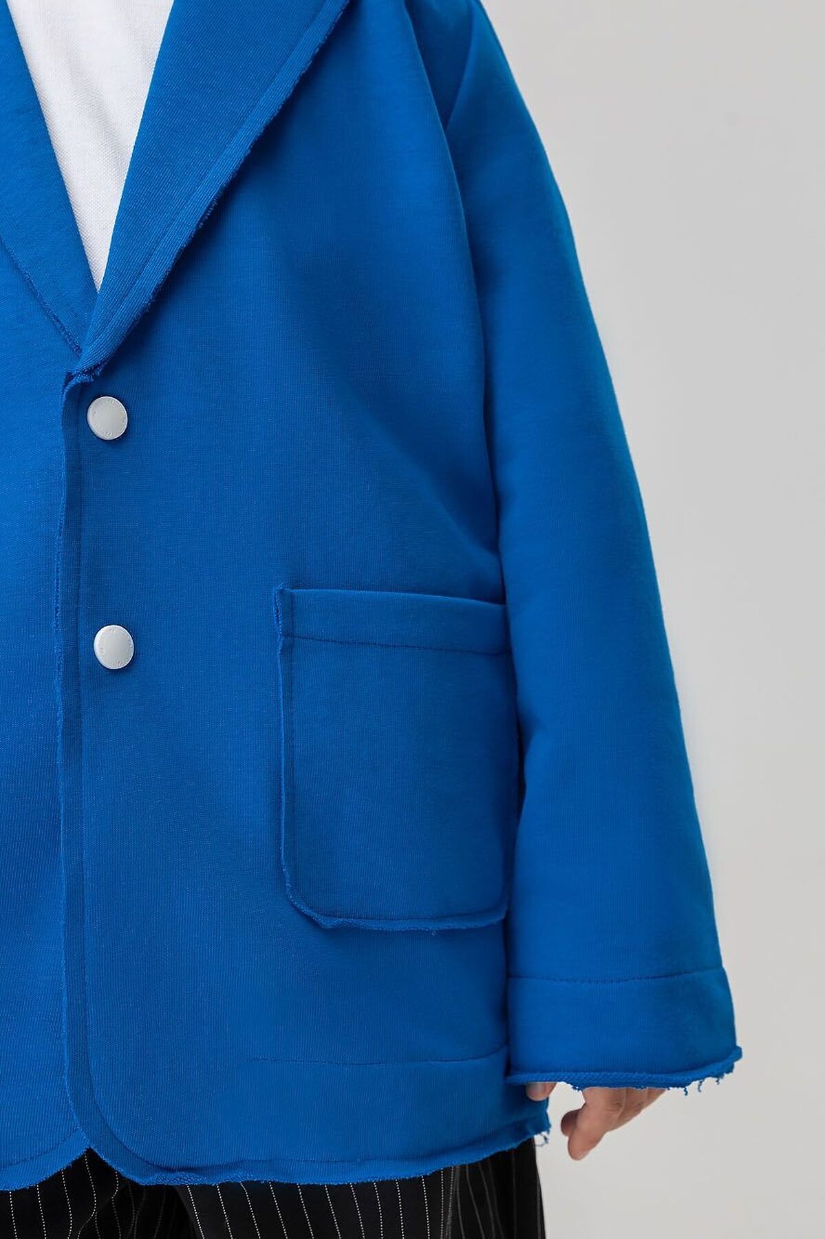 Прямой пиджак без подкладки, отложной воротник, на полочке два накладных кармана с необработанными краями.