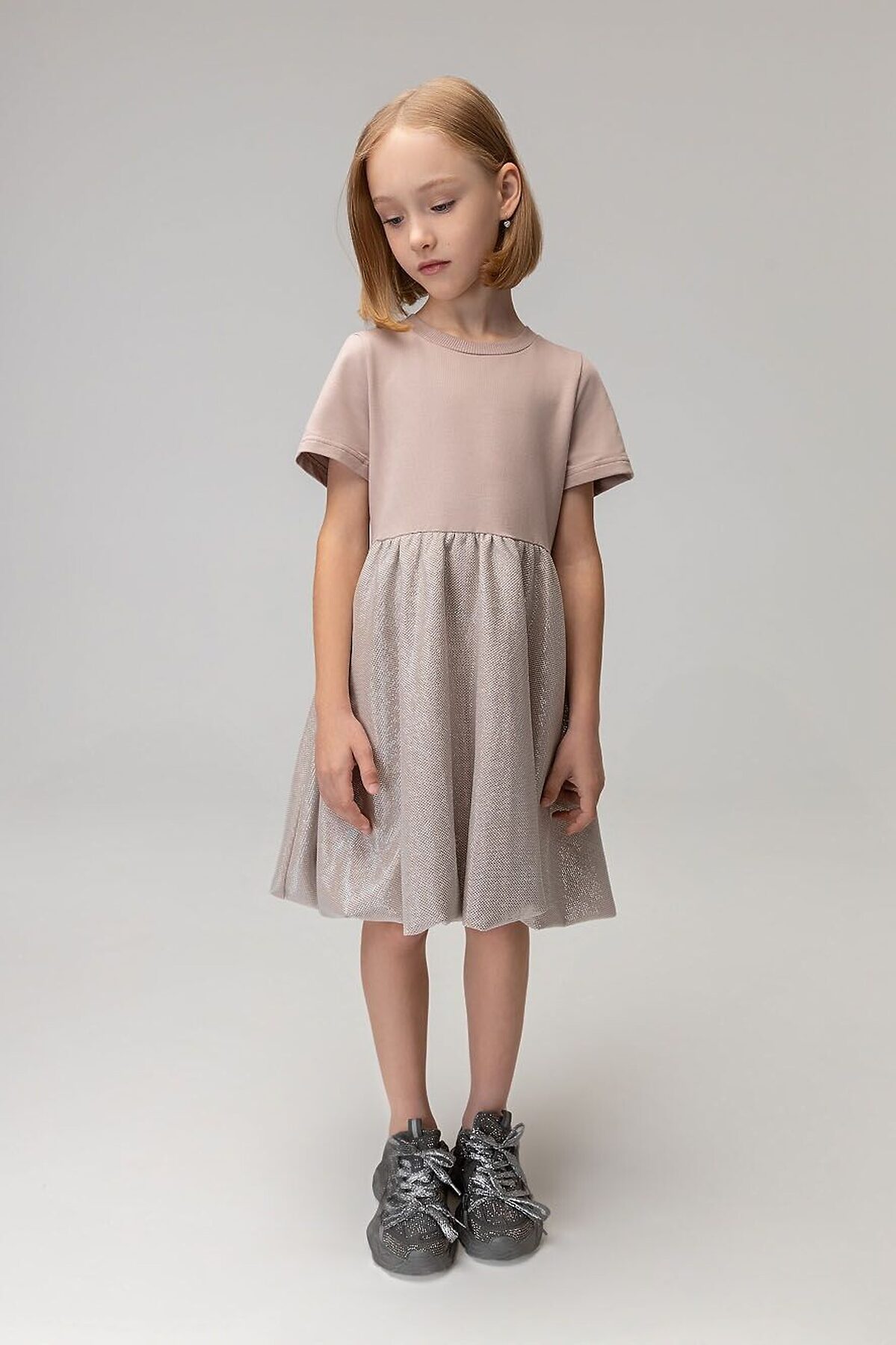 Платье с коротким рукавом, отрезное по линии талии, нижняя часть со сборкой на подкладке, округлая горловина.