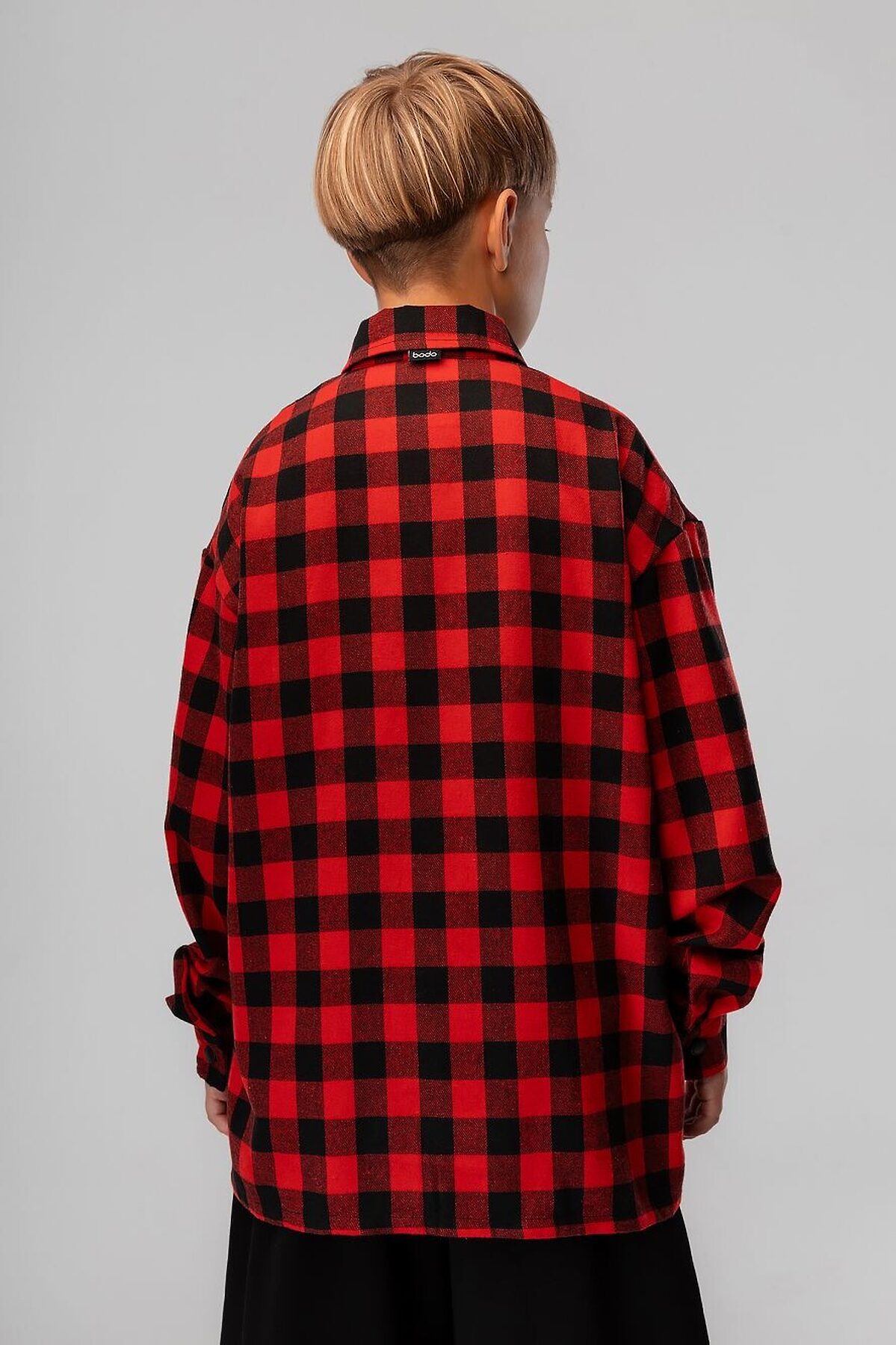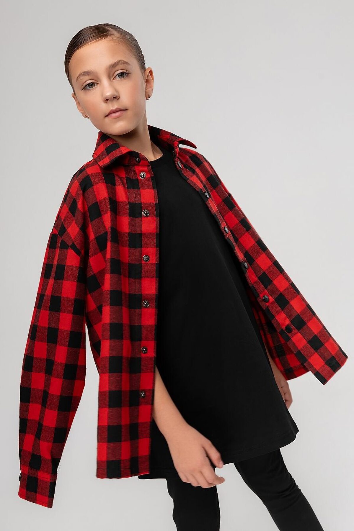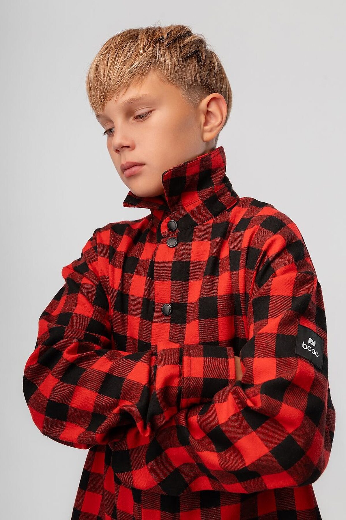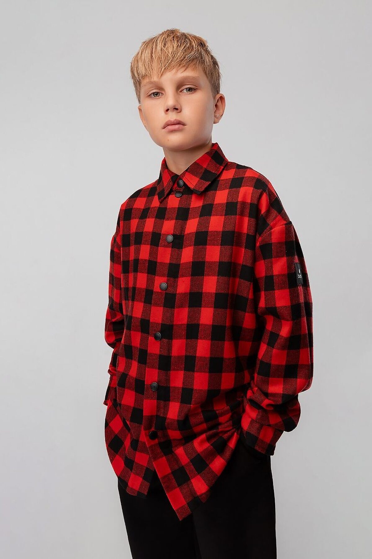 Рубашка для детей школьного возраста. Рубашка без подкладки, прямого силуэта, с центральной бортовой застёжкой на кнопки, с отложным воротником со стойкой, с втачными рукавами с притачной манжетой на кнопке. Низ изделия прямой. По низу рукава — защип. На полочке расположен карман.Состав:фланель 80% хлопок 20% полиэстер