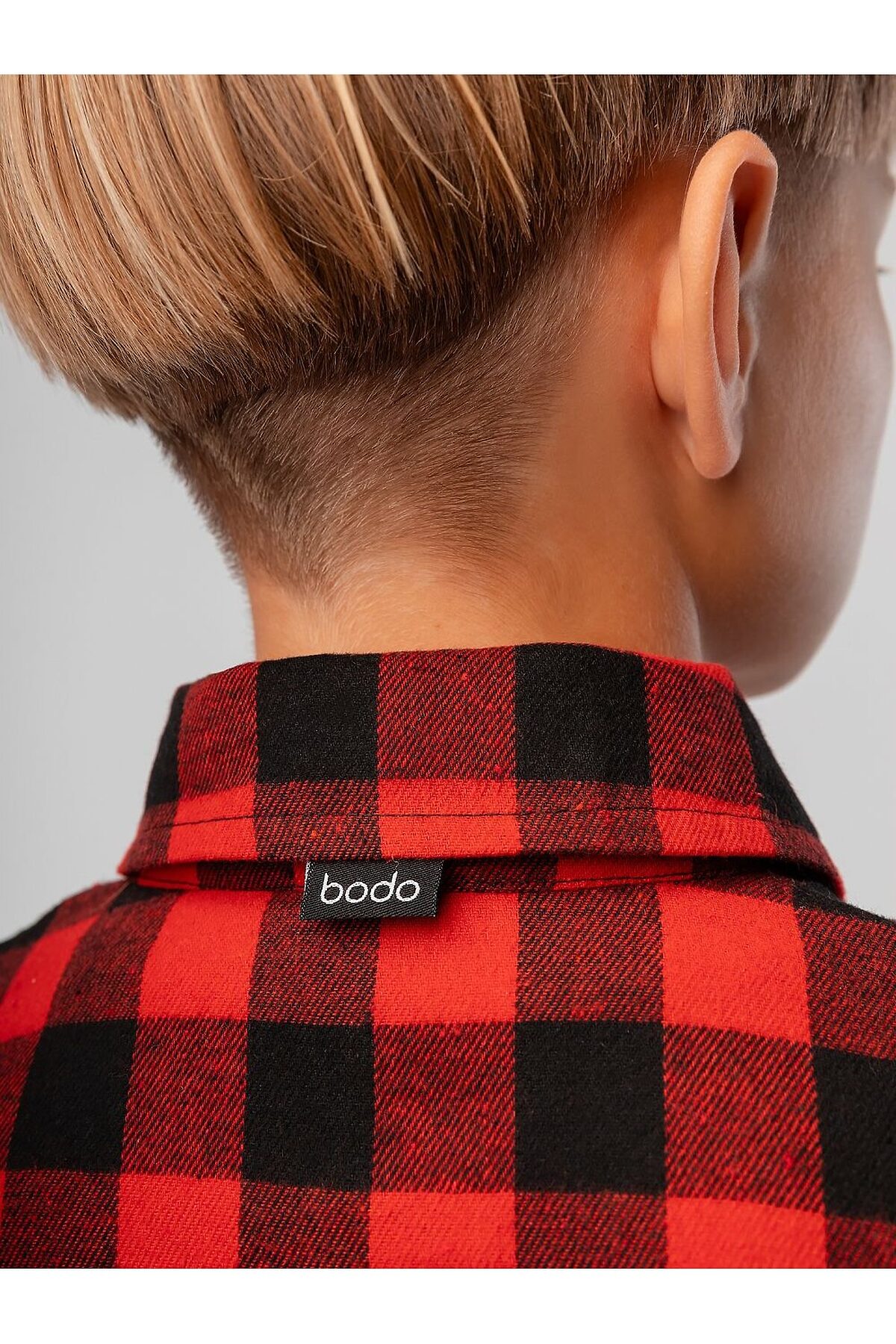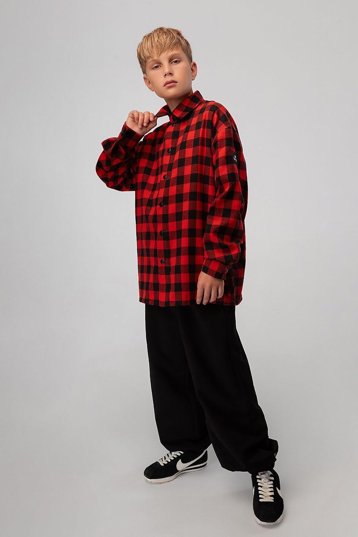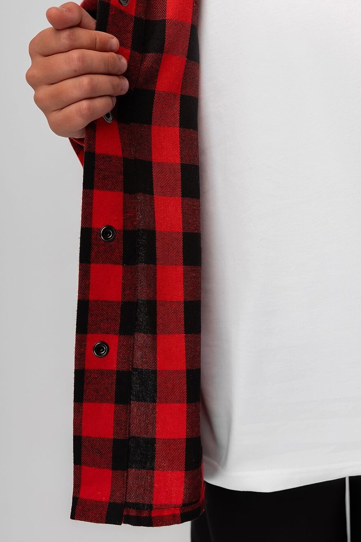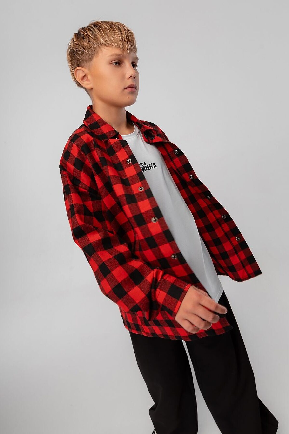 Рубашка для детей школьного возраста. Рубашка без подкладки, прямого силуэта, с центральной бортовой застёжкой на кнопки, с отложным воротником со стойкой, с втачными рукавами с притачной манжетой на кнопке. Низ изделия прямой. По низу рукава — защип. На полочке расположен карман.Состав:фланель 80% хлопок 20% полиэстер