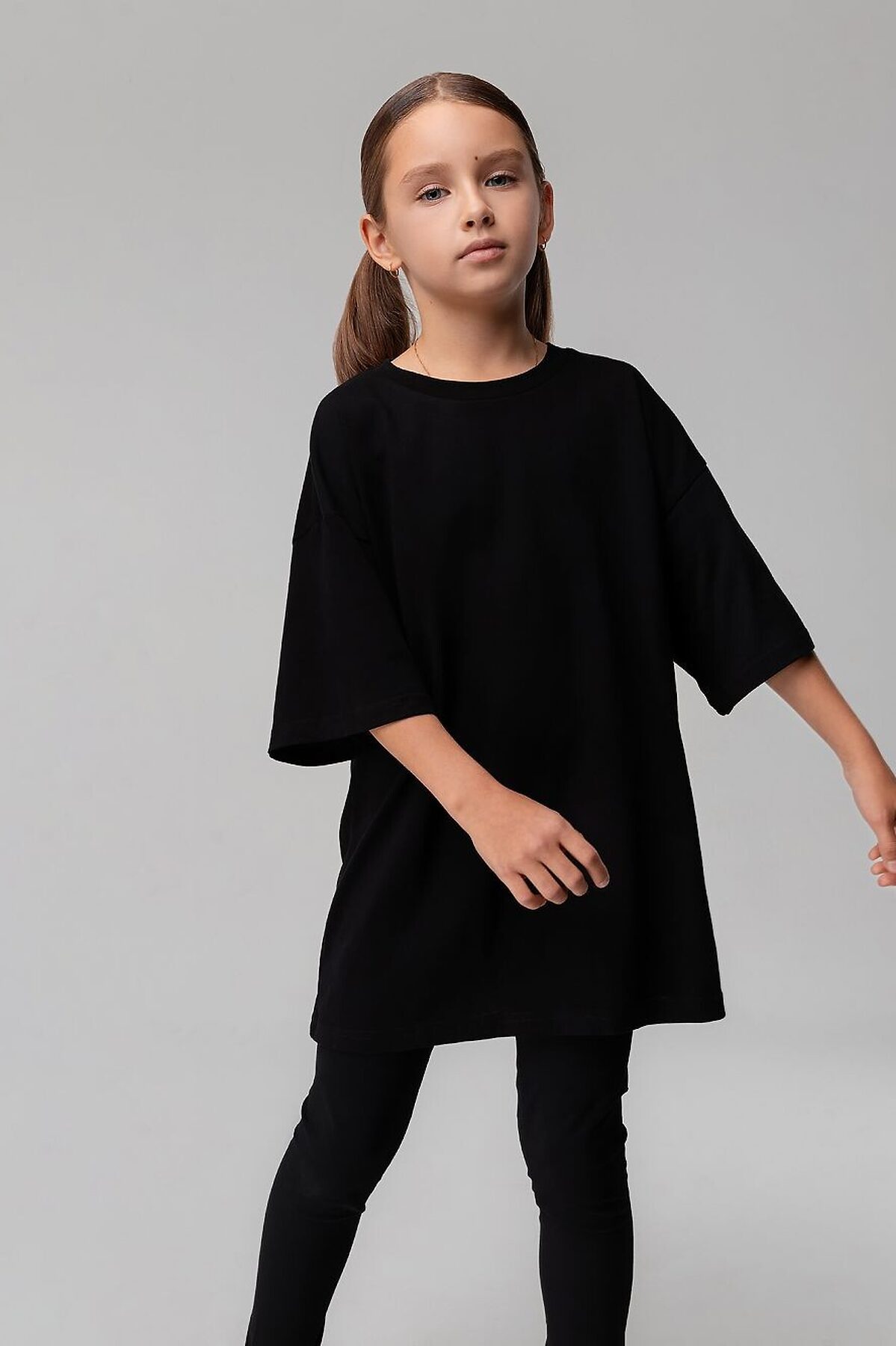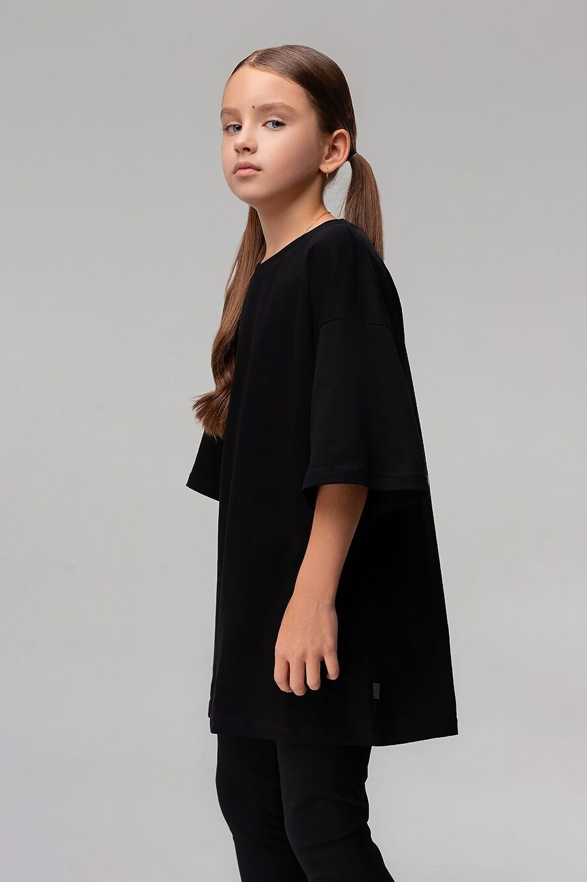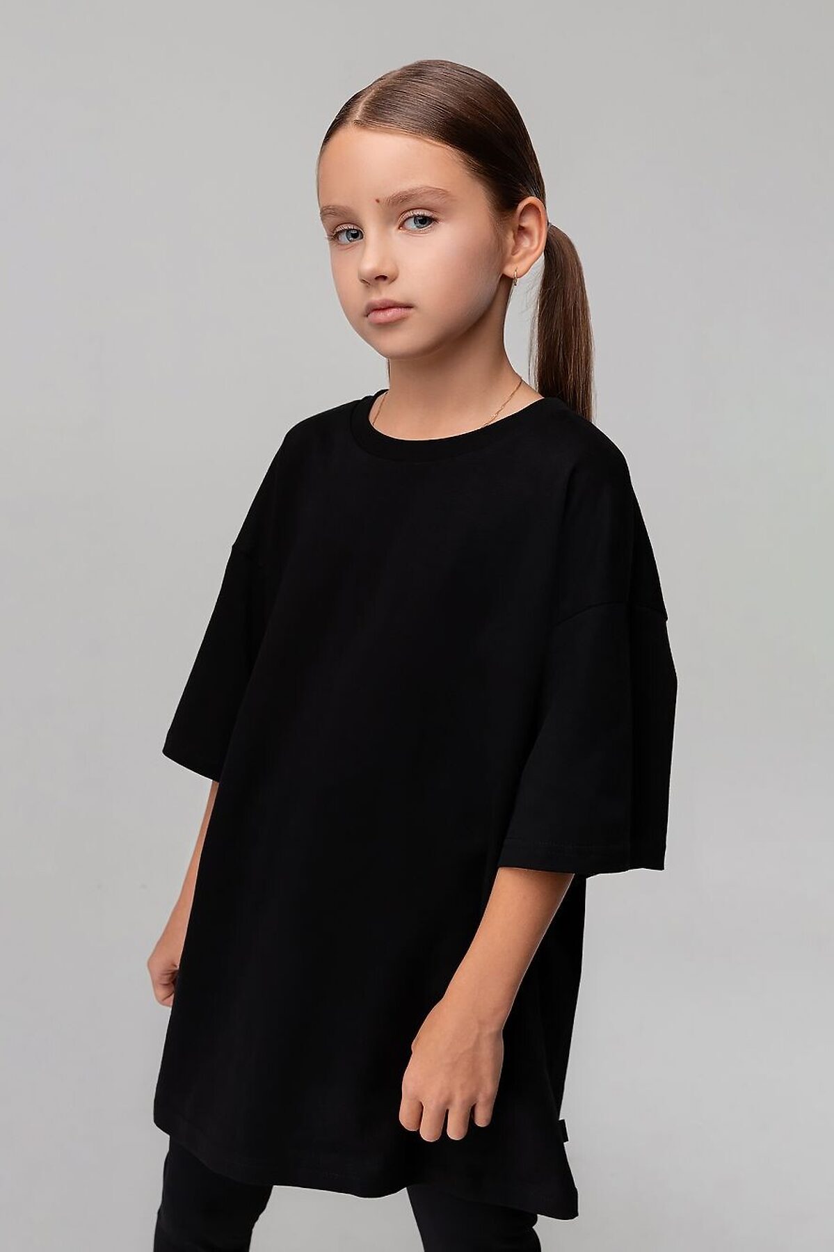 Свободная футболка с коротким рукавом. Горловина футболки округлой формы. Низ изделия прямой. Принт на спинке "звезда"