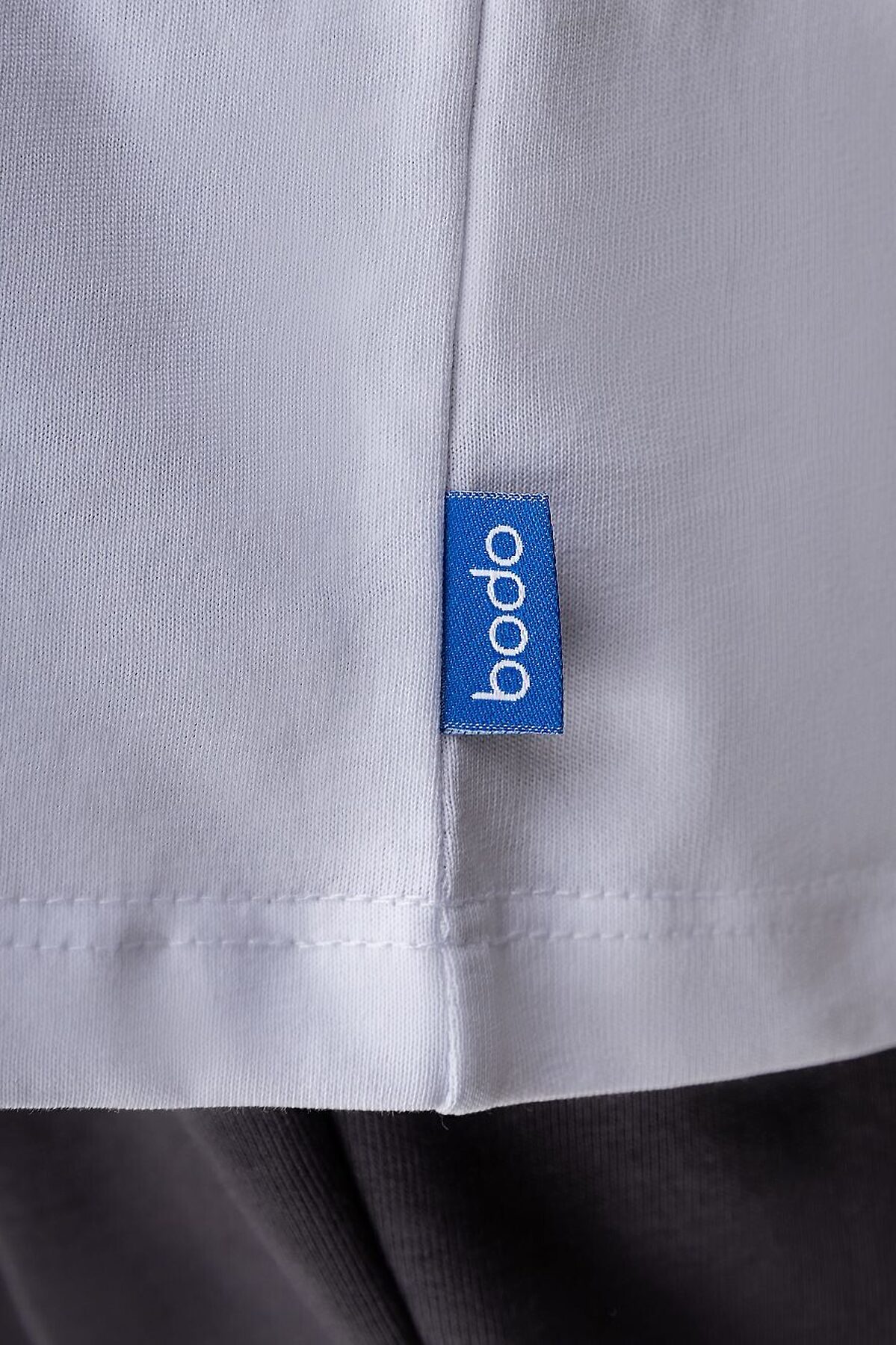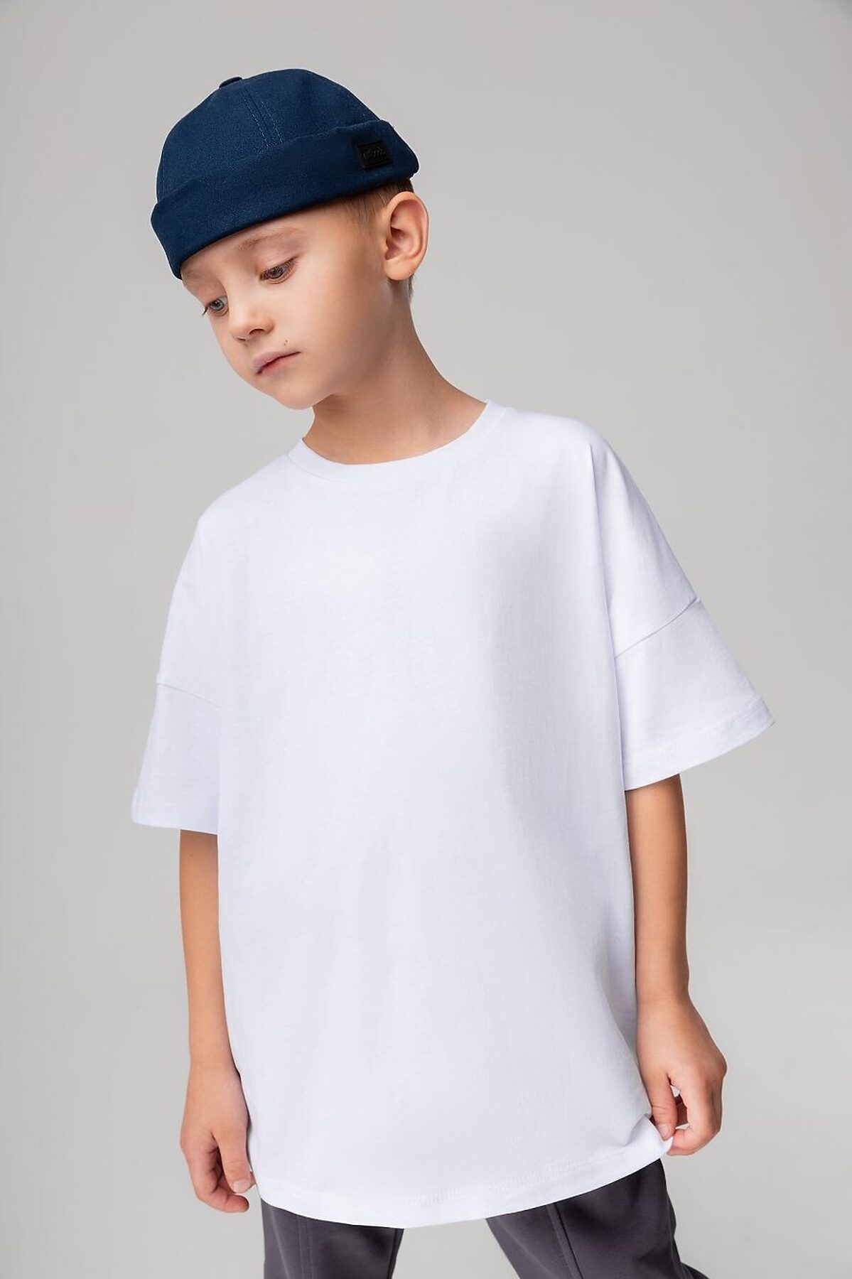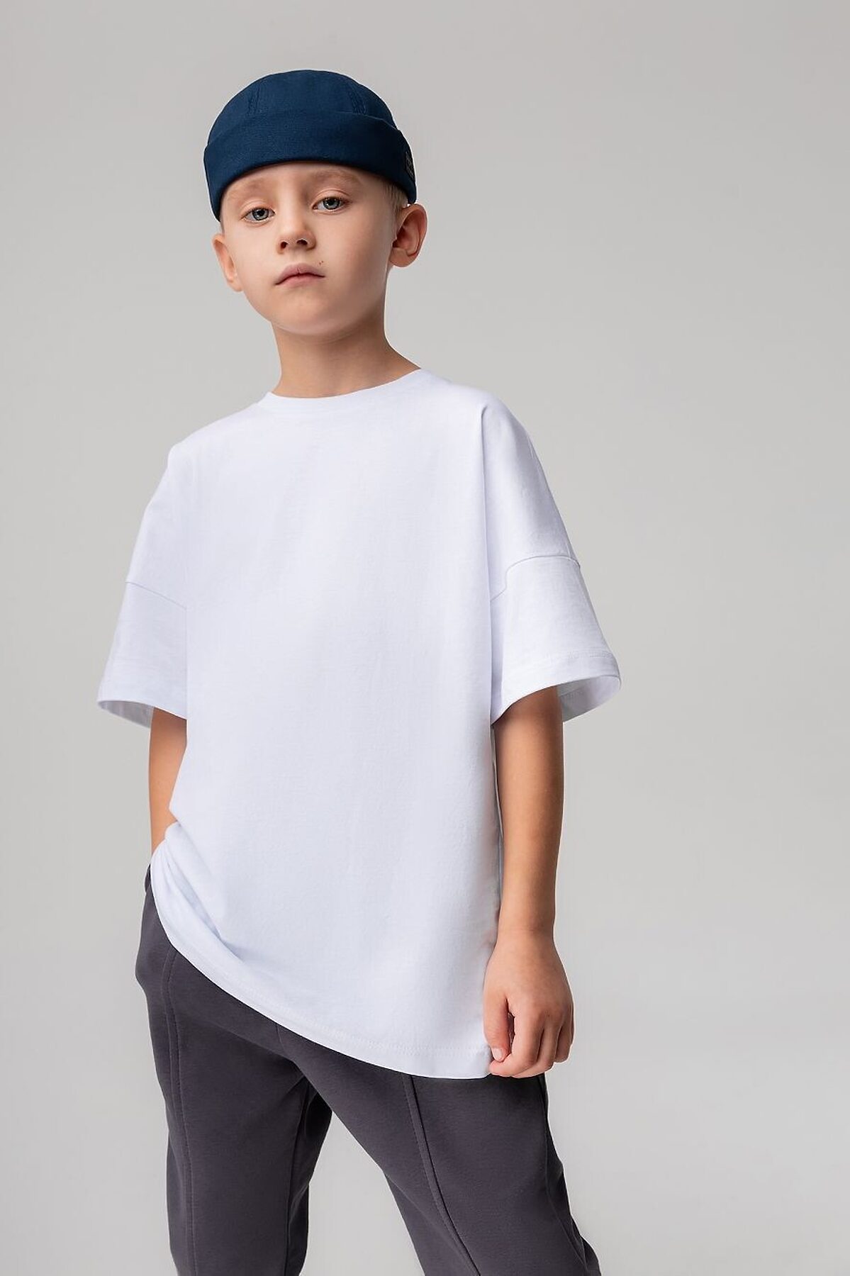 Свободная футболка с коротким рукавом. Горловина футболки округлой формы. Низ изделия прямой. На спинке брендированная лента