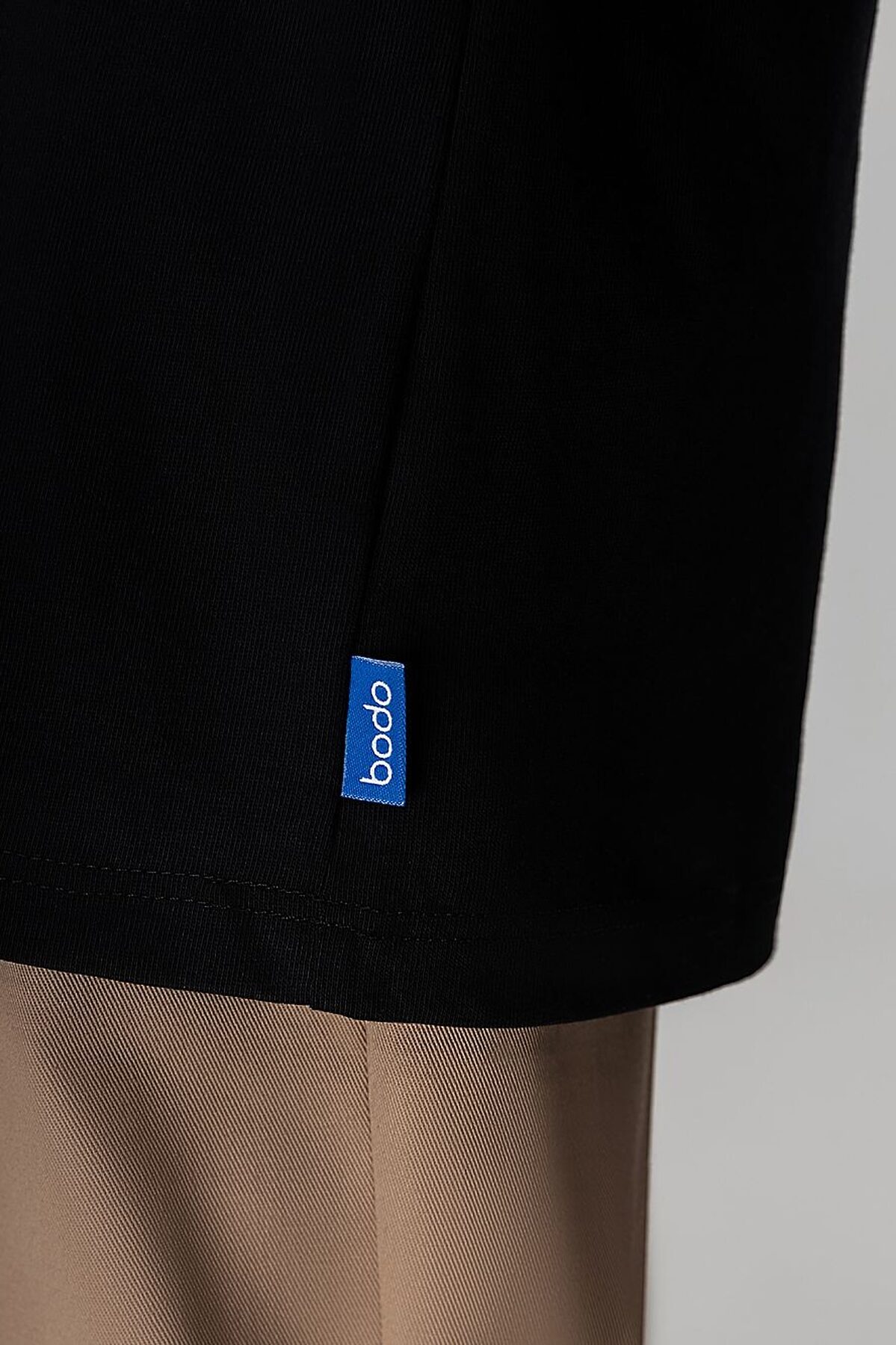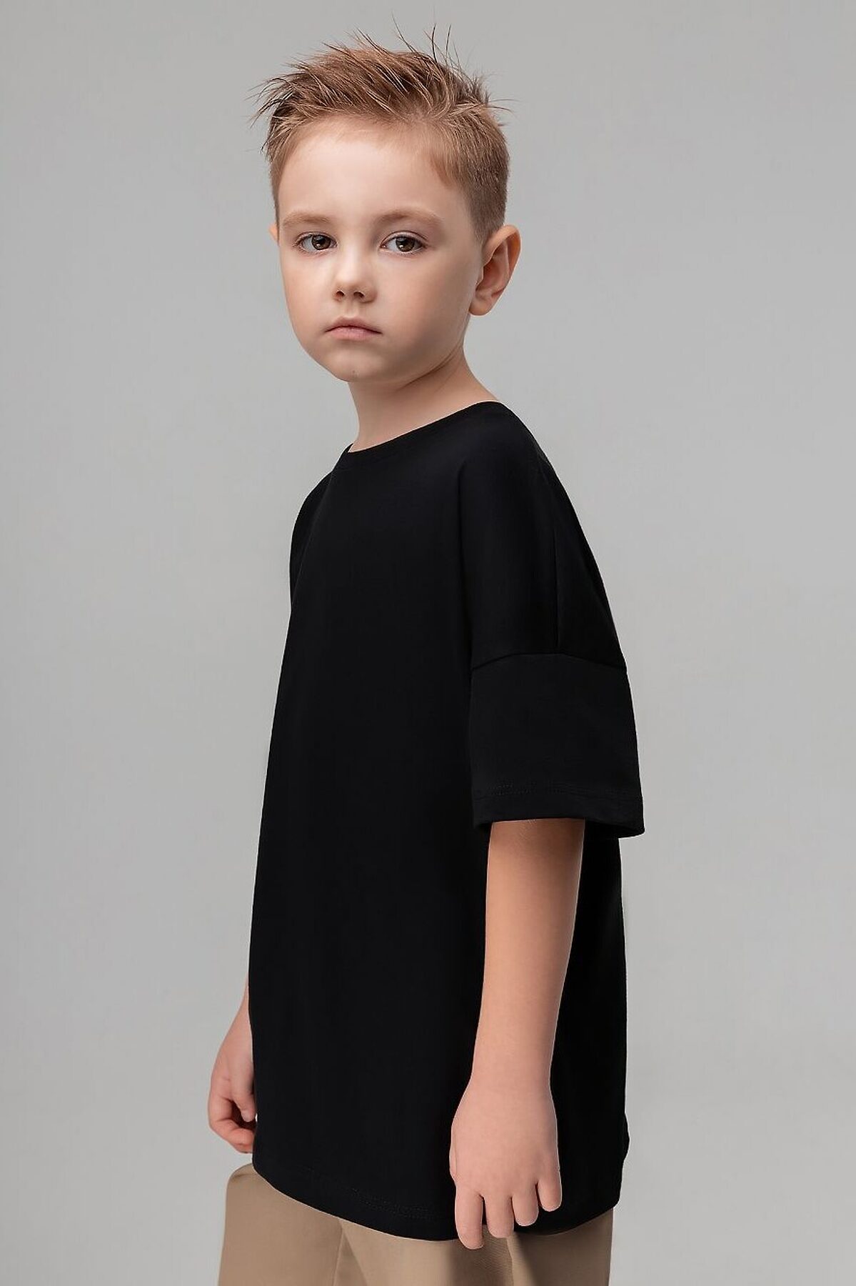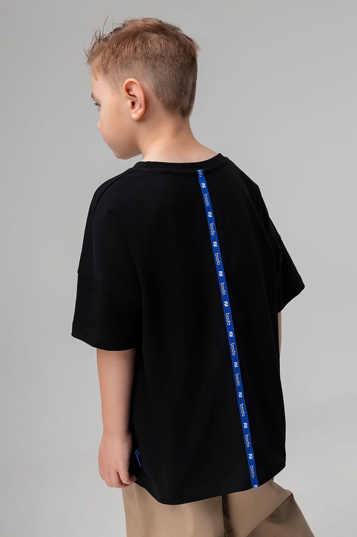 Свободная футболка с коротким рукавом. Горловина футболки округлой формы. Низ изделия прямой. На спинке брендированная лента