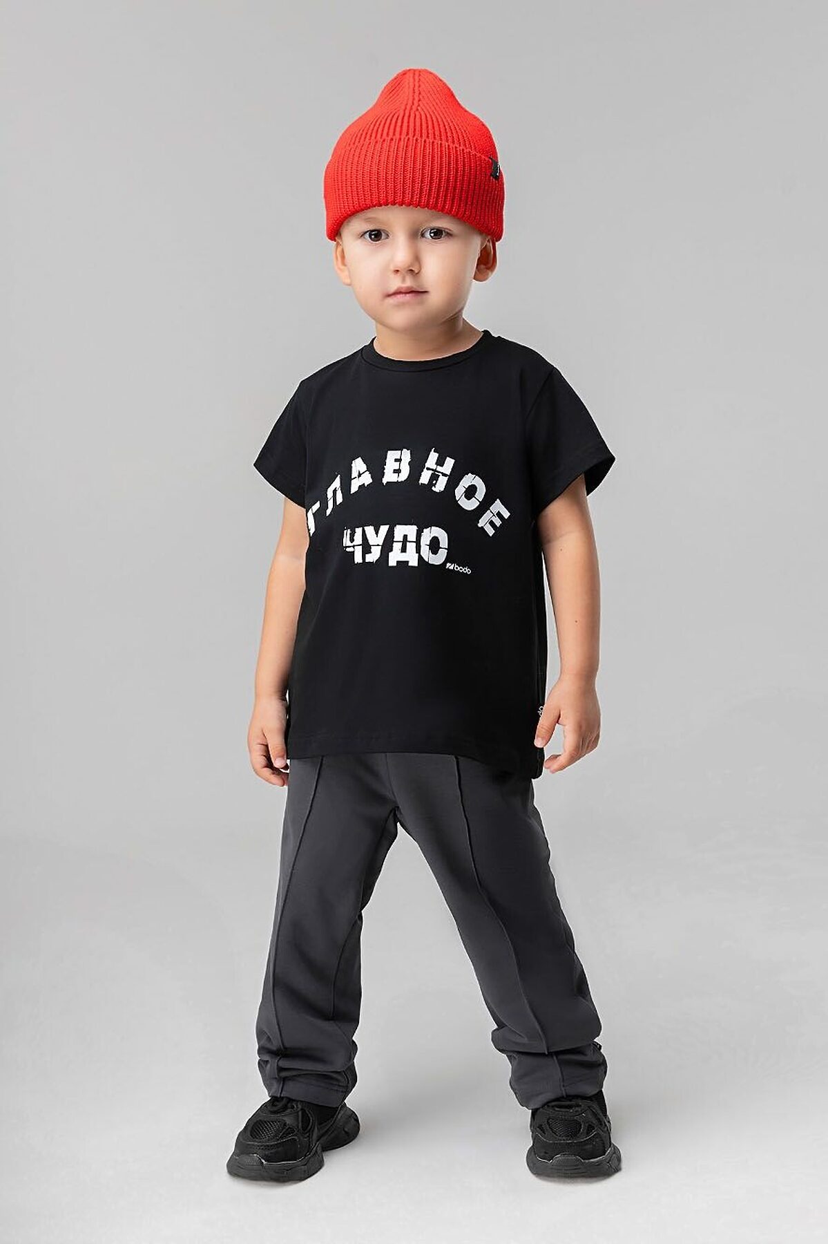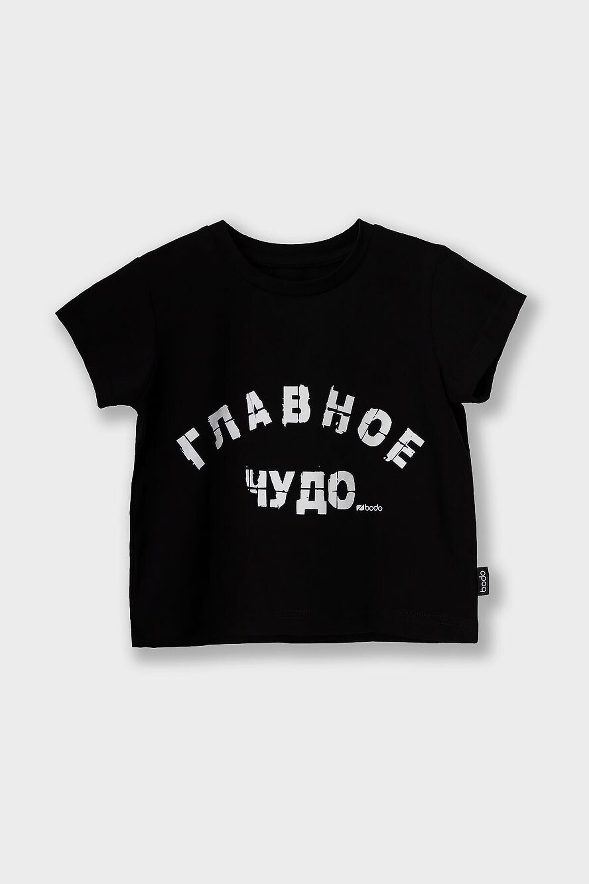Футболка прямого силуэта, с короткими рукавами. Горловина округлой формы. Низ изделия прямой. Принт на полочке "Главное чудо"