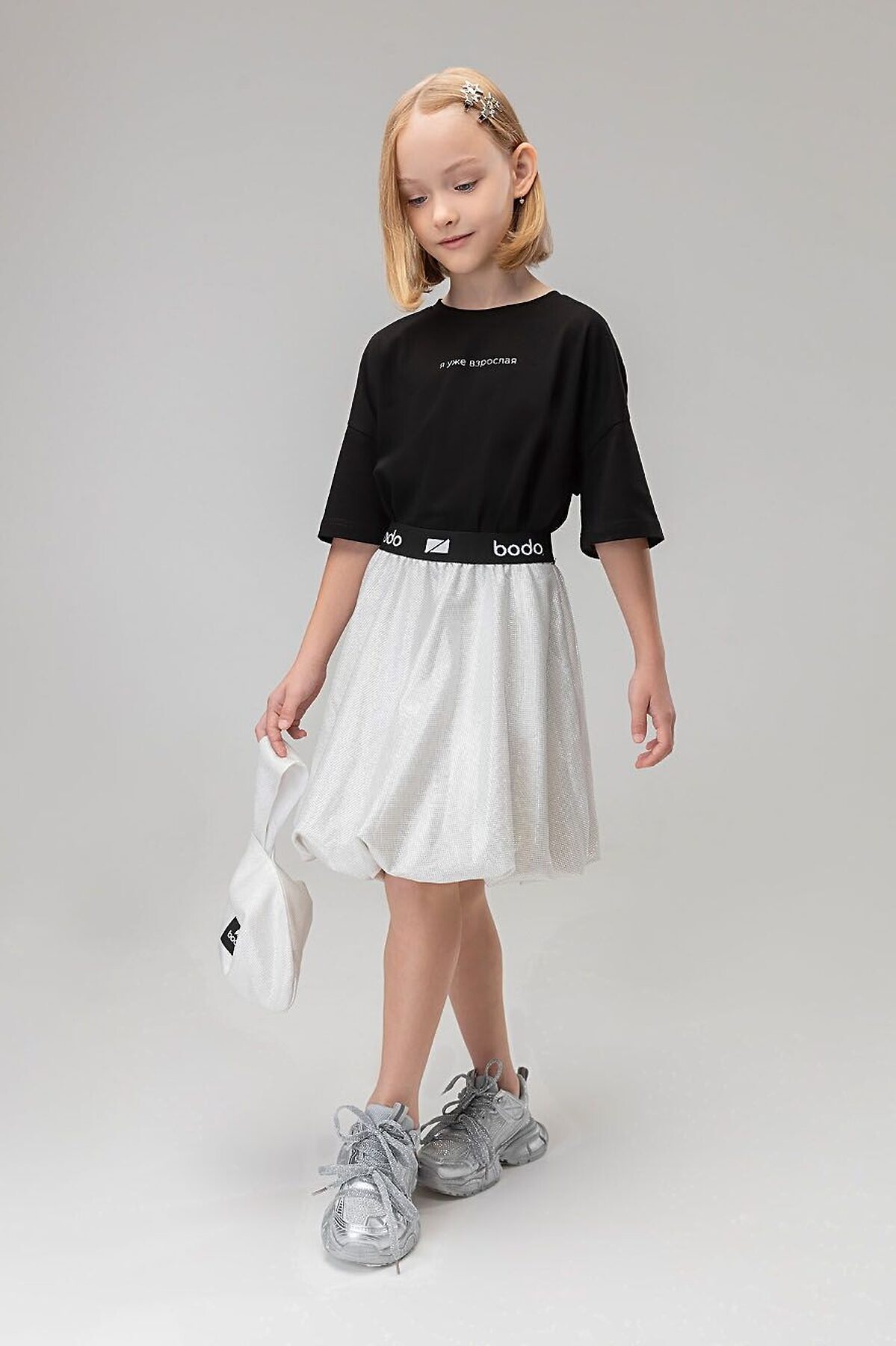 Юбка пышная, с воланами на эластичном поясе. Трикотажное полотно с люрексом, средней плотности с красивым переливающимся блеском.