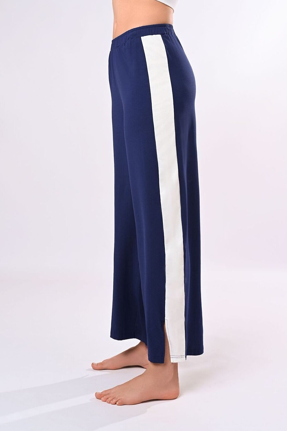 Женские брюки из модального материала комфортные и приятные на ощупь. Материал прочен, не подвержен усадке, не раздражает кожу и устойчив к износу. Брюки имеют вырезы снизу и широкую эластичную резинку на поясе, которая позволяет данной модели надёжно держаться при носке. Брюки идеально подойдут как для повседневной носки, так и для спортивных тренировок.