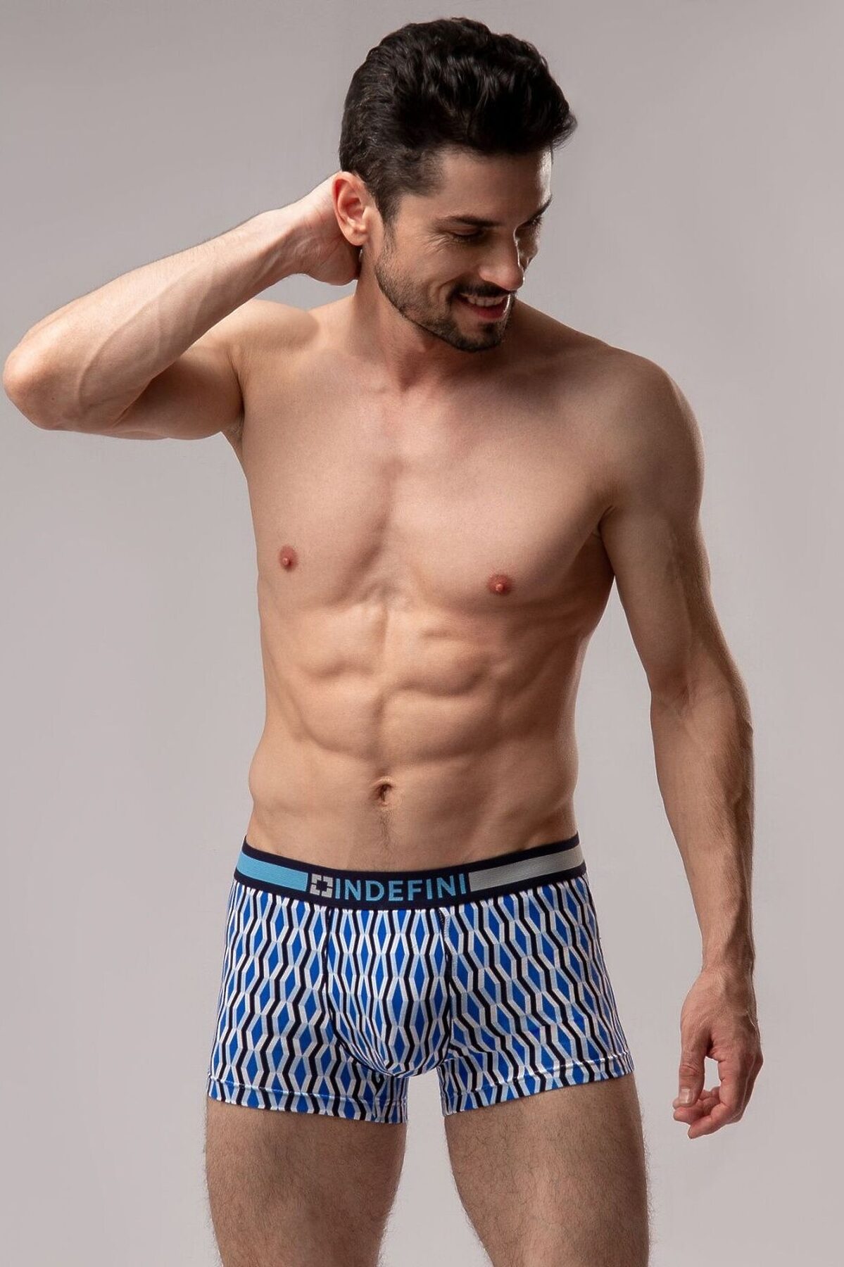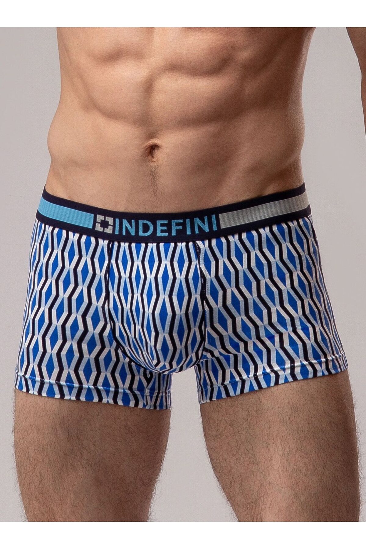 Мужские трусы-боксеры от бренда Indefini — это сочетание стиля, комфорта и современного дизайна. Модель выполнена из высококачественного хлопка с добавлением эластана, что обеспечивает мягкость, воздухопроницаемость и идеальную посадку. Особенности: ✔ Ткань: 95% хлопок, 5% эластан — натуральный, гипоаллергенный материал, отлично дышит и сохраняет форму даже после многократных стирок. ✔ Принт: Геометрический узор в виде трёхмерных ромбов в синих, белых и чёрных тонах — стильный и современный дизайн, который подчеркивает индивидуальность. ✔ Пояс: Широкая эластичная резинка с фирменной надписью «INDEFINI» и контрастными вставками — комфортно облегает талию, не сдавливает и не оставляет следов. ✔ Крой: Классический крой боксеров с средней посадкой и усиленным карманом для дополнительной поддержки и комфорта. ✔ Форма: Прямые швы и аккуратные детали обеспечивают свободу движений и удобство в течение всего дня.