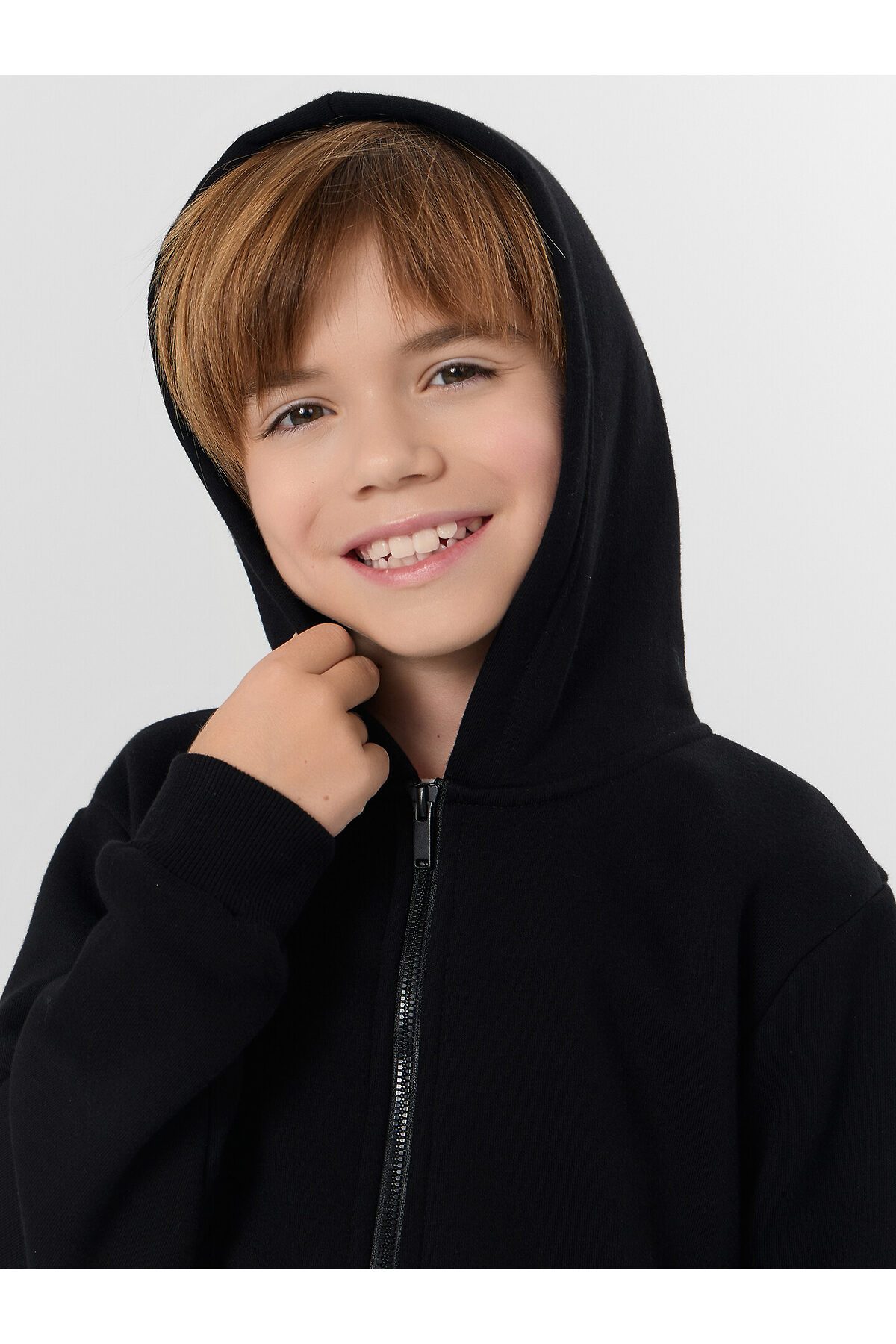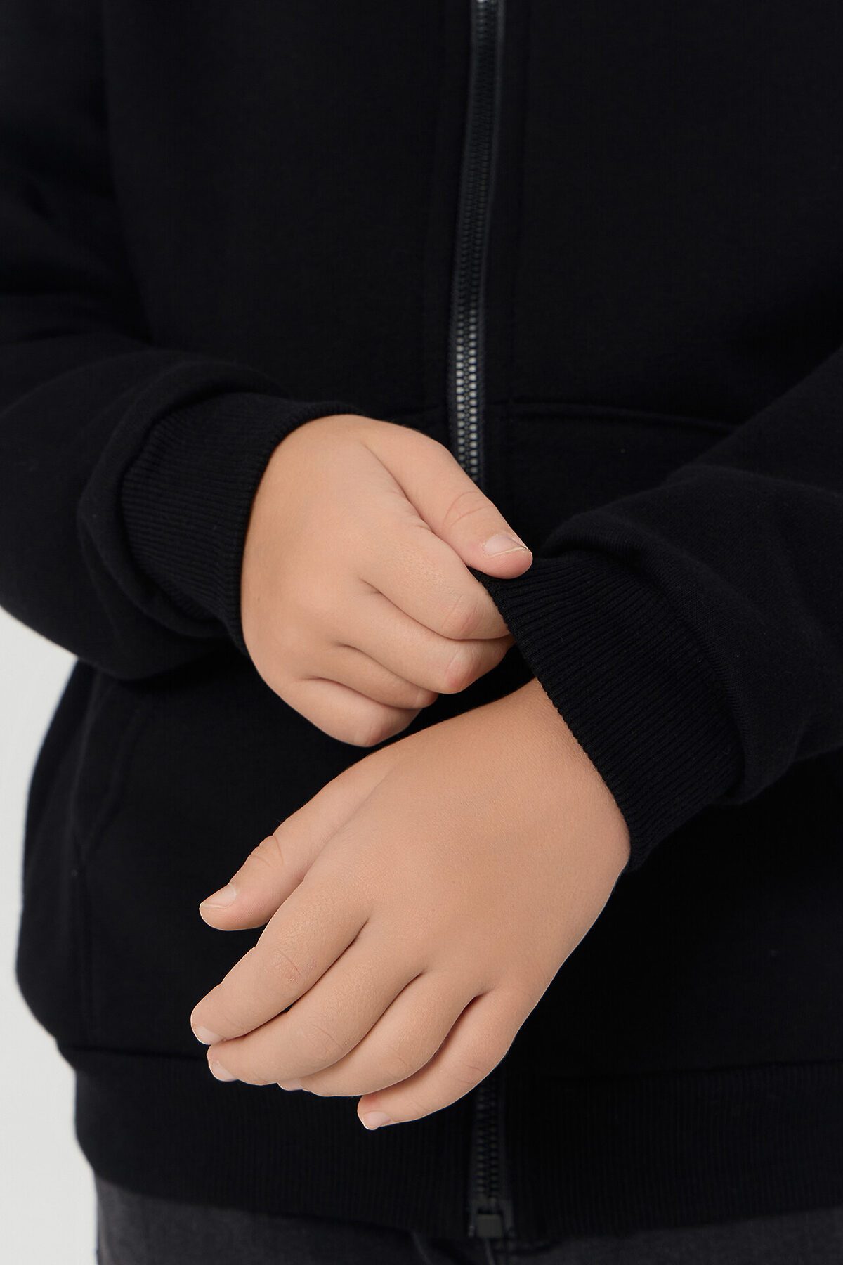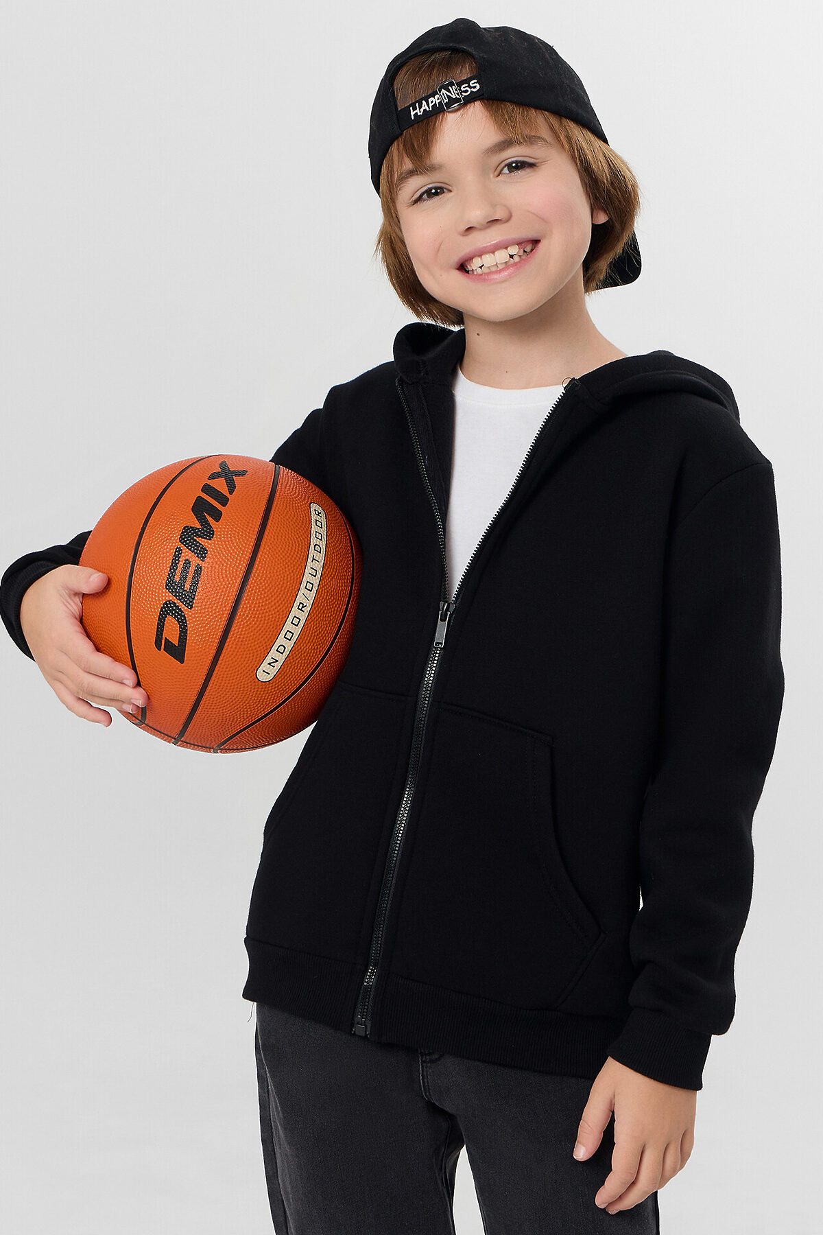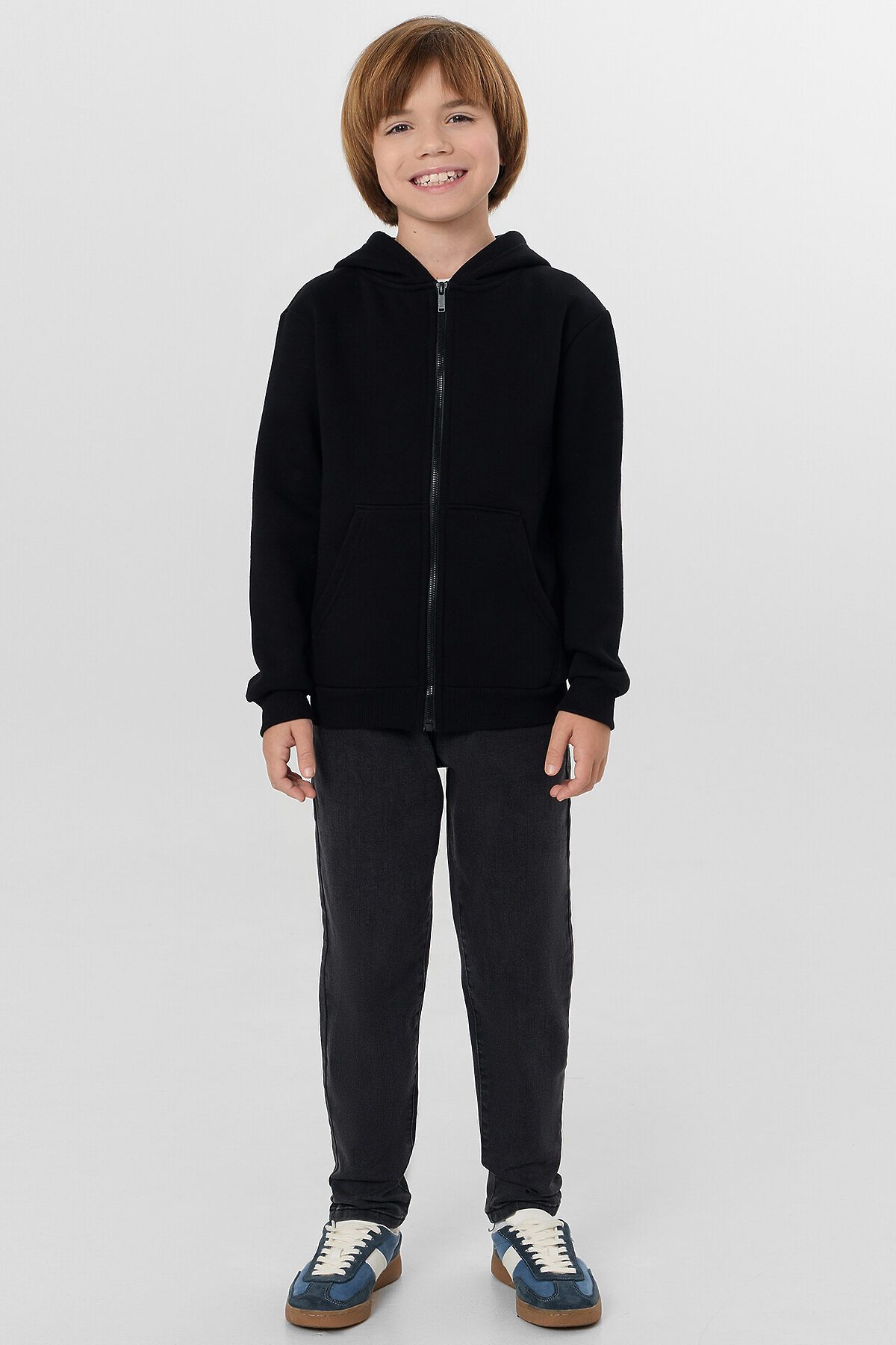 Стильная спортивная толстовка на молнии для мальчиков. Выполнена из теплого и нежного трикотажного футера с подчесом. Прямой свободный силуэт дополнен уютным капюшоном и удобным карманом-кенгуру. Рукава длинные, линия плеча немного спущена. Рекомендуем для прохладной погоды!