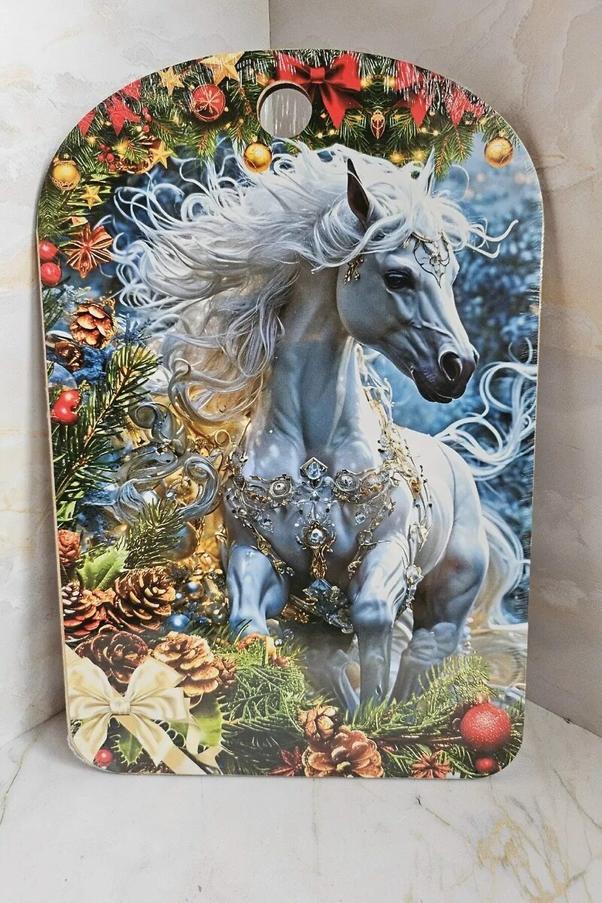 Красивая декоративная, сувенирная, разделочная доска на Новый год 2026 с символом года - лошадью. Выполнена из экологически чистого материала - дерева, что делает досточку прочной и долговечной. Досточка с ярким и запоминающимся рисунком будет прекрасным дополнением Вашего новогоднего интерьера. Доска идеально подойдет в качестве подарка Вам и Вашим близким. Она может стать как отдельным подарком, так и послужить прекрасным дополнением. Вы можете использовать ее непосредственно по назначению либо в качестве элемента декора, повесив на стену. Яркая печать с символикой нового года 2026. Обратную сторону можно использовать как подставку под горячее или для нарезки хлебобулочных изделий. Размер 27*18.