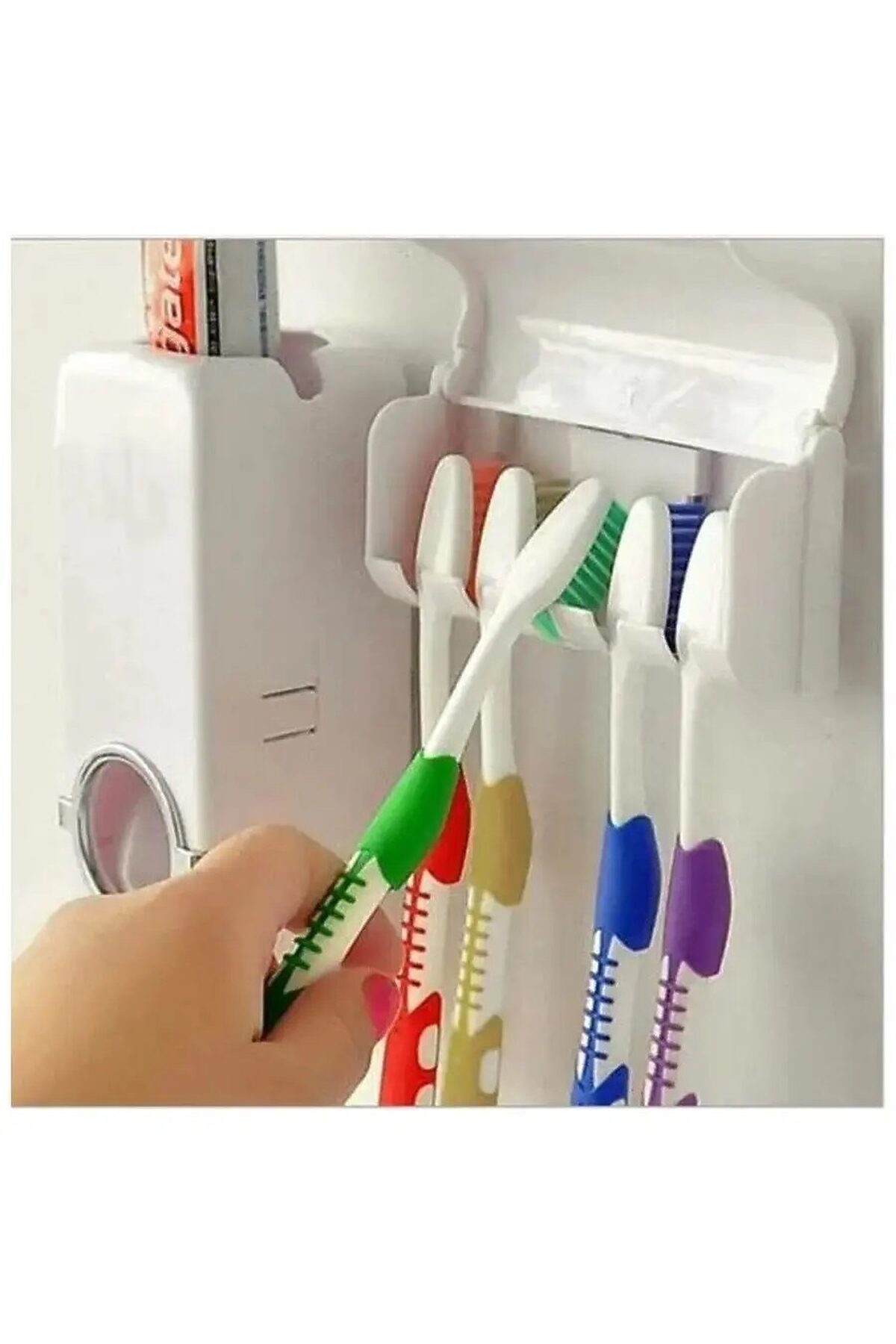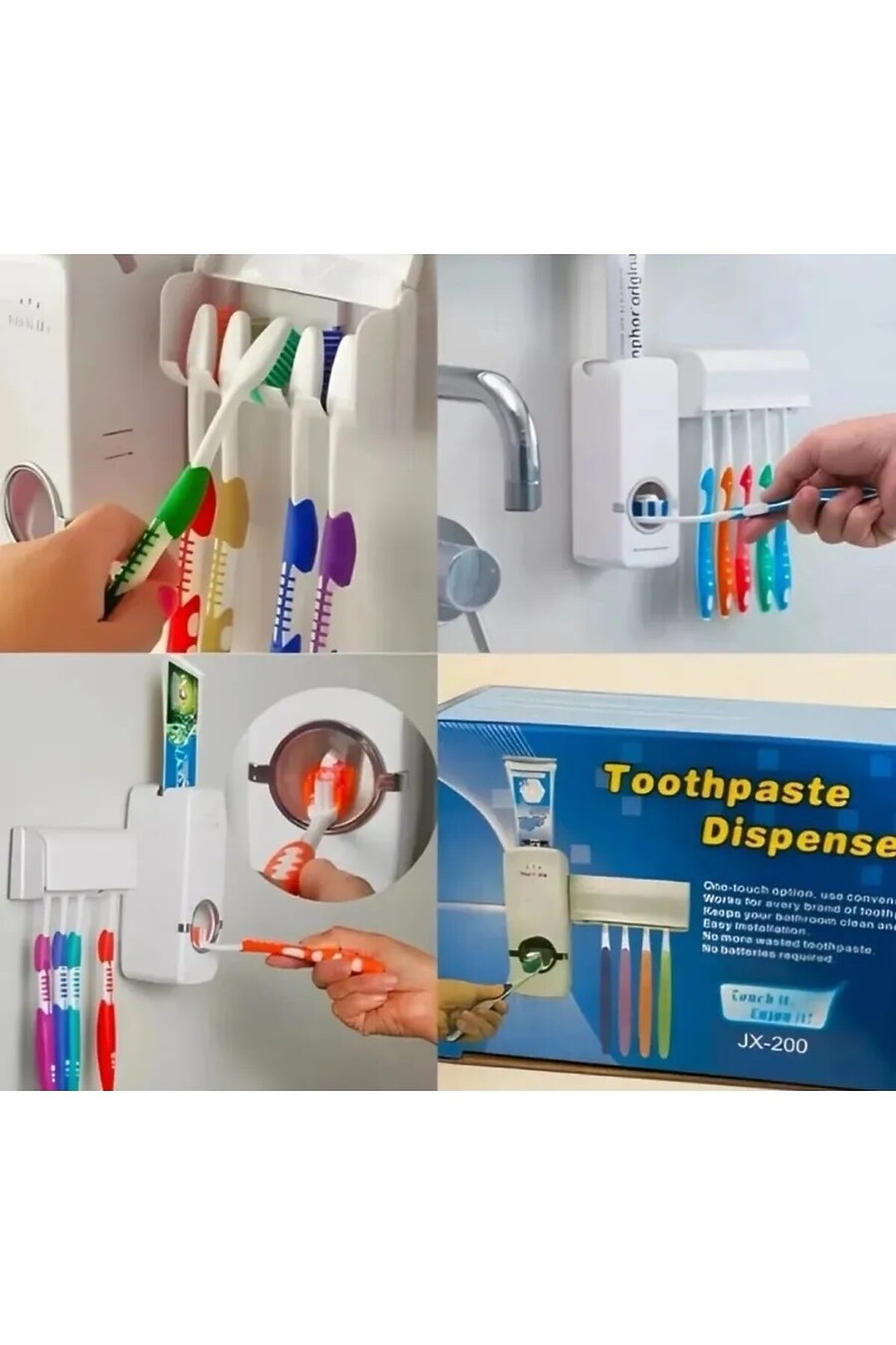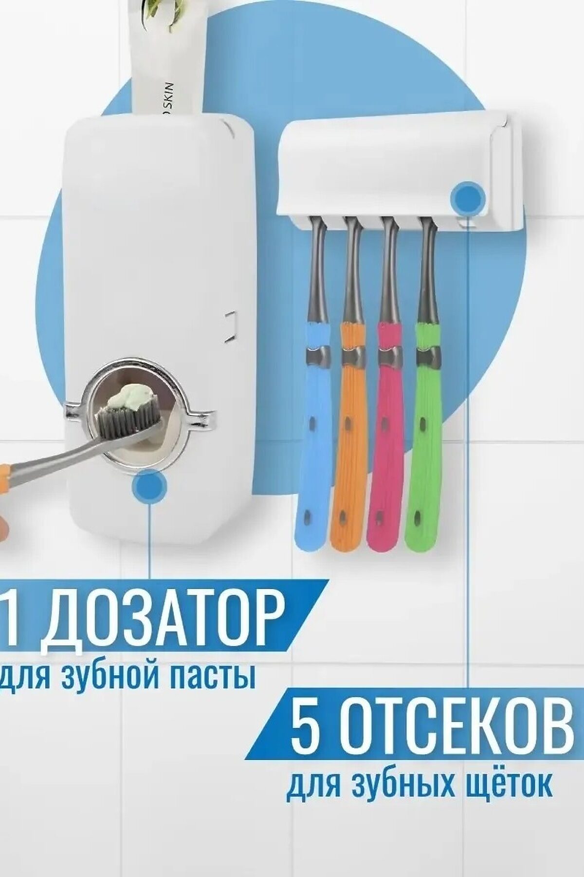 Данный дозатор для зубной пасты с держателем для щеток (в количестве до 5 штук )является настенным. Подходит для большой семьи. Набор будет идеальным дополнением для вашей ванной комнаты и сделает вашу жизнь более комфортной. Принцип работы аналогичен тому, что используется в диспенсерах для жидкого мыла. Зубные щетки находятся под крышкой, что позволяет им быстро сохнуть и быть защищенными от загрязнений. Данный распределитель делает процесс утренней гигиены увлекательной и абсолютно безопасной для маленьких детей. Он ограничивает количество пасты и выдает только столько, сколько нужно для чистки зубов. Он компактен и легко устанавливается, так как требуется всего лишь клеевое крепление, что исключает необходимость сверления или повреждения стен. Свободно разбирается и моется, когда это необходимо. Белый дизайн прост и элегантен, поэтому отлично впишется в любой интерьер.