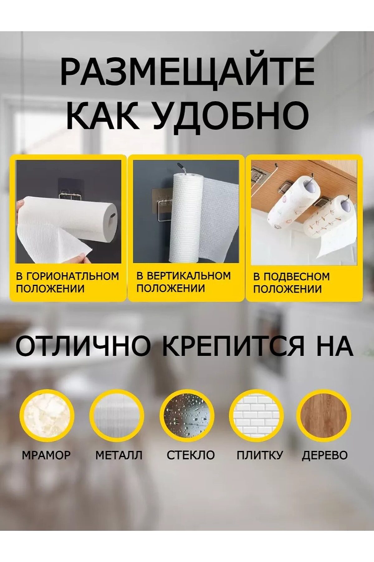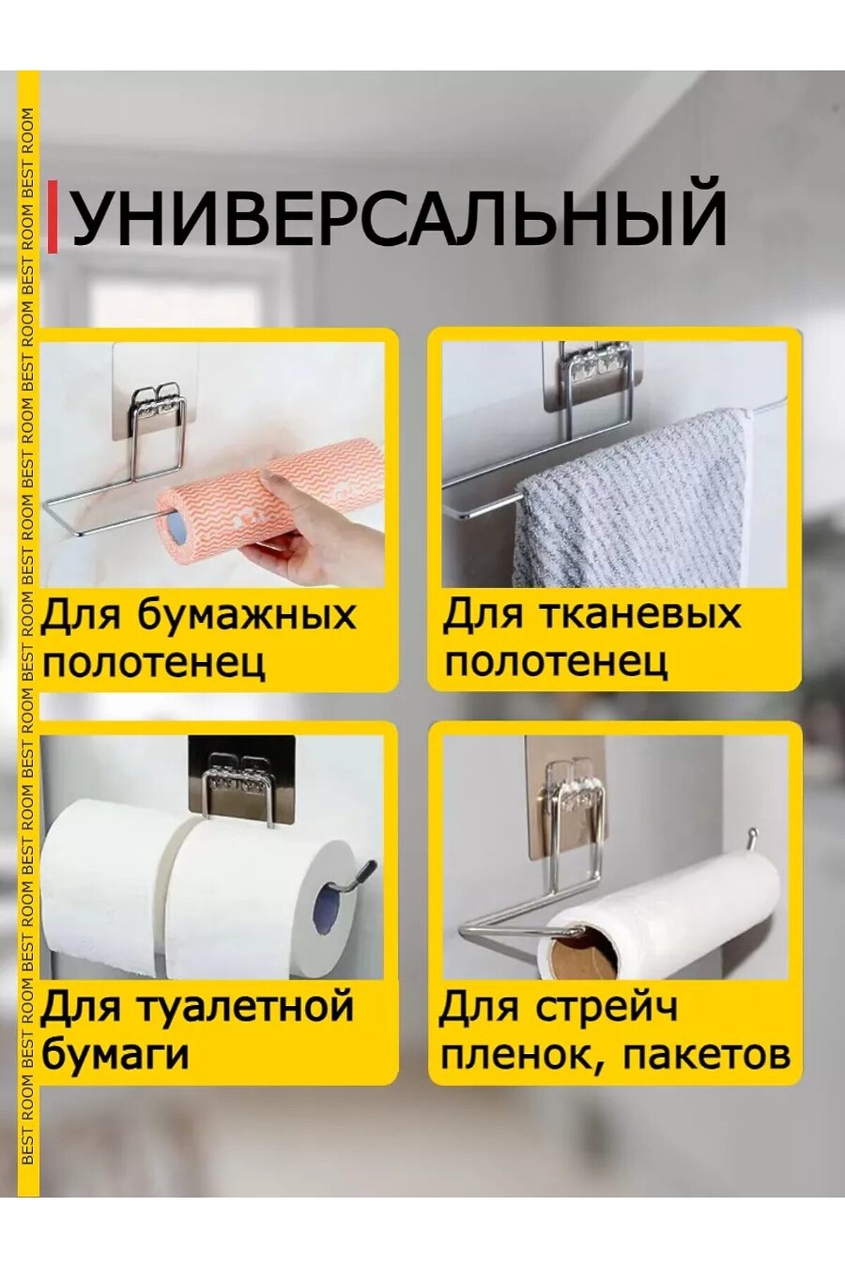 С помощью подвесного держателя вы можете разместить бумажные полотенца в удобное место под полочками или на дверцу шкафа. С ним Вы без проблем всегда можете быстро воспользоваться полотенцами: протереть поверхности стола, обсушить руки, фрукты, овощи или мясо. Вы сэкономите много времени, ведь больше не придется подолгу искать полотенца, фольгу, пленку или пергамент. Универсальный кухонный держатель вешалка выполнен из хромированной стали и предназначен для удерживания как кухонных бумажных или тканевых полотенец, так и прочих принадлежностей обихода. Крючок оснащен креплением на клейкой прозрачной ленте, чем завоевал любовь домохозяек, поскольку его монтаж и с эстетической стороны и в плане сохранения целостности не испортит поверхность на которую будет крепиться, чтобы установить его не потребуется даже помощь сильного пола, представительницы прекрасного пола справятся и сами, нужно только дополнительно очистить участок поверхности к которому будет прикреплен изящный девайс, обезжирить его, снять защитную пленку и прижать клеевую основу, тщательно пригладив, удаляя пузырьки воздуха.