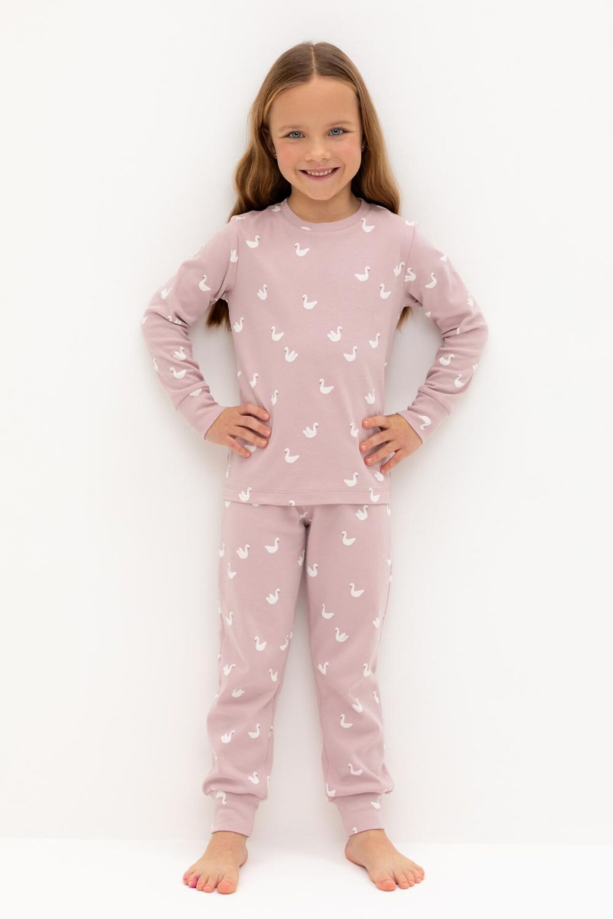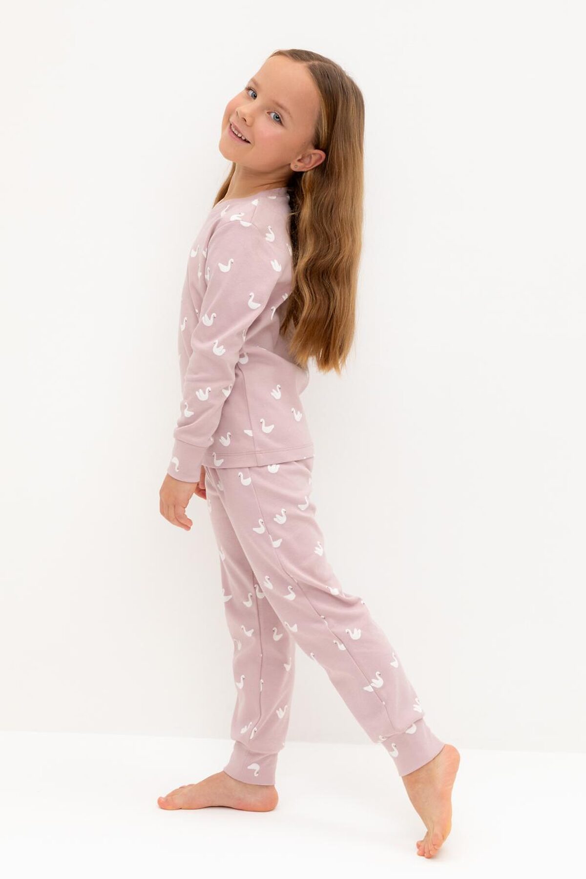 Пижама CROCKID, розово-сиреневый,лебеди
