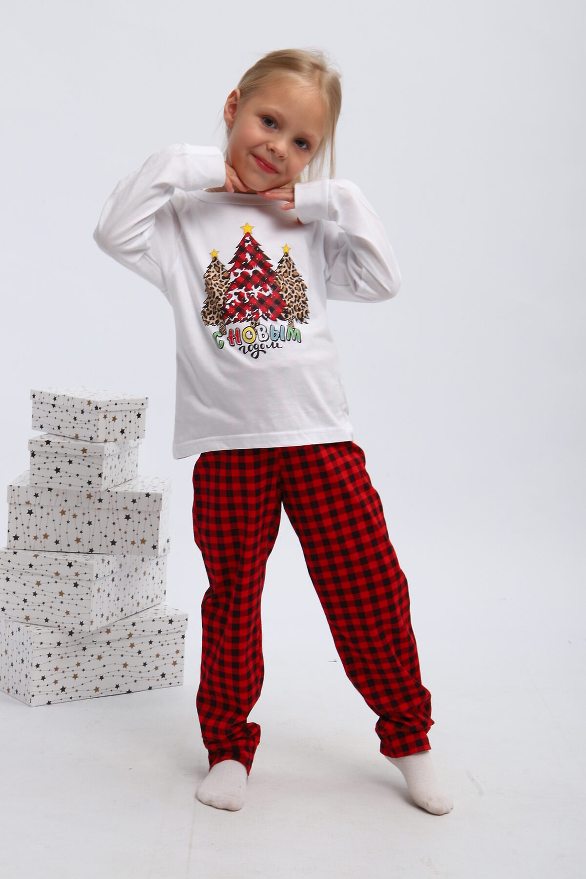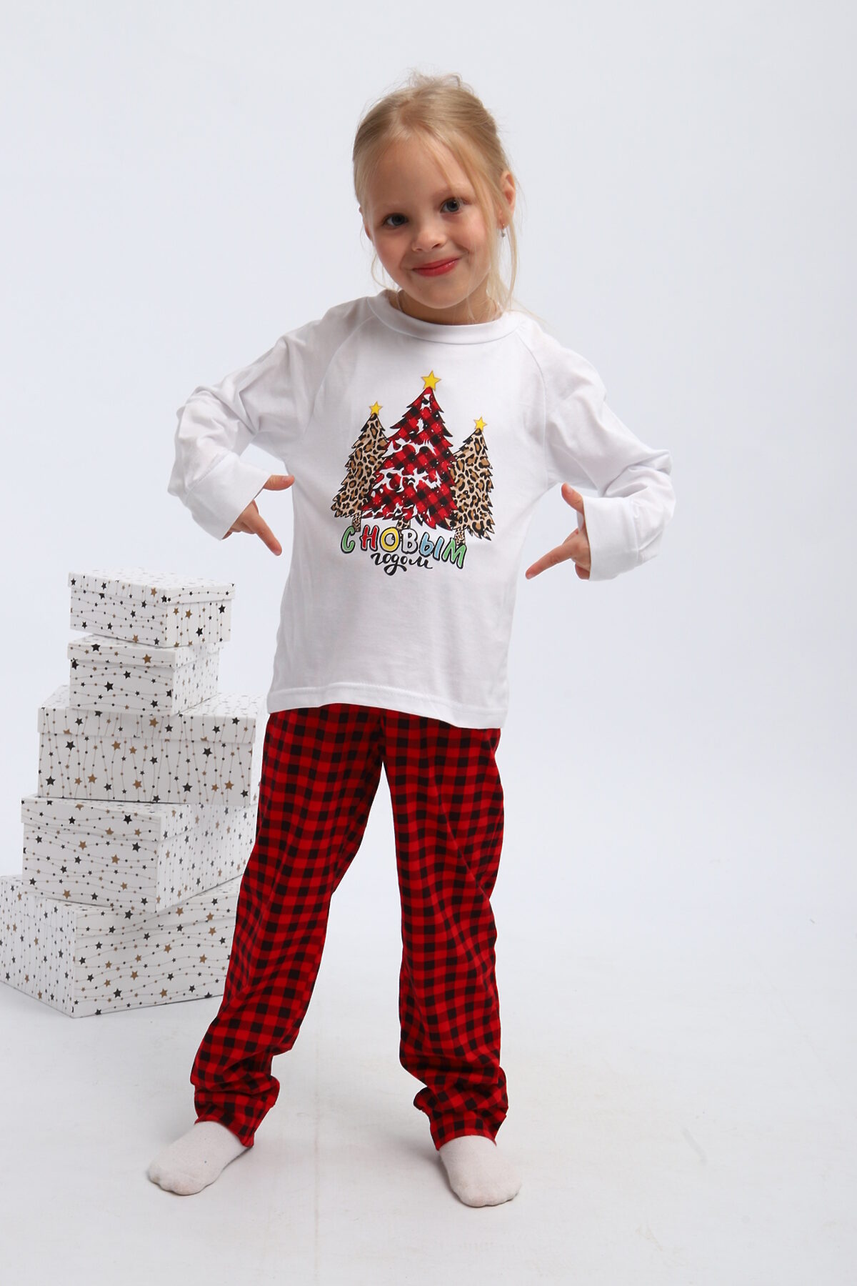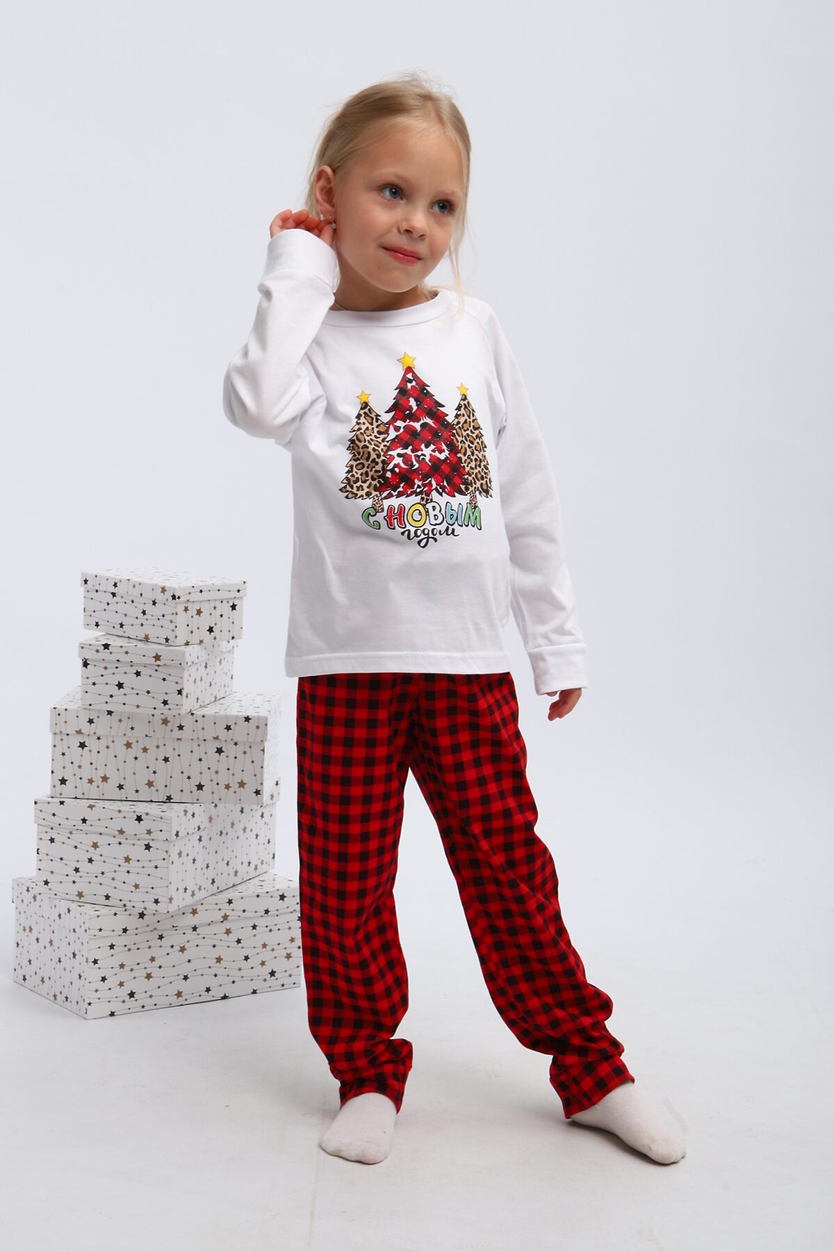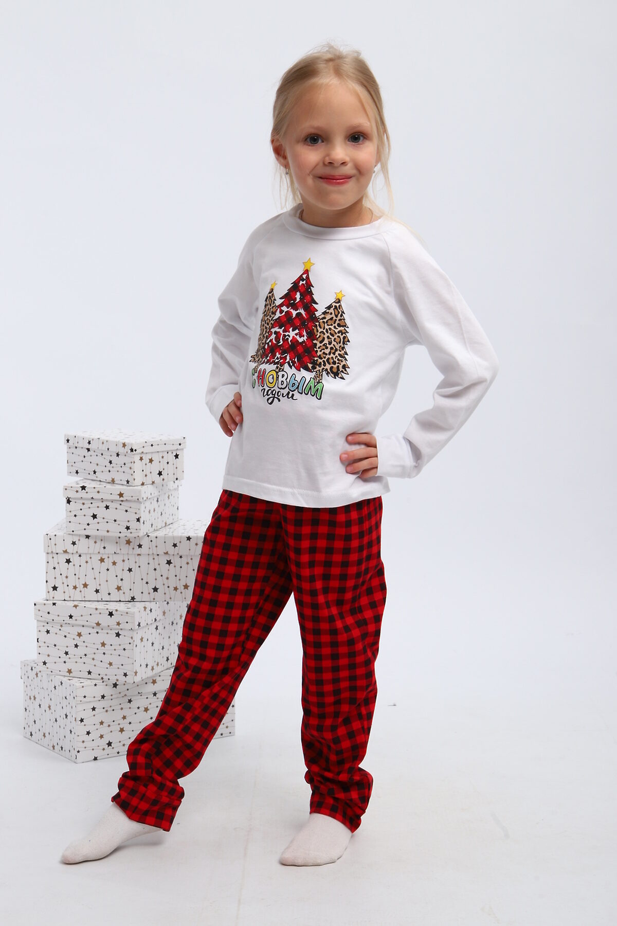 Детская пижама с брюками П324 Нарядные Ёлочки НАТАЛИ, красный,белый