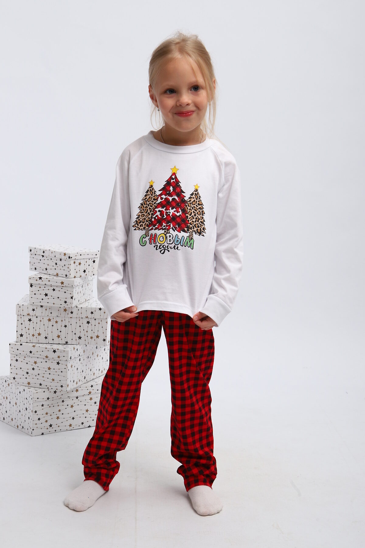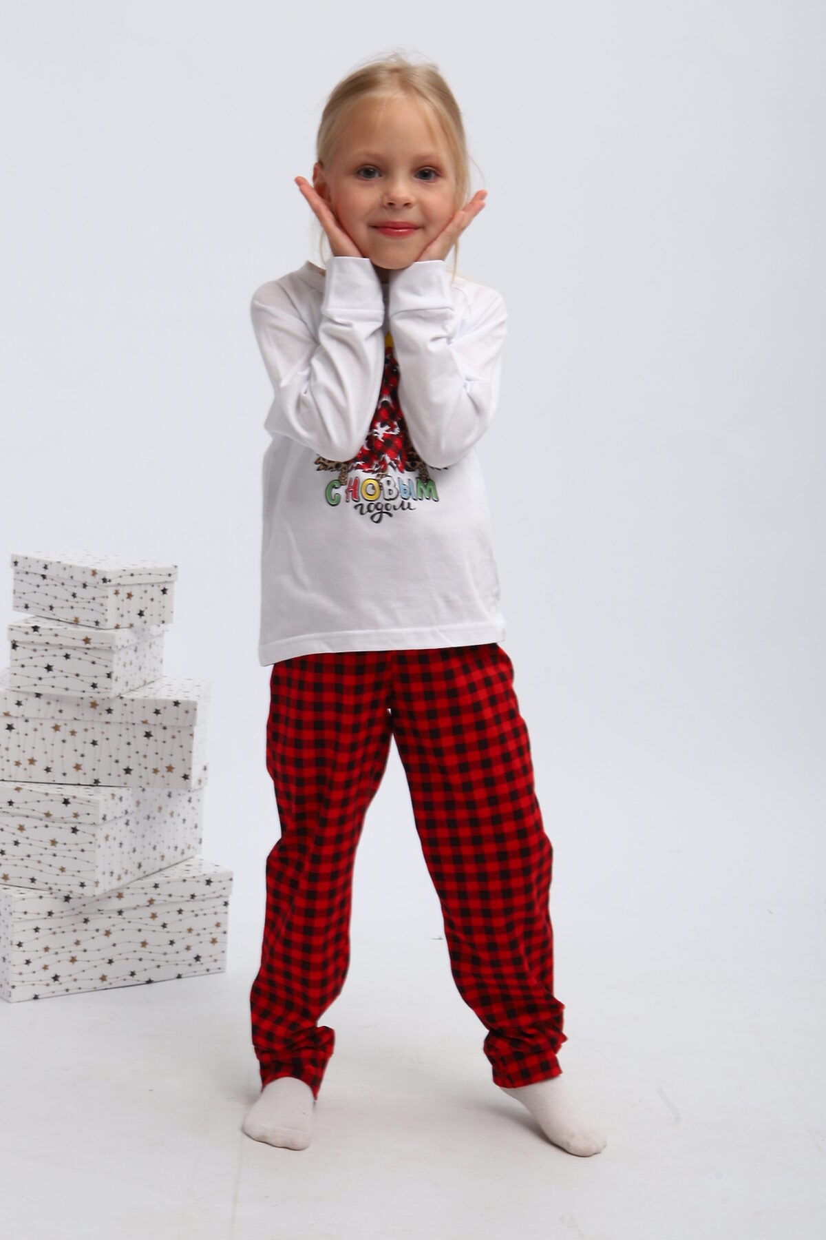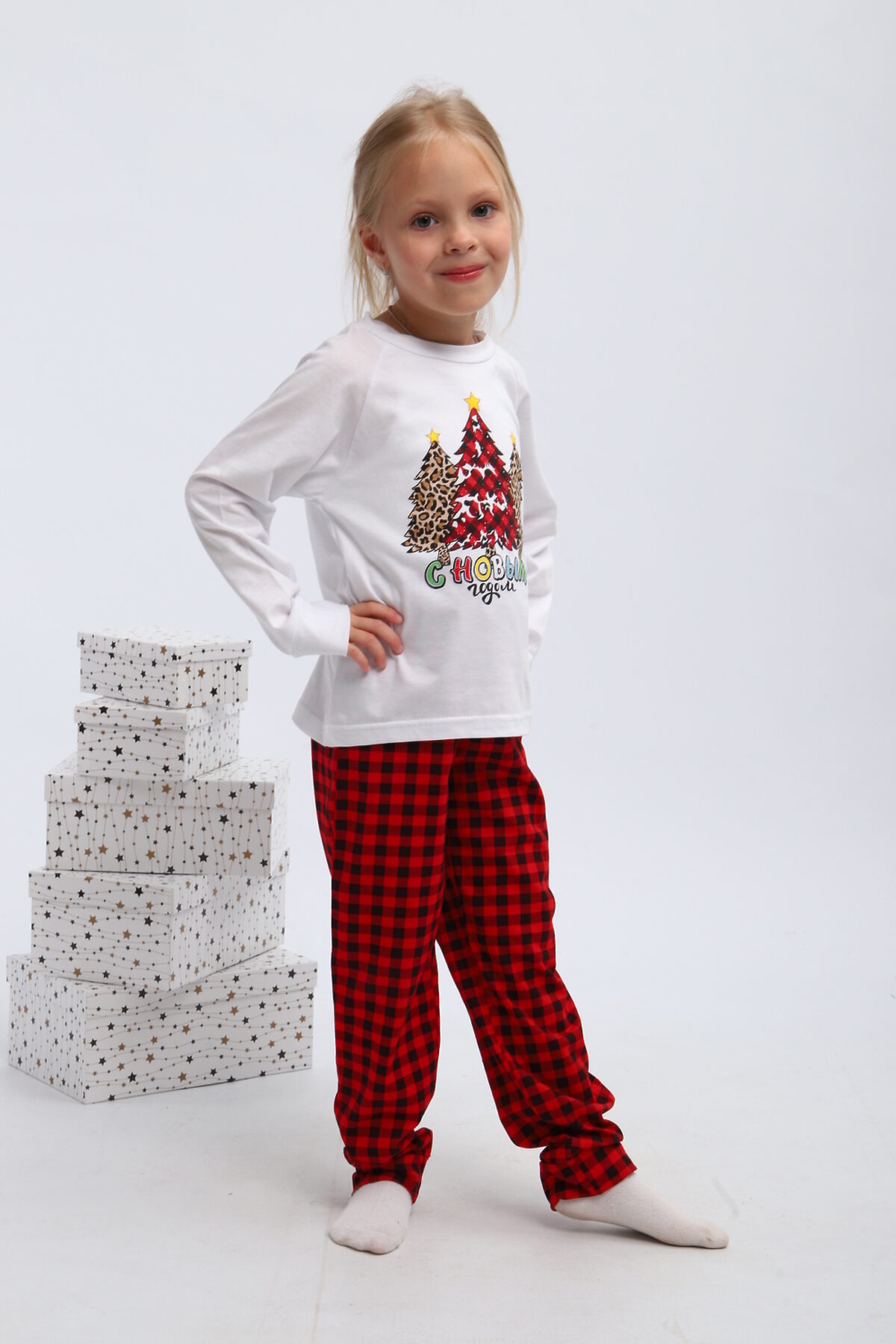 Детская пижама с брюками П324 Нарядные Ёлочки НАТАЛИ, красный,белый