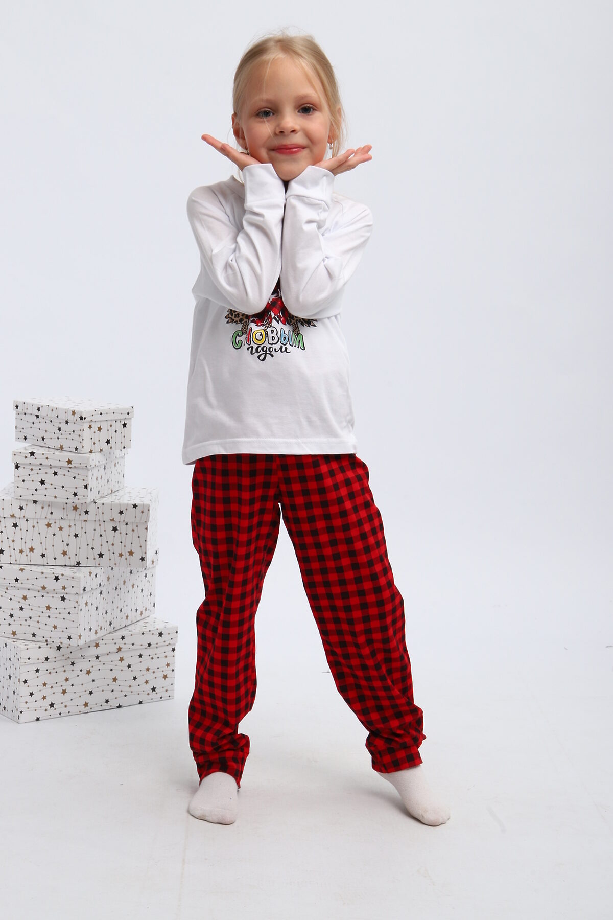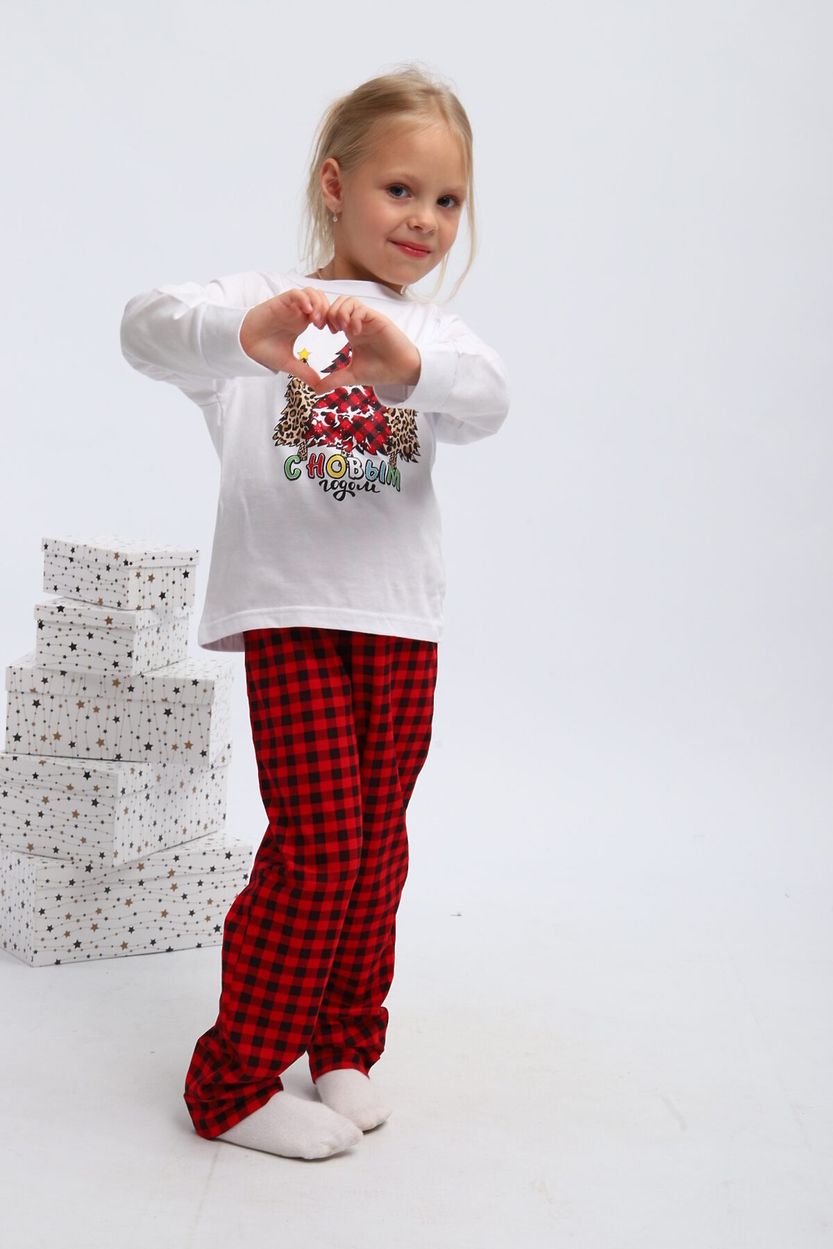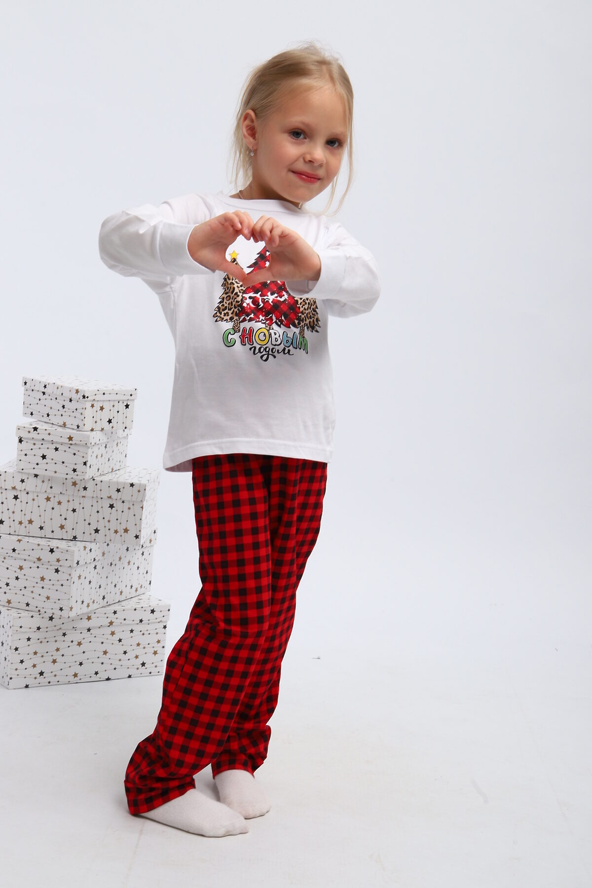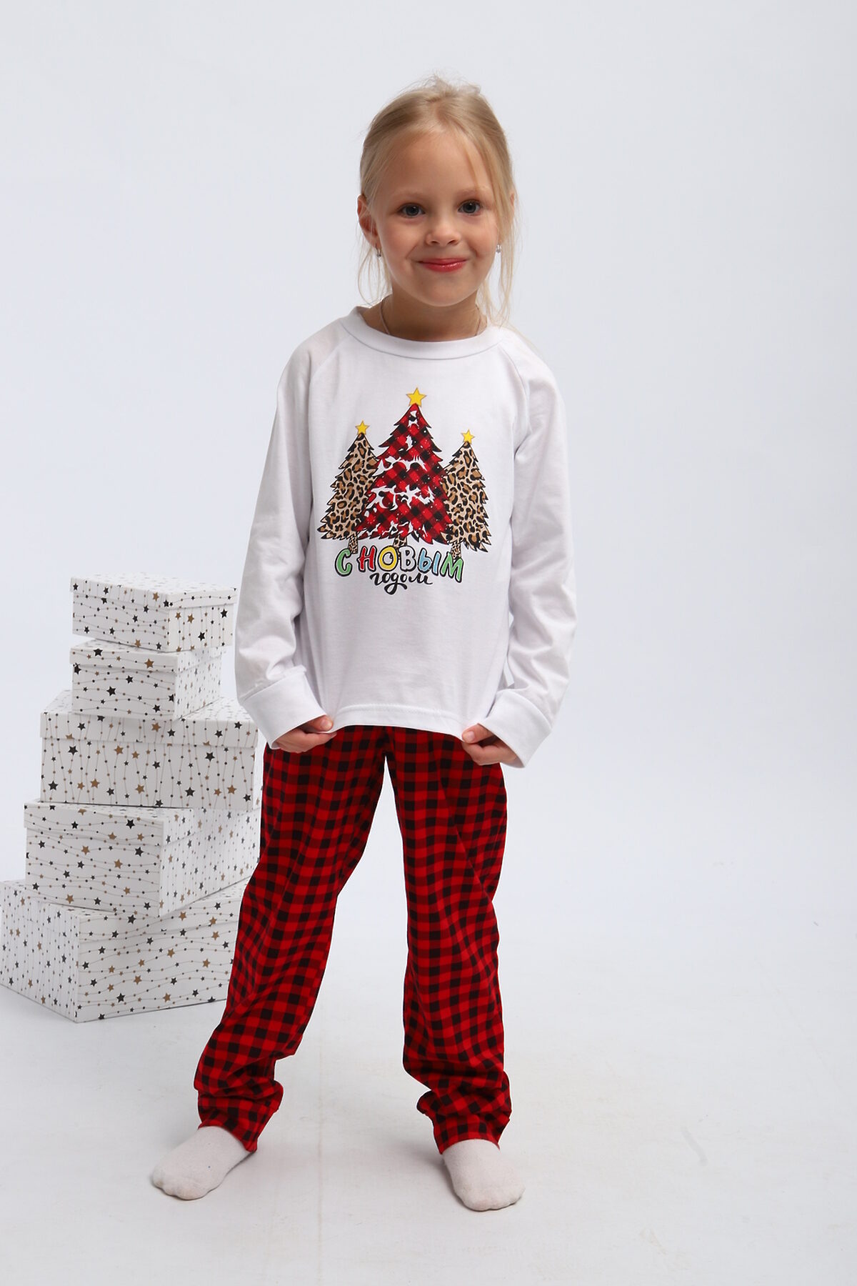 Детская пижама с брюками П324 Нарядные Ёлочки НАТАЛИ, красный,белый