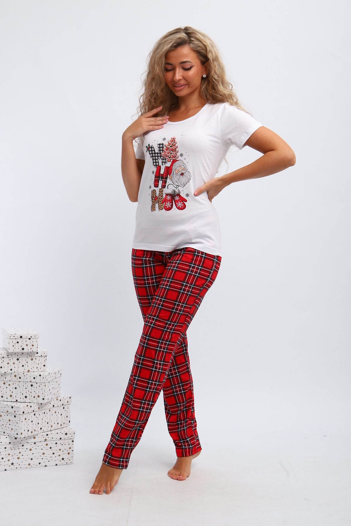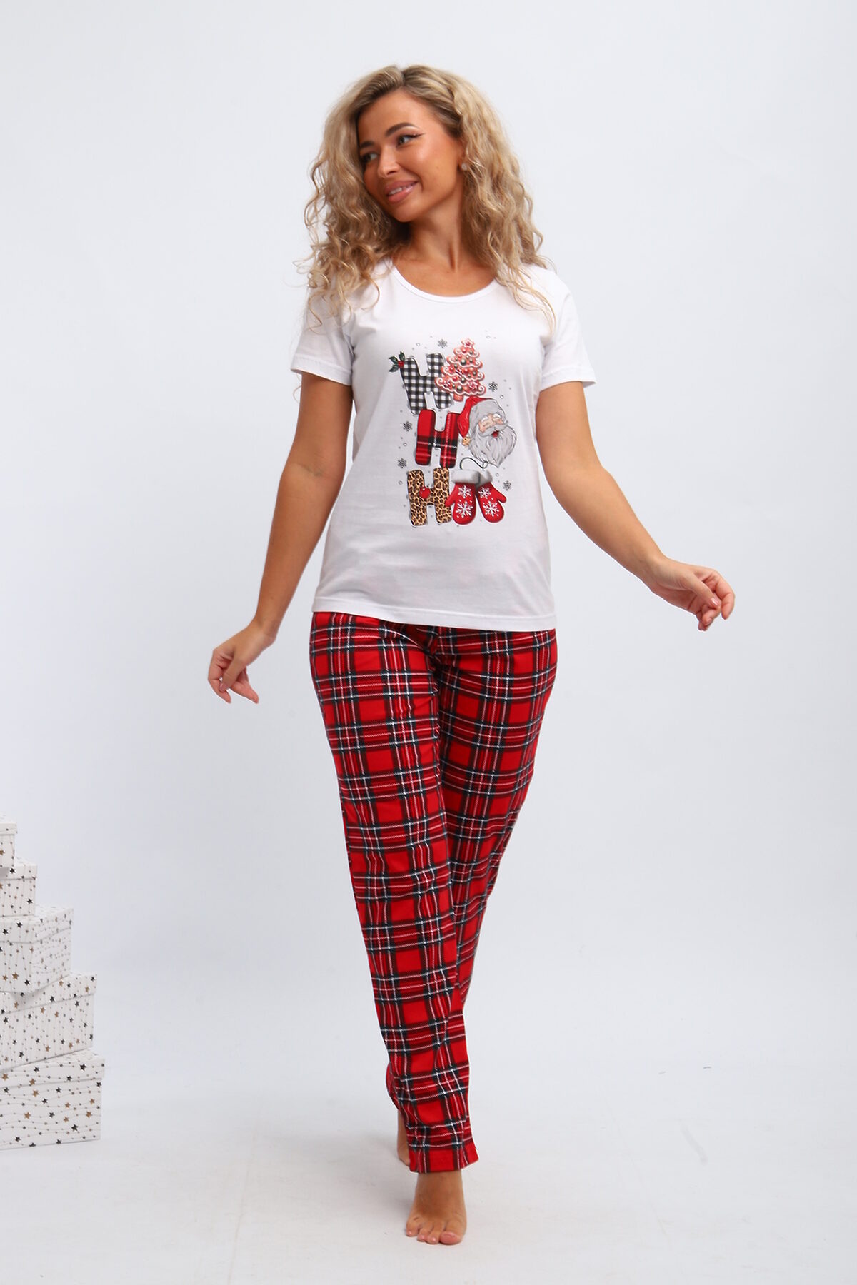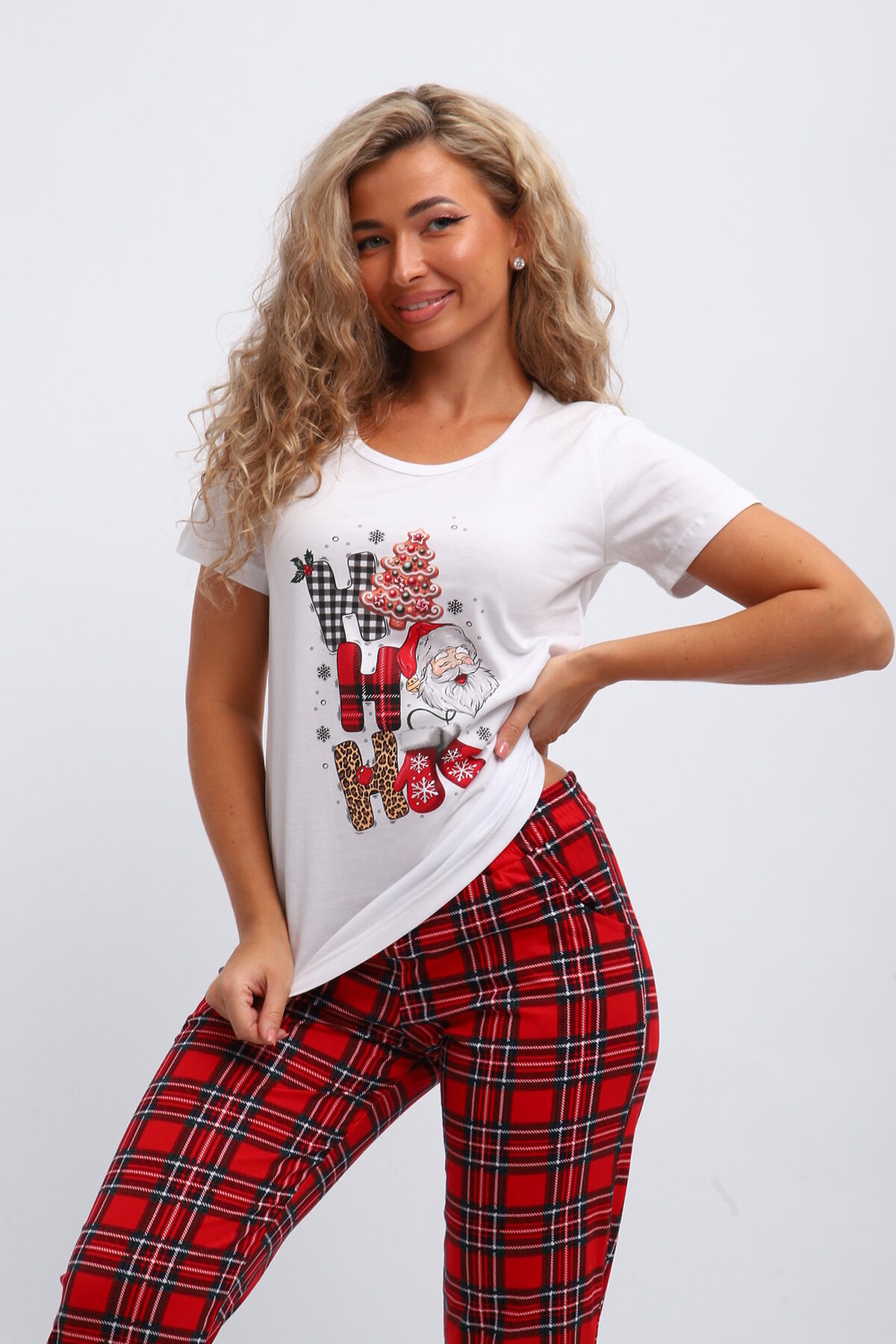 Стильный и модный набор для дома, который станет отличным выбором для девушек и женщин. Этот комплект создан с учетом всех современных тенденций, обеспечивая комфорт и удобство повседневной носки. Трикотажный материал приятно ощущается на коже, благодаря чему костюм идеально подходит для отдыха и сна. Этот красивый пижамный комплект включает в себя уютную футболку и брюки на резинке. Мягкий трикотаж обеспечивает свободу движений и комфорт в любое время суток. Одежда выполнена в ярком стиле, чтобы вы чувствовали себя привлекательно даже дома. Особенным украшением комплекта является оригинальный новогодний принт, создающий милый и игривый образ. Праздничный комплект двойка можно легко использовать как повседневную одежду дома или в роддоме. Брюками здесь выступают стильные джоггеры, которые делают внешний вид современным и непринужденным. Женский домашний костюм отлично подходит беременным женщинам благодаря свободному крою и мягкому материалу. Ивановские производители сделали акцент на высоком качестве тканей, что обеспечивает долговечность изделия без потери формы после многочисленных стирок. Костюм из хлопка покоряет своим лаконичным стилем: он подчеркивает естественную красоту хозяек благодаря простоте линий и одновременно яркости деталей. Этот брючный комплект идеальный выбор для домашнего отдыха либо сна; он помогает расслабиться после долгого дня. Дизайн сочетает в себе элементы классики и трендов моды, поэтому пижама будет актуальна долгое время разным поколениям женщин. Костюм с рисунком ёлочек для подростков из хлопка покоряет своим лаконичным стилем: он подчеркивает естественную красоту хозяек благодаря простоте линий и одновременно яркости деталей.