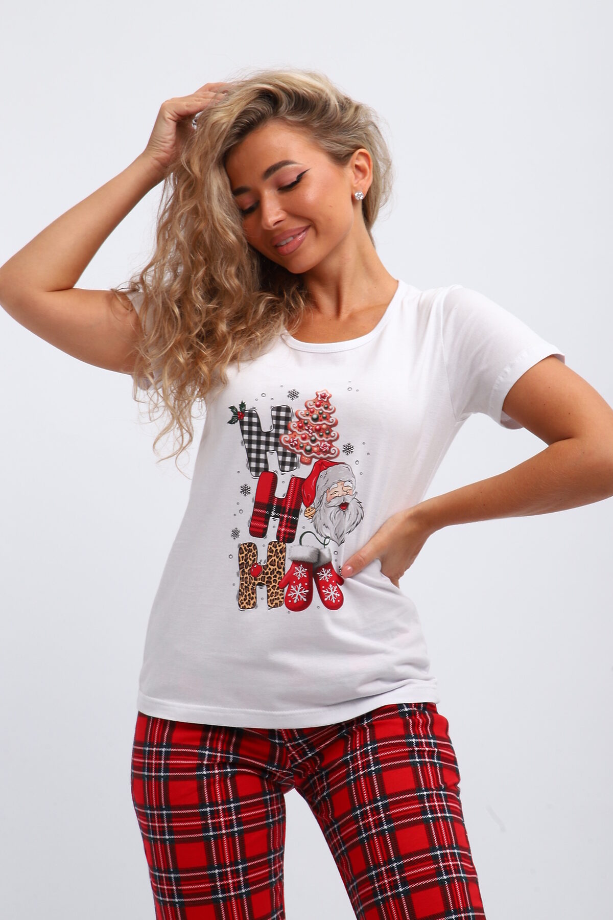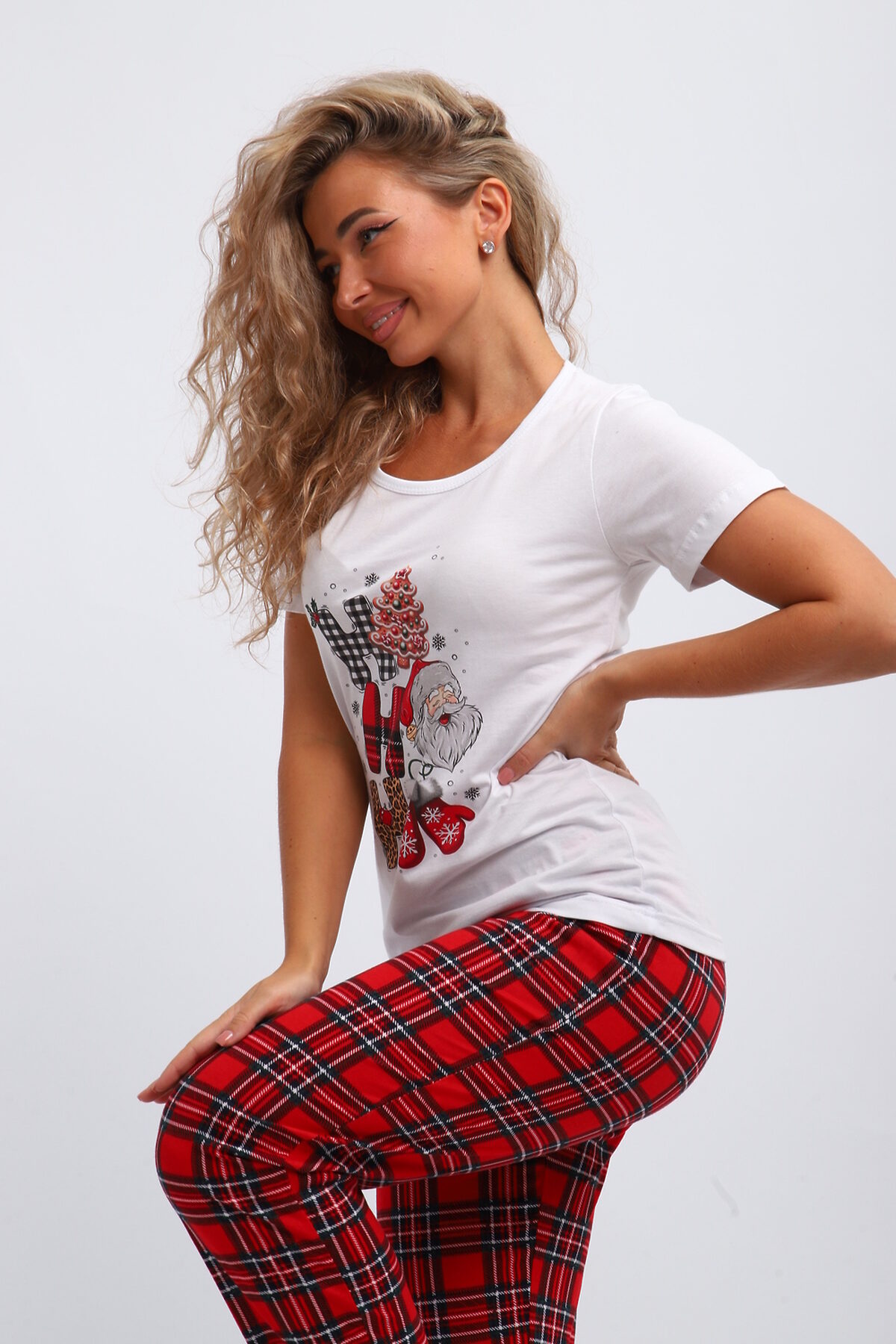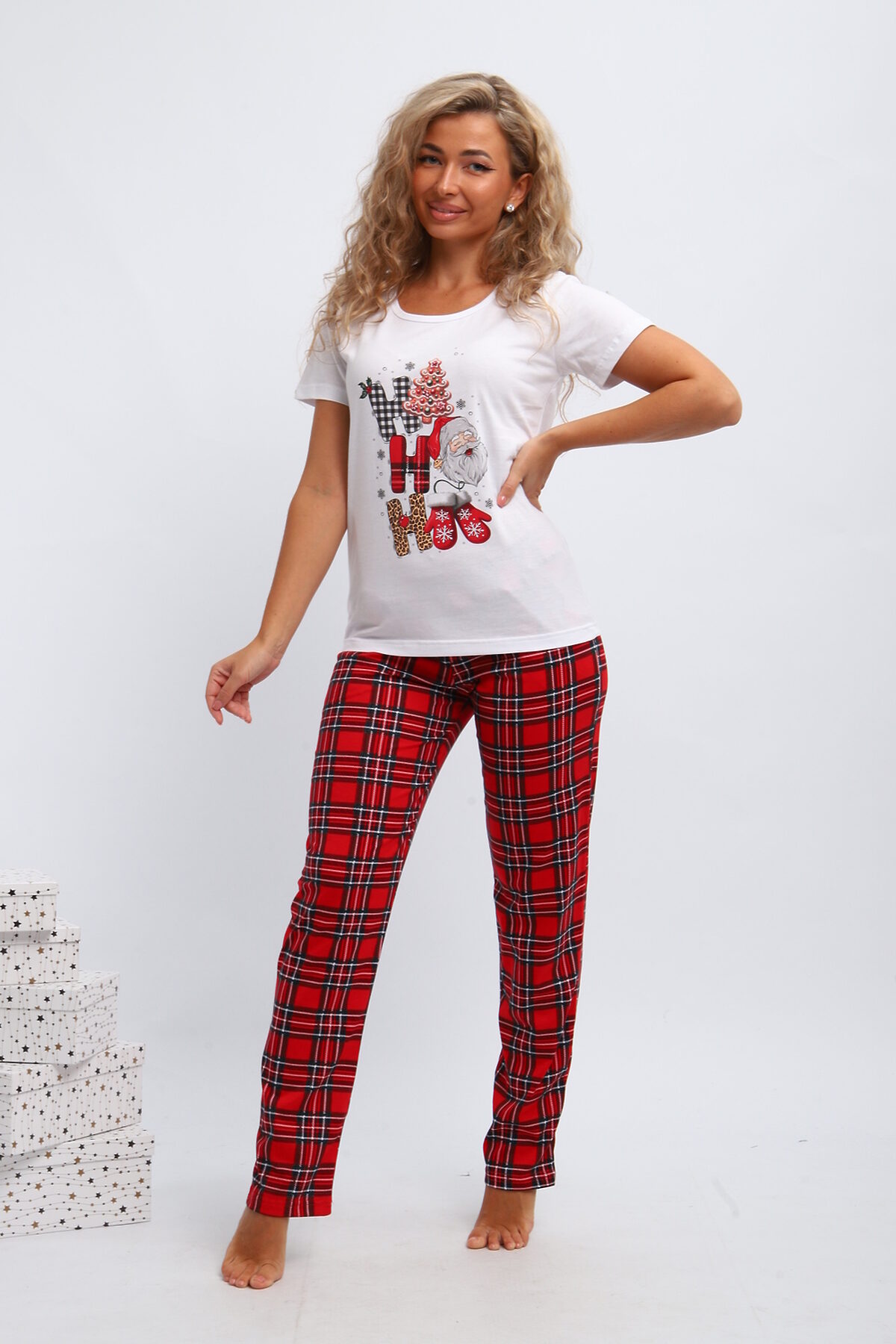 Стильный и модный набор для дома, который станет отличным выбором для девушек и женщин. Этот комплект создан с учетом всех современных тенденций, обеспечивая комфорт и удобство повседневной носки. Трикотажный материал приятно ощущается на коже, благодаря чему костюм идеально подходит для отдыха и сна. Этот красивый пижамный комплект включает в себя уютную футболку и брюки на резинке. Мягкий трикотаж обеспечивает свободу движений и комфорт в любое время суток. Одежда выполнена в ярком стиле, чтобы вы чувствовали себя привлекательно даже дома. Особенным украшением комплекта является оригинальный новогодний принт, создающий милый и игривый образ. Праздничный комплект двойка можно легко использовать как повседневную одежду дома или в роддоме. Брюками здесь выступают стильные джоггеры, которые делают внешний вид современным и непринужденным. Женский домашний костюм отлично подходит беременным женщинам благодаря свободному крою и мягкому материалу. Ивановские производители сделали акцент на высоком качестве тканей, что обеспечивает долговечность изделия без потери формы после многочисленных стирок. Костюм из хлопка покоряет своим лаконичным стилем: он подчеркивает естественную красоту хозяек благодаря простоте линий и одновременно яркости деталей. Этот брючный комплект идеальный выбор для домашнего отдыха либо сна; он помогает расслабиться после долгого дня. Дизайн сочетает в себе элементы классики и трендов моды, поэтому пижама будет актуальна долгое время разным поколениям женщин. Костюм с рисунком ёлочек для подростков из хлопка покоряет своим лаконичным стилем: он подчеркивает естественную красоту хозяек благодаря простоте линий и одновременно яркости деталей.