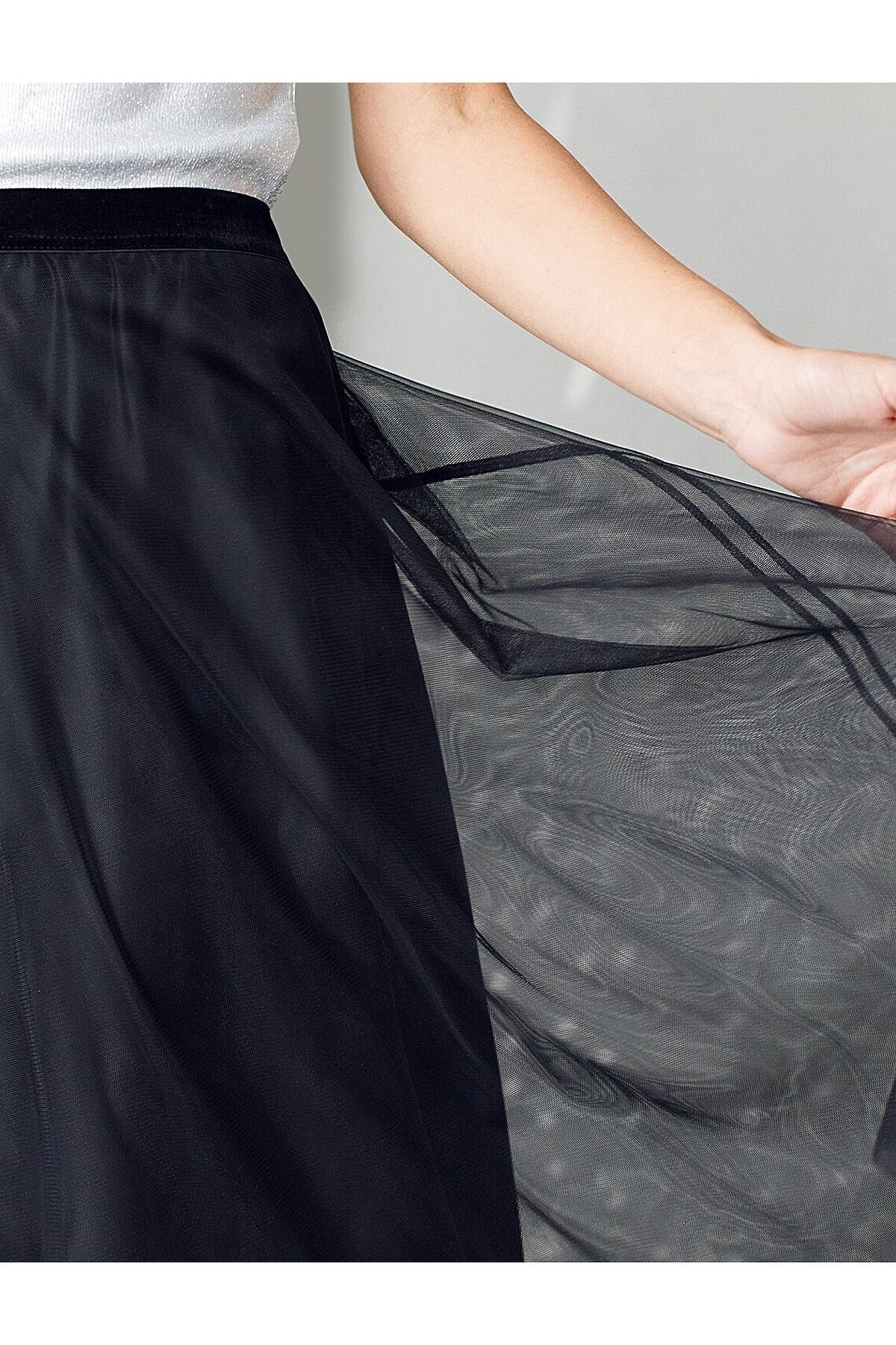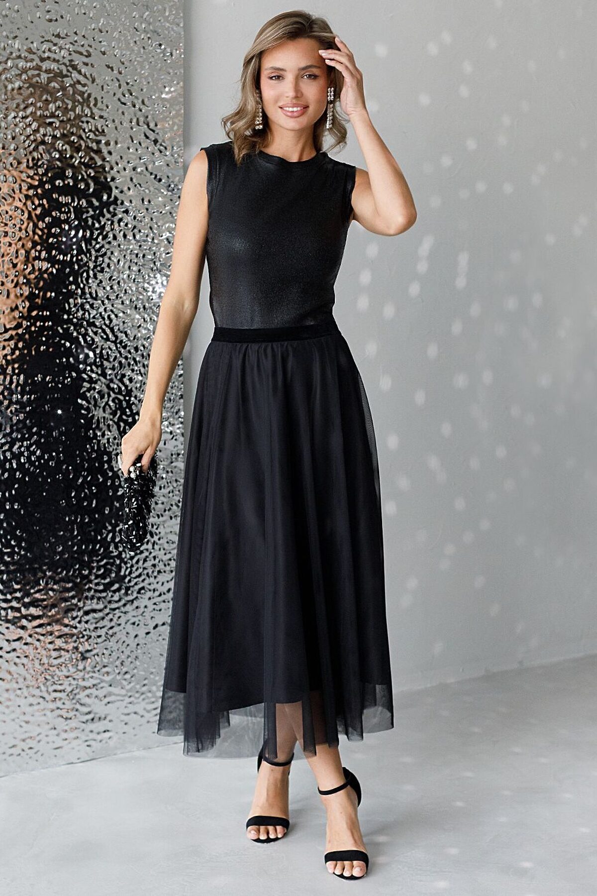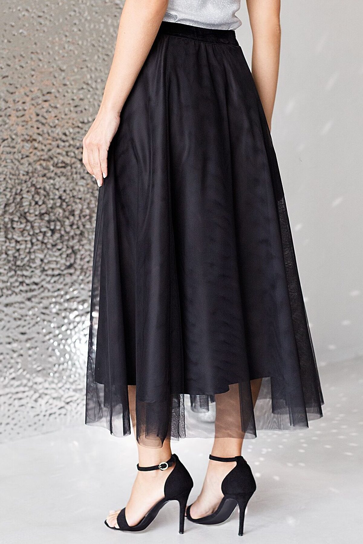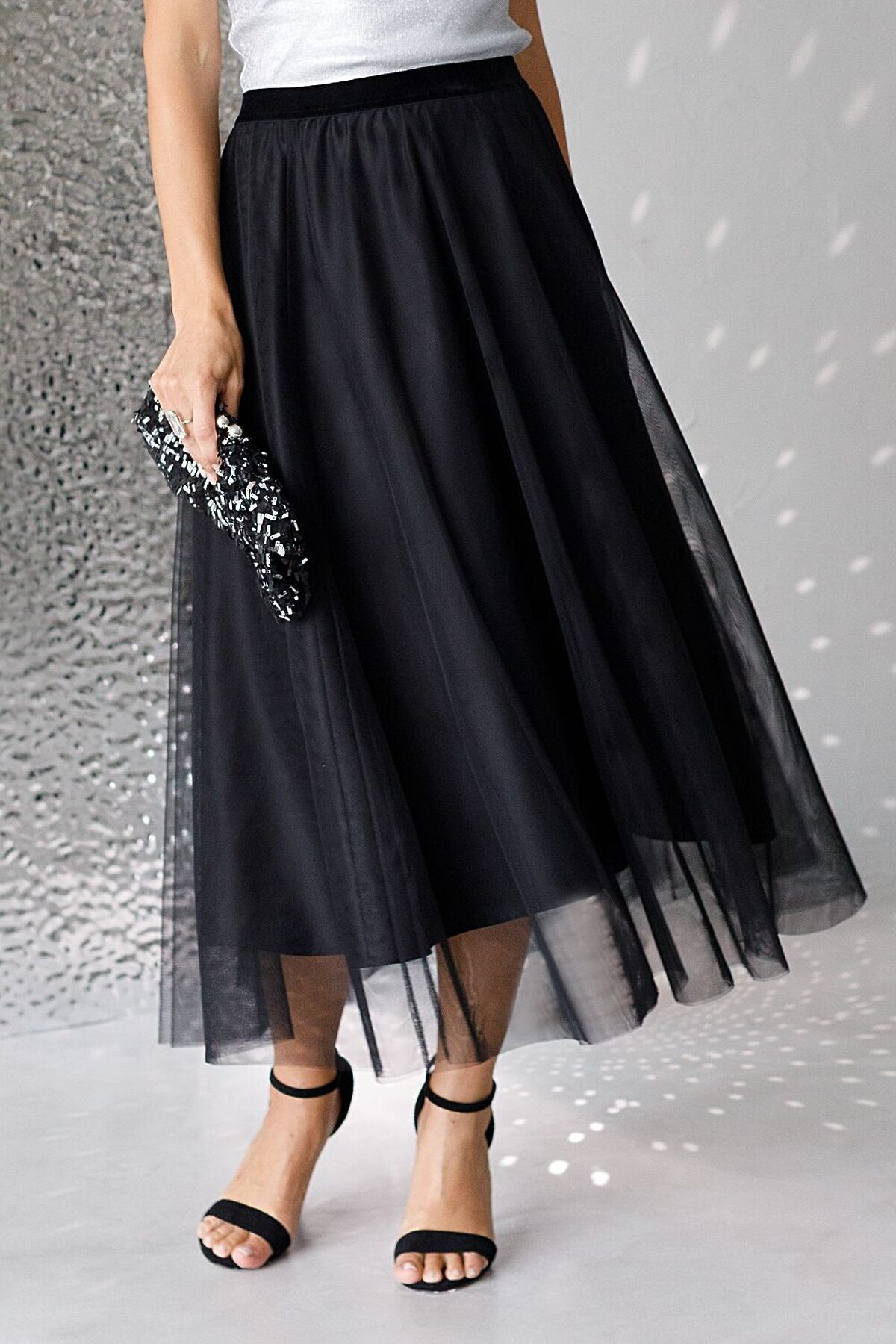 Воздушная юбка миди черного цвета из матового сатина с мягкой сеткой — отличный выбор для особого случая или торжества. Легкая и эффектная, она шикарно подчеркивает силуэт благодаря расклешенной форме трапеция. Мягкая сетка добавляет изящества и облегчает образ, а широкий эластичный пояс обеспечивает комфорт в течение всего дня. Длинная юбка подойдет и для высоких, и для девушек низкого роста.Благодаря продуманному крою изделие отлично сохраняет форму в течение всего времени носки. Нарядная юбка трапеция идеально подходит для создания новогоднего образа, для корпоративного мероприятия, так и на вечеринку с друзьями. В меру пышная расклешенная форма позволяет сочетать ее с разными вариантами верха, делая ансамбль женственным и стильным. Большой размерный ряд дает возможность выбрать подходящий вариант для любого типа фигуры, включая маленькие и большие размеры. Стильная юбка А силуэта легко вписывается не только в гардероб для торжественных мероприятий, но и подходит для повседневного выхода в город благодаря