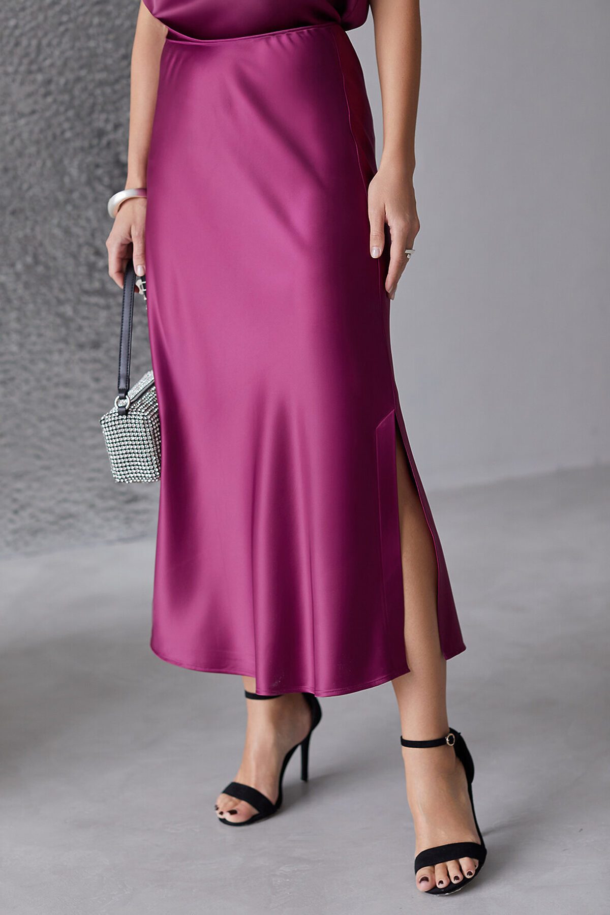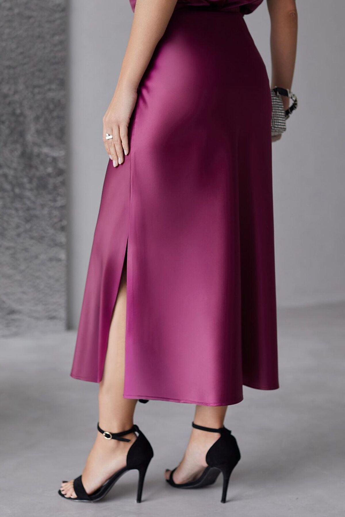 Юбка миди цвета бургунди с разрезом из струящегося плотного сатина — находка для модниц, ценящих элегантную классику и современный стиль. Модный крой длинной юбки подчеркивает фигуру, а мягкий эластичный пояс обеспечивает дополнительный комфорт на протяжении всего дня. Благодаря продуманному крою, юбка хорошо сидит на фигуре и подчеркивает силуэт без лишних деталей, подойдет для обладательниц пышных форм и девушек маленьких размеров. Шелковистая текстура материала приятно ощущается на коже, не просвечивает и сохраняет форму даже после длительной носки. Гладкая поверхность добавляет благородного блеска, делая образ неповторимым и шикарным в любой ситуации. Струящийся плотный сатин отличается устойчивостью к сминанию: юбка не мнется, что позволяет выглядеть безупречно на работе, встрече или прогулке. Атласная юбка придает образу элегантный и благородный вид, а разрез добавляет легкую динамичность и создает утонченный акцент на линии ног, сохраняя при этом сдержанную женственность. Юбка визуально вытягивает сил