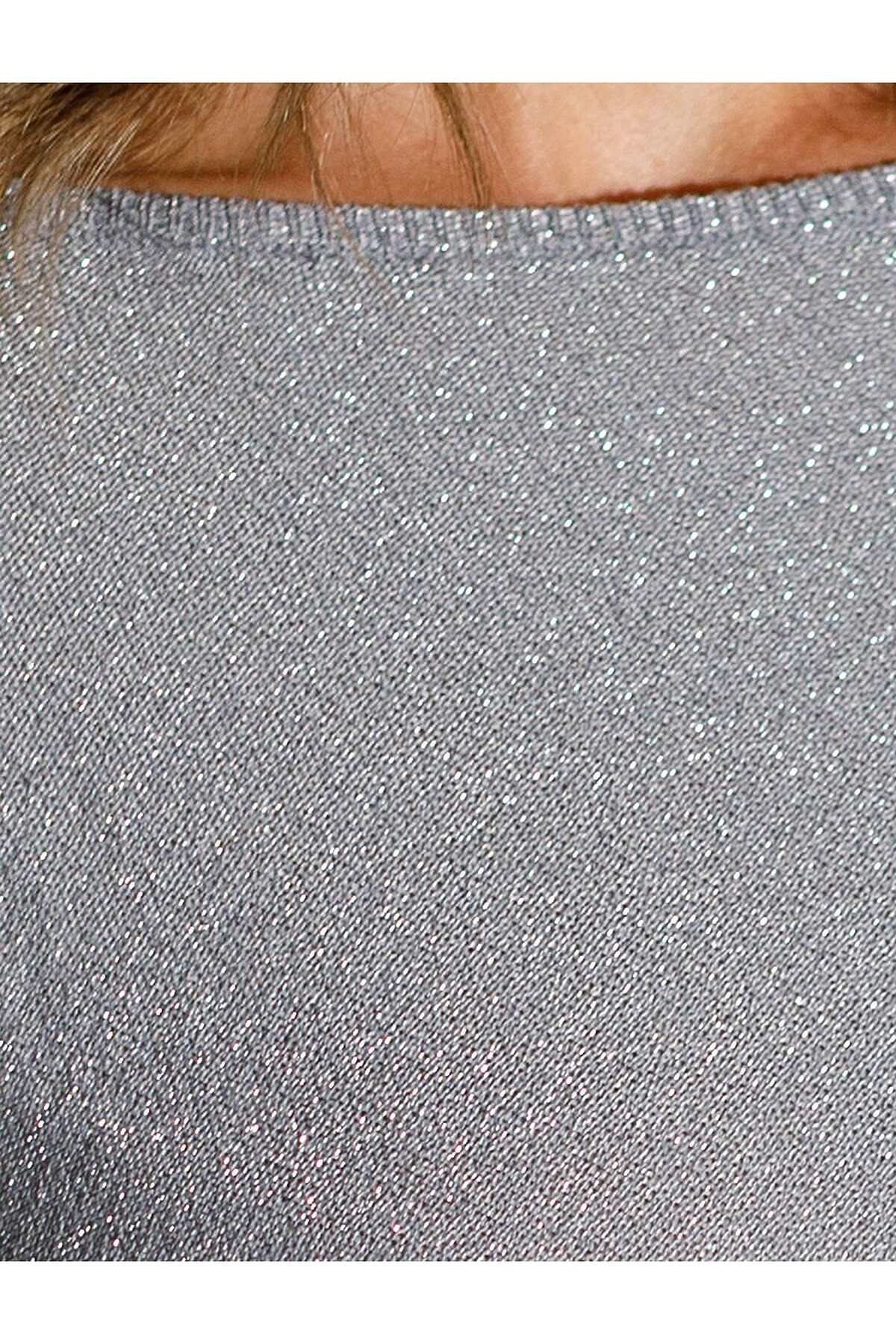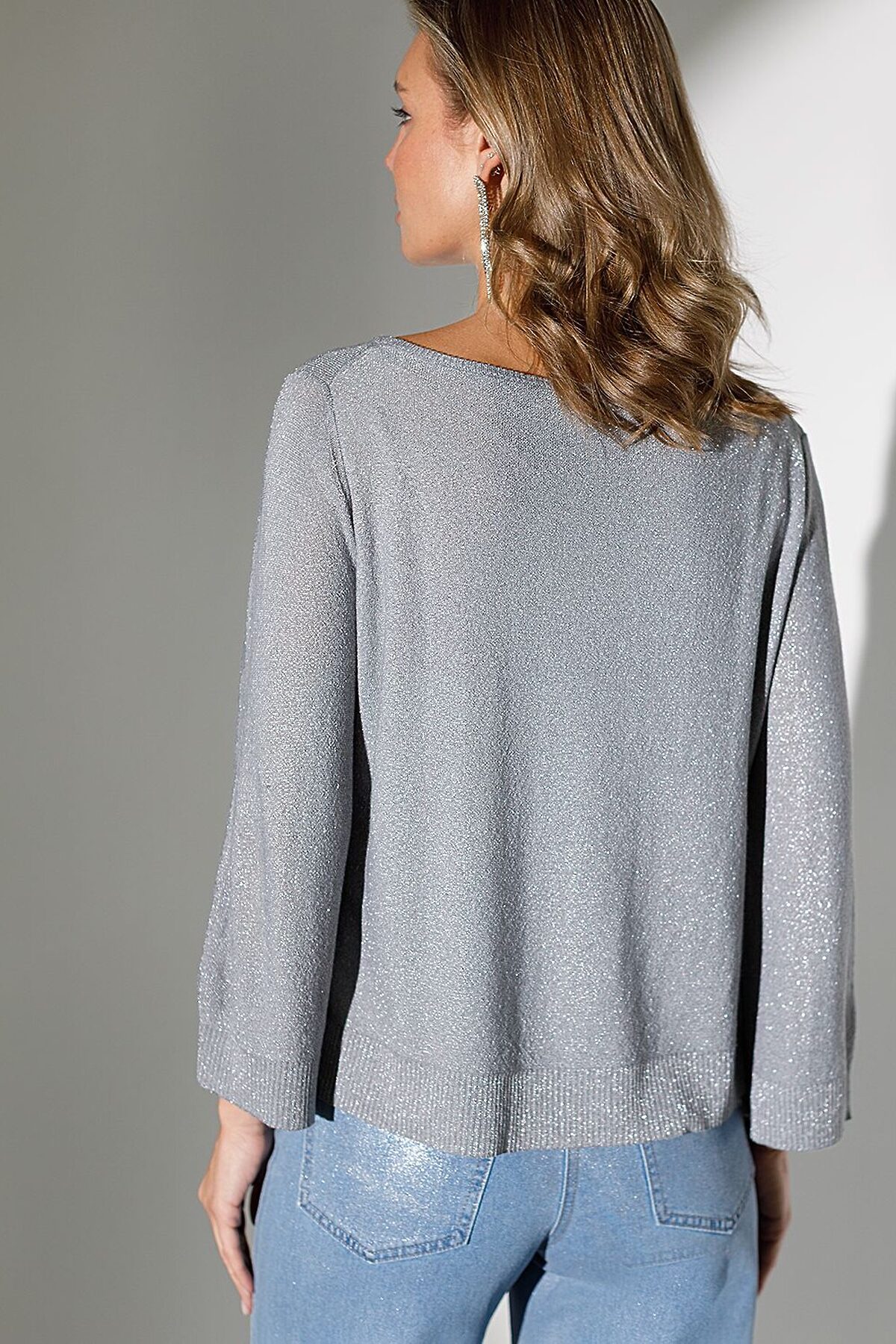 Свободный джемпер тонкой вязки сочетает мягкость вискозы с изысканным блеском люрекса. Легкий и нарядный, он идеально подходит для повседневных и праздничных образов. Расклешенные широкие рукава придают изделию стильный и необычный силуэт, а серебристный блестящий эффект добавляет сияния и подчеркивает красоту джемпера. Модель отличается комфортом благодаря свободному крою, который не сковывает движений и дарит ощущение легкости на теле и подходит для больших размеров, обеспечивая комфортную посадку на фигуре. Полотно сохраняет форму даже после многократных стирок, не теряя эластичности и эстетики. Красивый дизайн гармонично сочетается с разнообразными элементами гардероба, делая этот джемпер универсальным выбором для создания нарядного лука. Этот стильный джемпер отлично впишется в гардероб тех, кто ценит элегантность и комфорт одновременно, сочетая повседневную практичность с праздничным настроением.