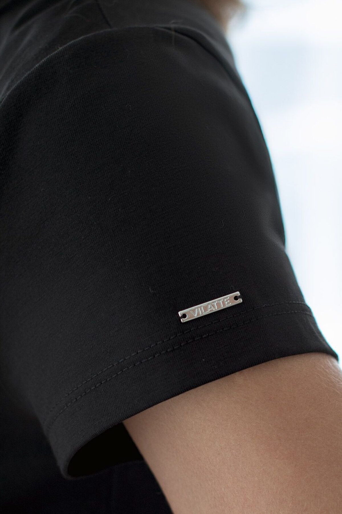 Стильная базовая футболка черного цвета с серебристым принтом пайетками выполнена из плотного хлопка с эластаном для комфортной посадки на любую фигуру. Прямая футболка классического кроя с круглым вырезом, прекрасно подходит для разных типов фигуры, в том числе и на большие размеры. Мягкость хлопка вместе с небольшой долей эластана гарантирует идеальную посадку и свободу движений. Легкая натуральная дышащая ткань премиального качества делает футболку с коротким рукавом идеальным вариантом для повседневной носки дома, на работу или офис. Однотонная футболка дополнена авторским аккуратным принтом, который придает праздничный и элегантный вид без лишней вычурности. Блестящий принт аккуратно украшает, добавляя изысканный акцент и создавая легкий мерцающий эффект. Эта эффектная футболка станет отличным выбором на праздник, подчеркивая образ сияющей и уверенной в себе девушки или женщины. Если вы ищете комфортный и одновременно привлекательный наряд для особых моментов, эта футболка станет надежным решением, п