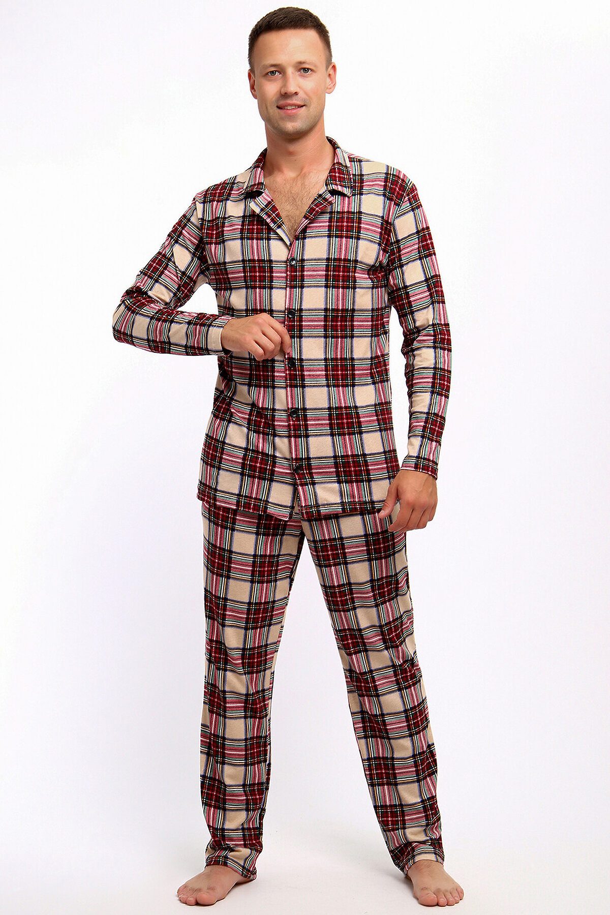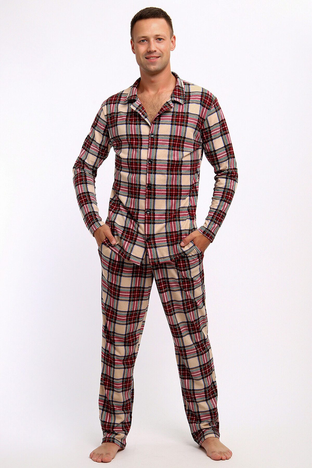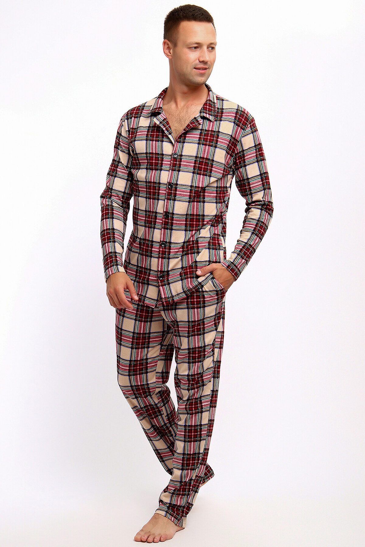 Этот мужской домашний комплект пижамы выполнен из мягкого хлопчатобумажного винтажного бежевого полотна в классическую клетку Vintage Check. Удобный дизайн с длинным рукавом и брюками с карманами обеспечивает комфорт и практичность в повседневной носке. Идеальный выбор для уютных вечеров и спокойных выходных дома.