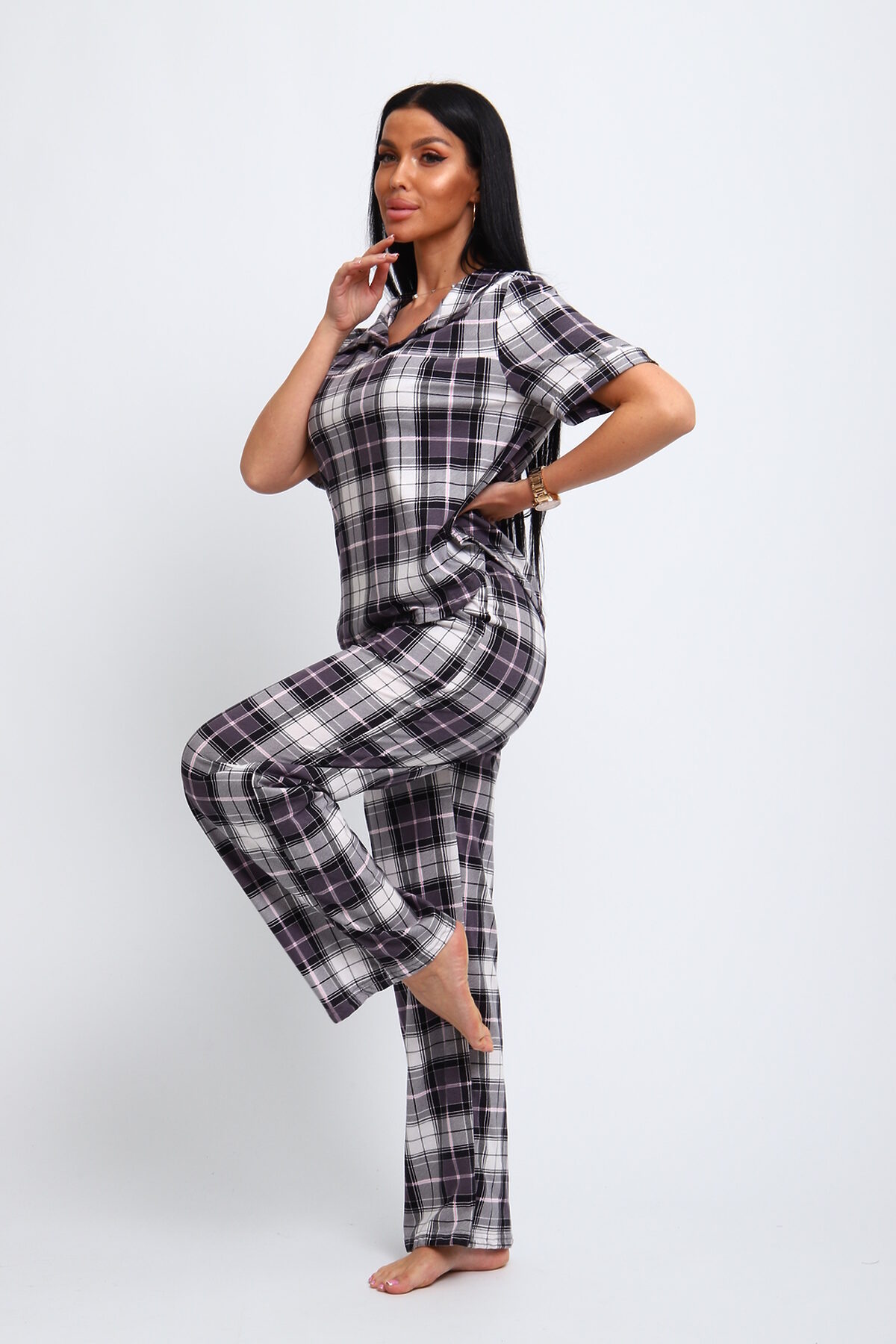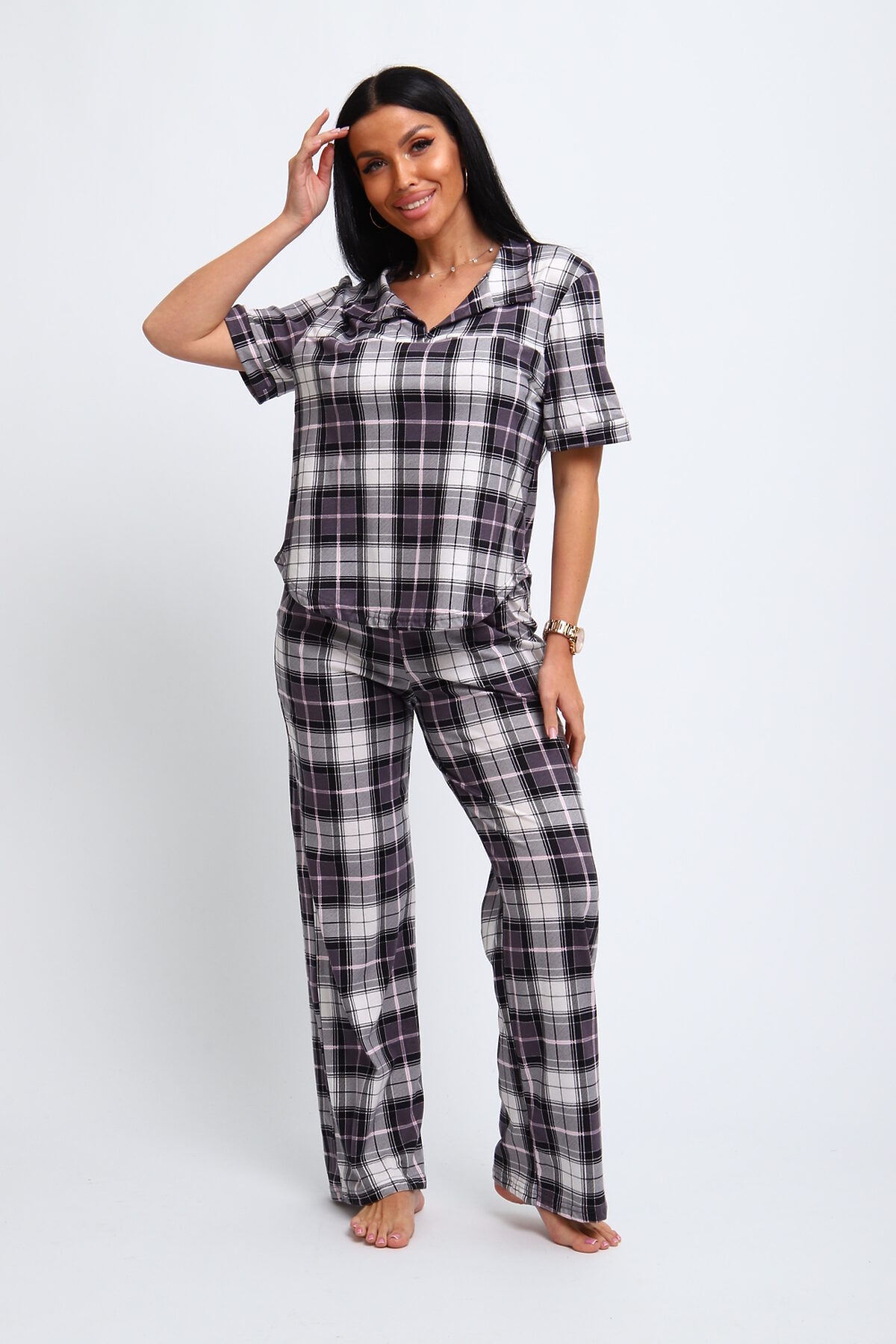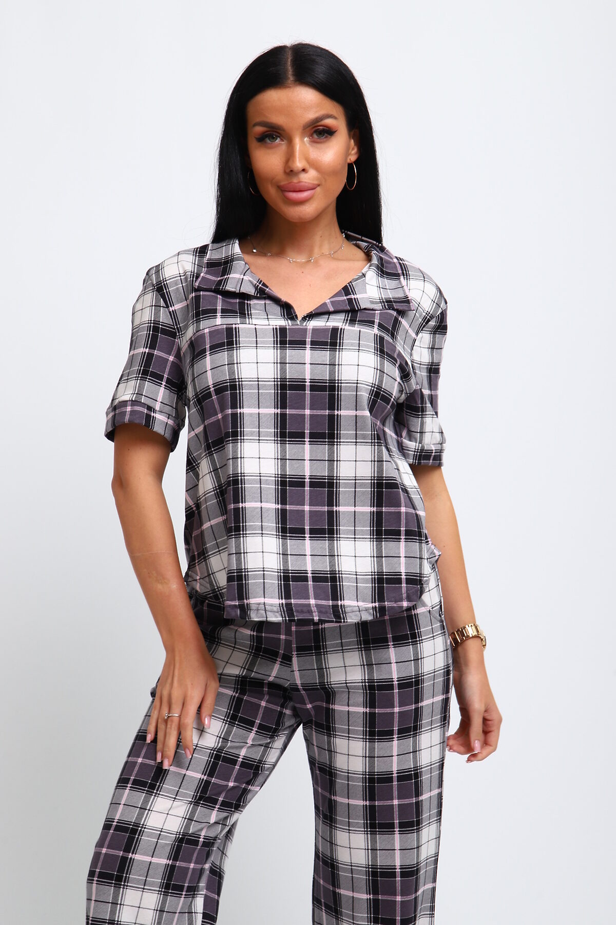 Женская пижама с футболкой и штанами это идеальный домашний комплект, который сочетает в себе удобство и практичность. Легкий и дышащий хлопок делает эту одежду для сна особенно приятной к телу, а свободный прямой крой обеспечивает комфорт в любое время суток. Комплект состоит из футболки с короткими рукавами и брюк на резинке, что позволяет легко надевать и снимать его, не стесняя движений. Брюки с карманами.