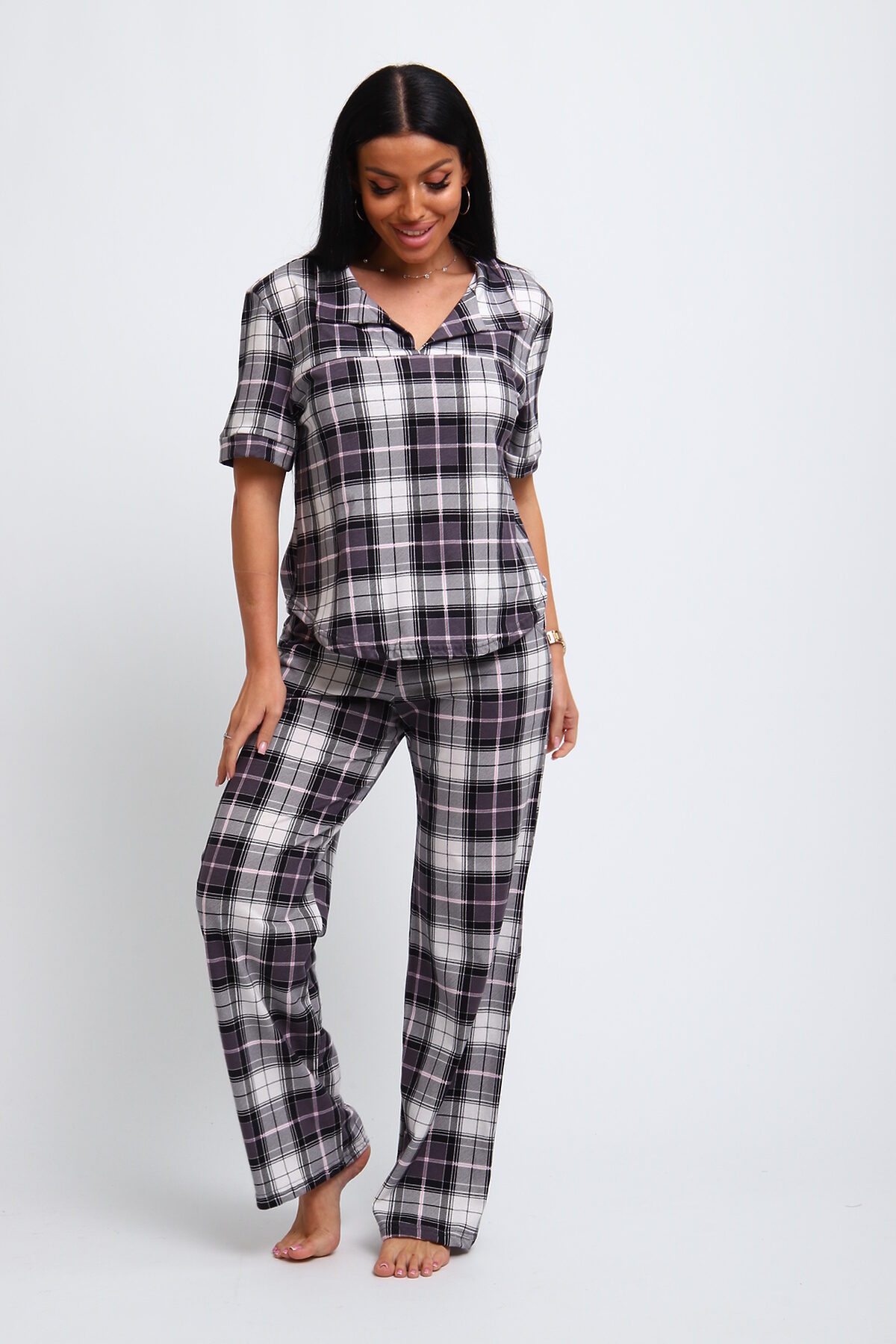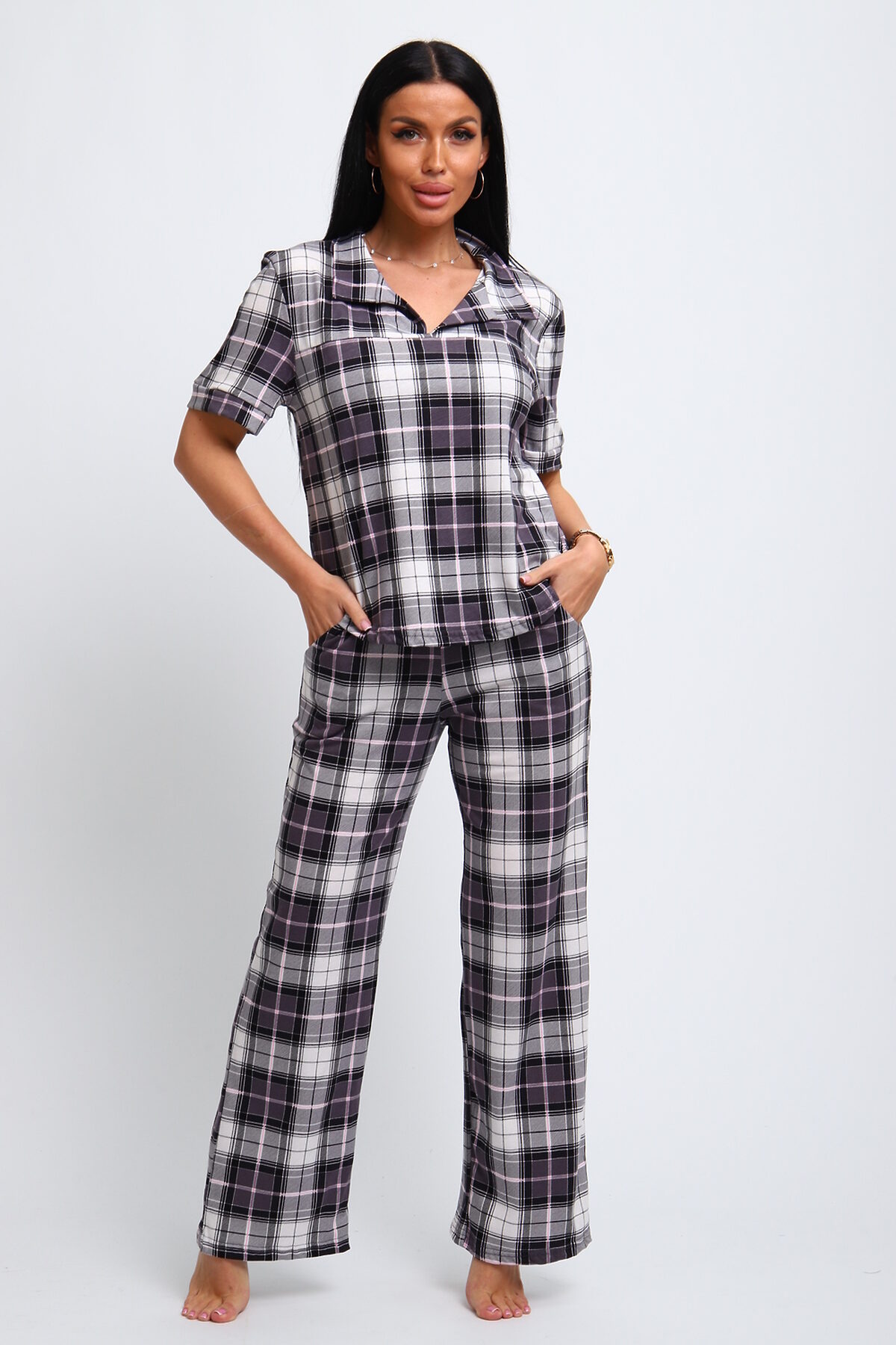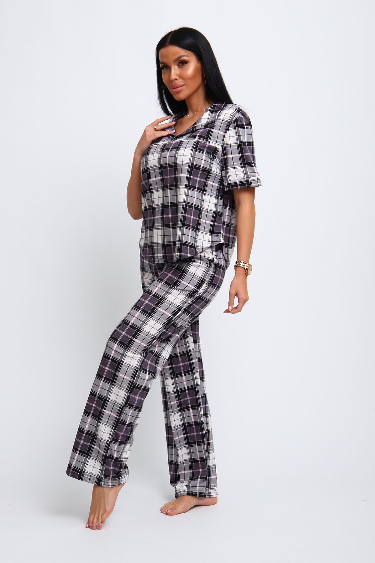 Женская пижама с футболкой и штанами это идеальный домашний комплект, который сочетает в себе удобство и практичность. Легкий и дышащий хлопок делает эту одежду для сна особенно приятной к телу, а свободный прямой крой обеспечивает комфорт в любое время суток. Комплект состоит из футболки с короткими рукавами и брюк на резинке, что позволяет легко надевать и снимать его, не стесняя движений. Брюки с карманами.