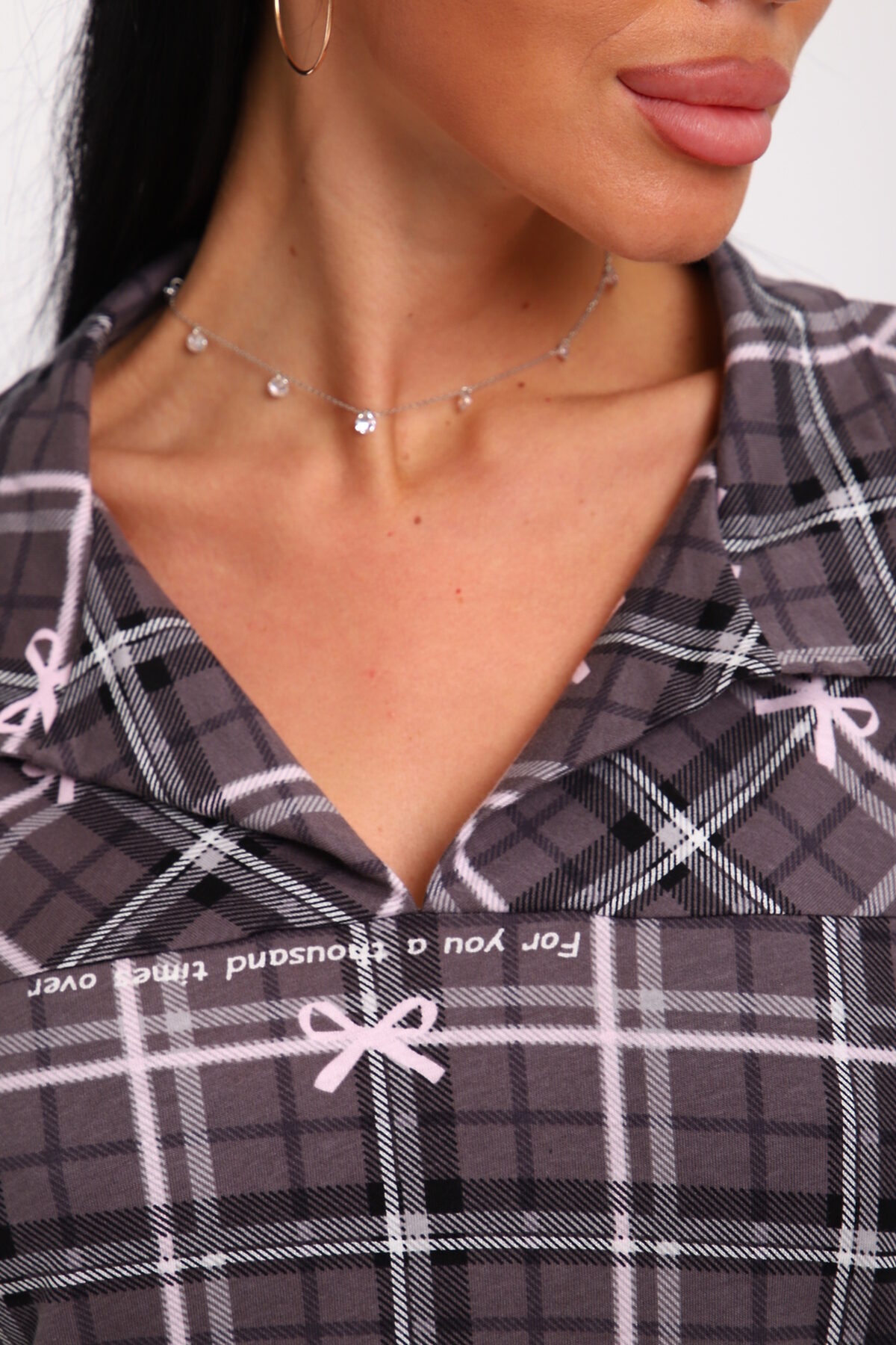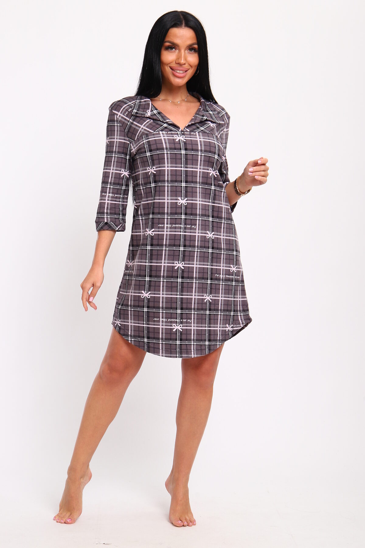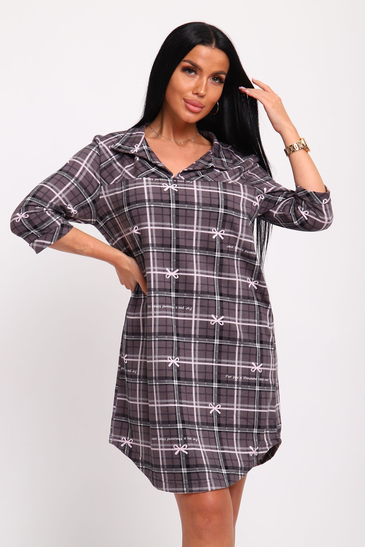 Туника женская полуприлегающего силуэта. Отложной воротник, рукав 3/4.Длина выше колена. Низ изделия полукруглый.