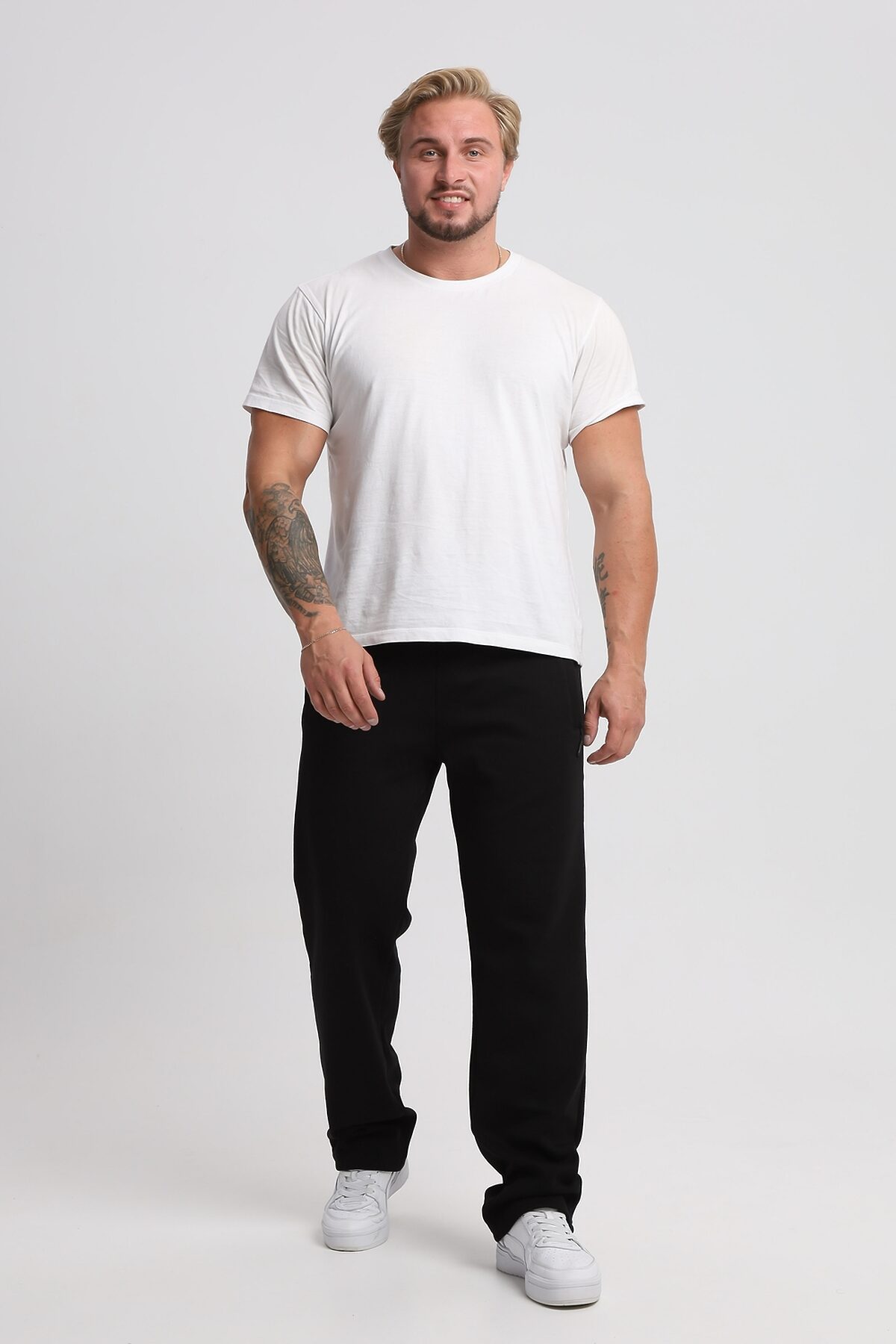 Утепленные мужские брюки из трикотажа с начесом, выполнены из качественного материала. Пояс на резинке со шнурком, что позволяет регулировать объем и посадку, карманы по бокам на молнии. Свободный силуэт не сковывает движения, а плотный начес согреет даже в самые холодные дни. Штаны свободного кроя - отличное решение для тех, кто предпочетает удобство и современный актуальный дизайн. Брюки отлично подойдут для прогулок, отдыха, дома.