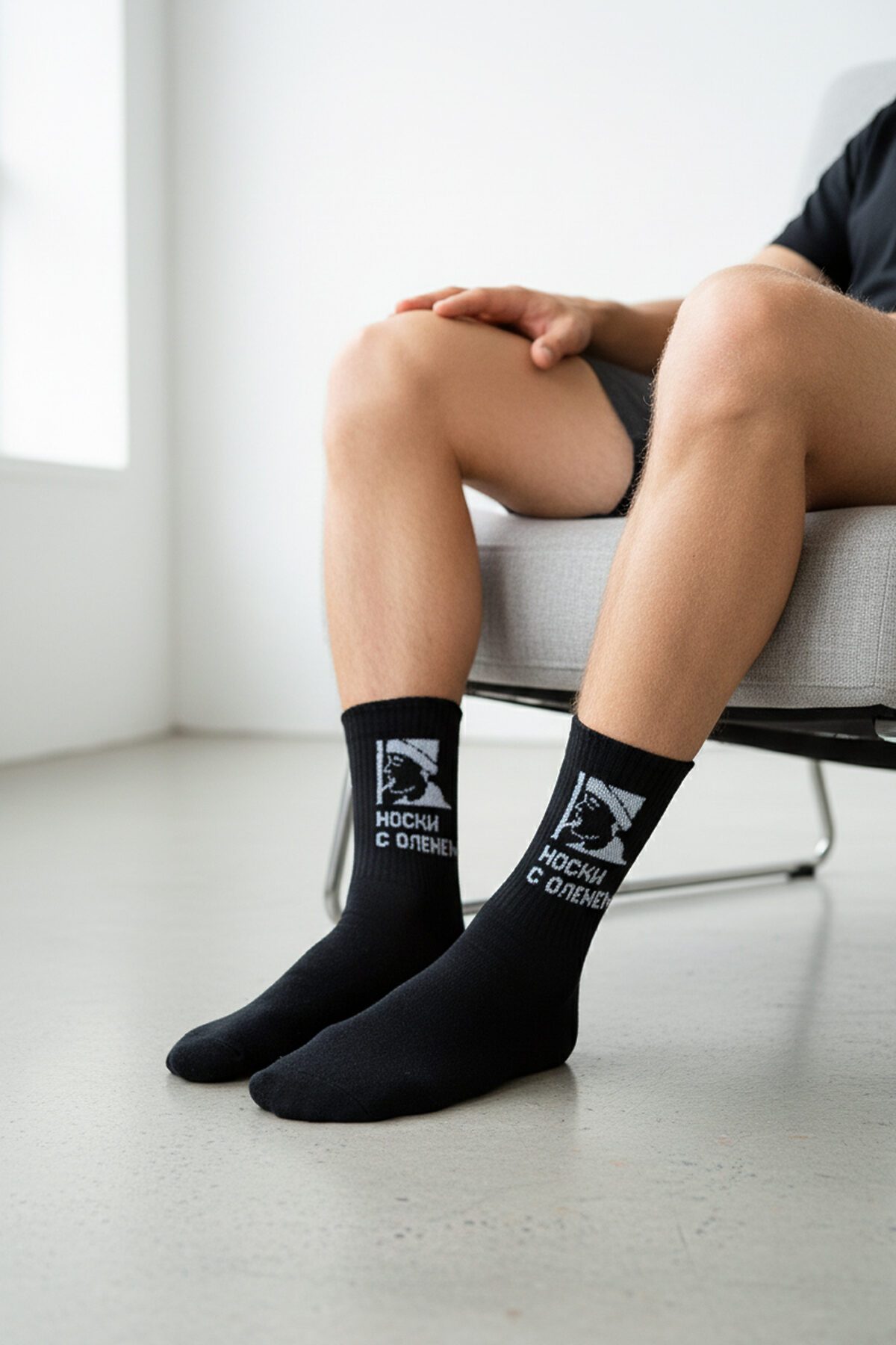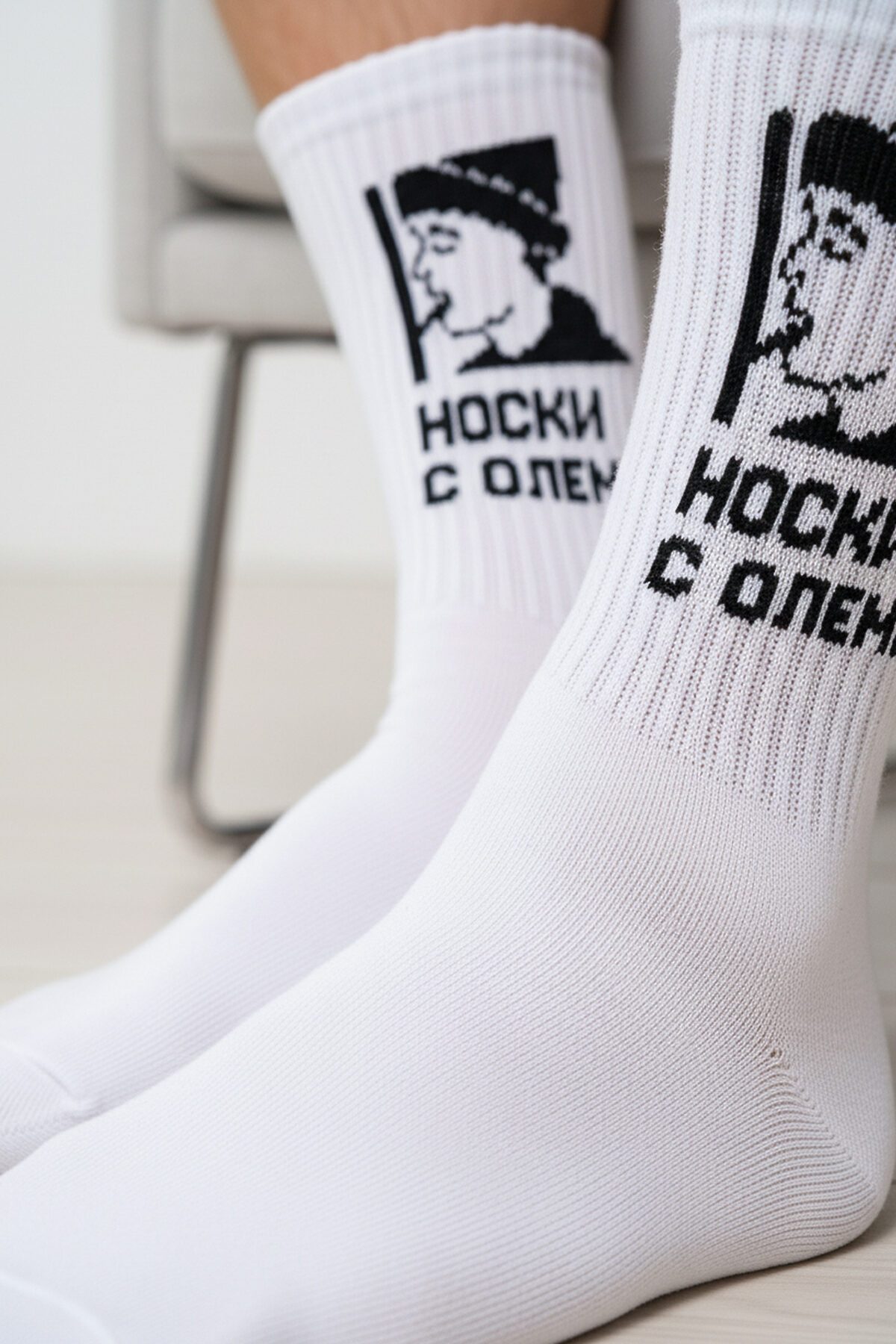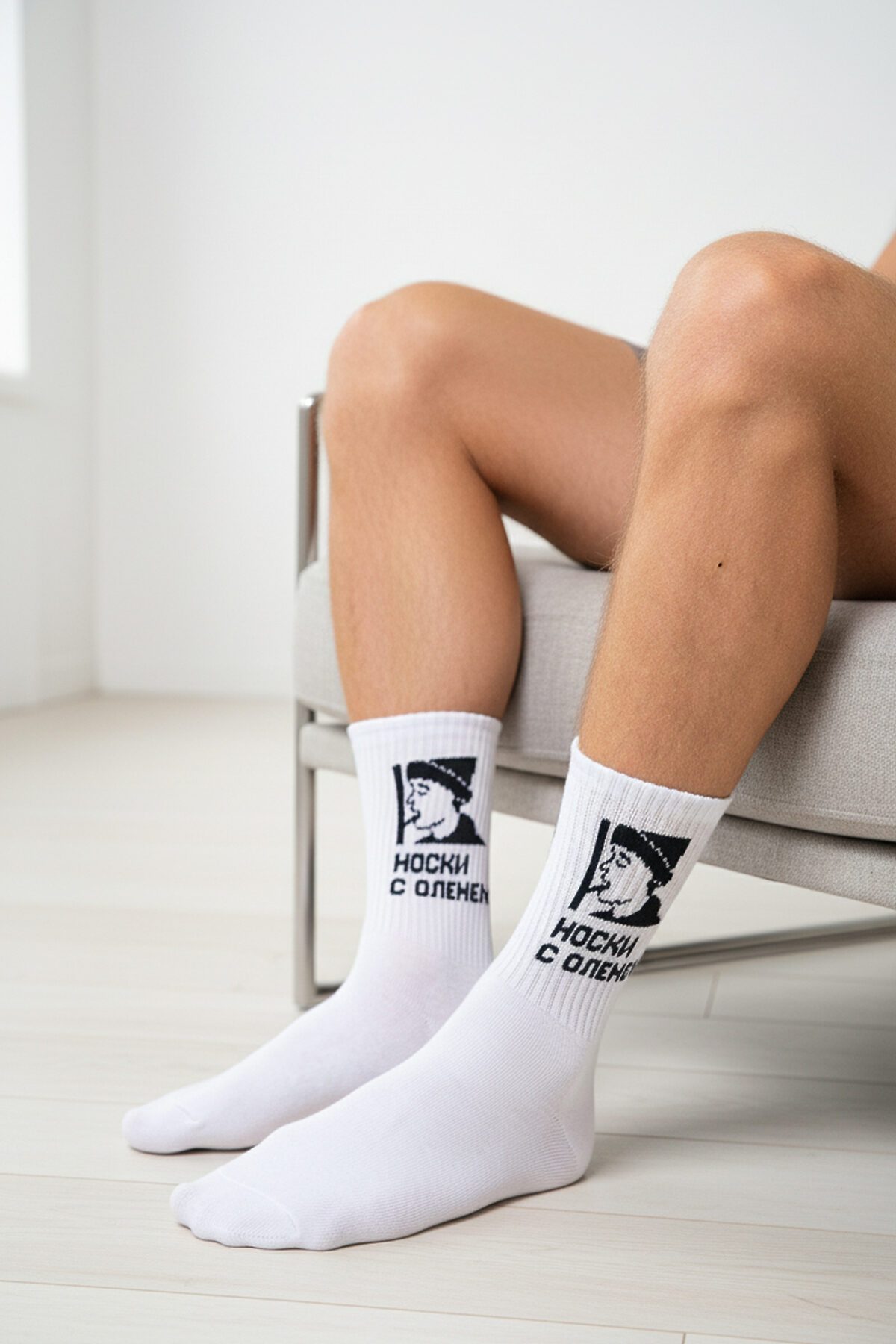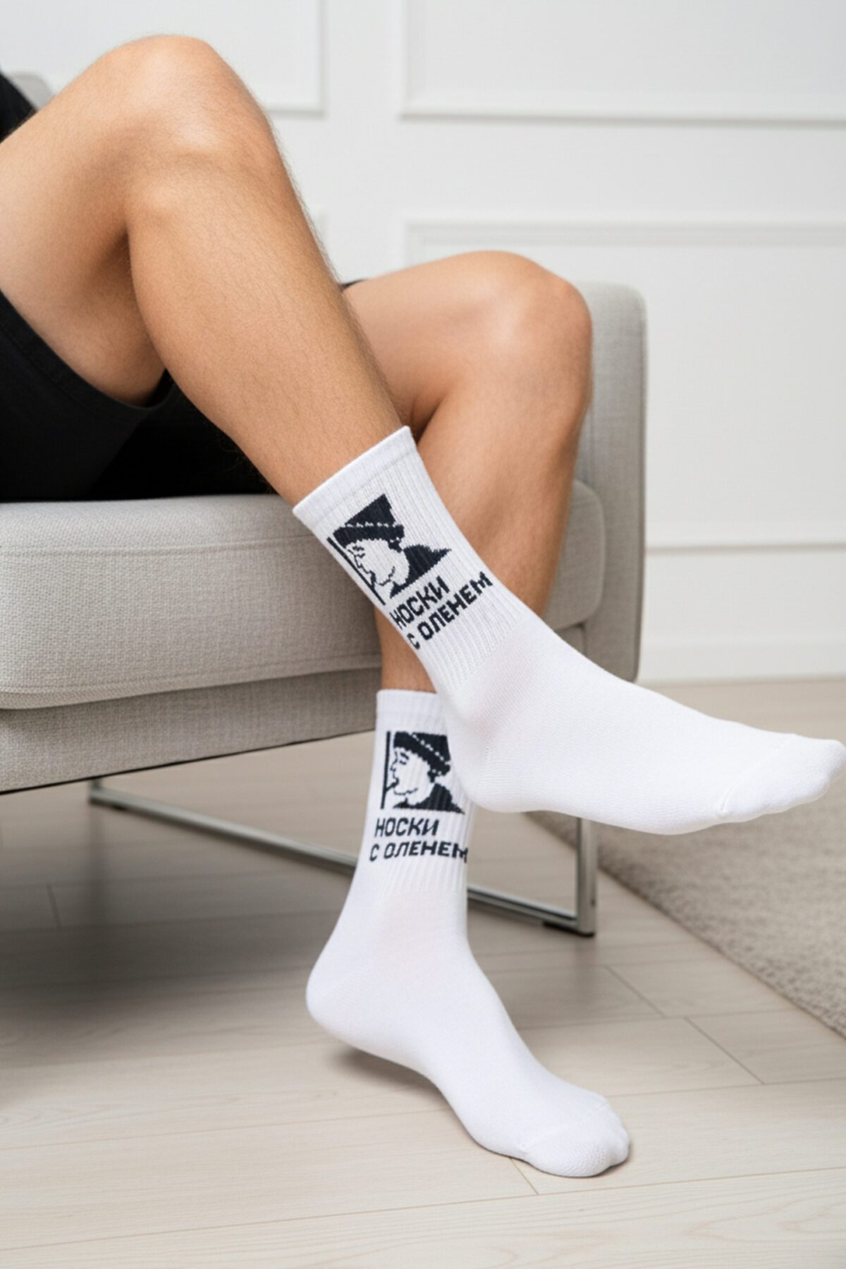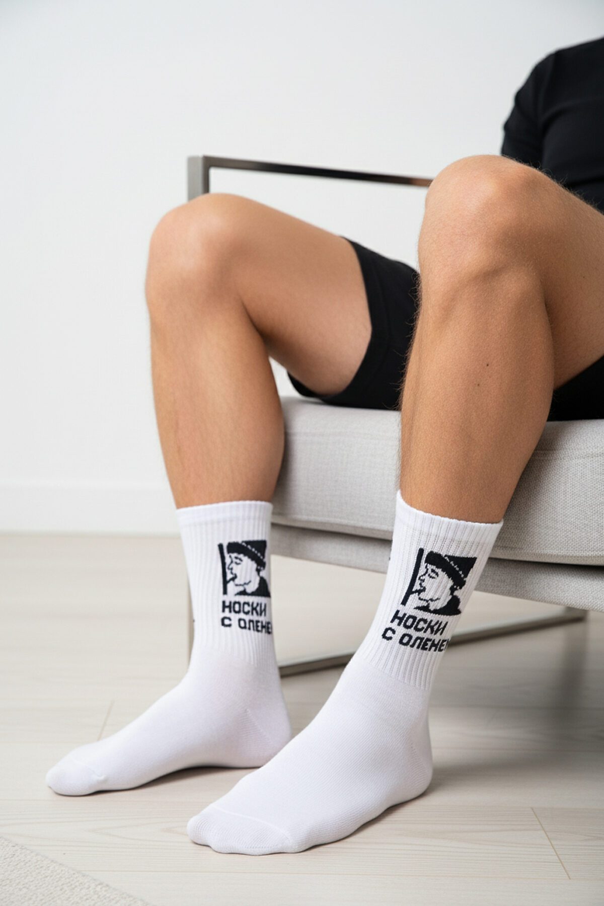 Забавные и стильные мужские носки из мягкого хлопка идеальный способ добавить юмора в повседневный образ! Белая основа с крутым принтом! В чёрно-белом стиле, эти гетры подойдут для casual-лука, спорта или просто для хорошего настроения.