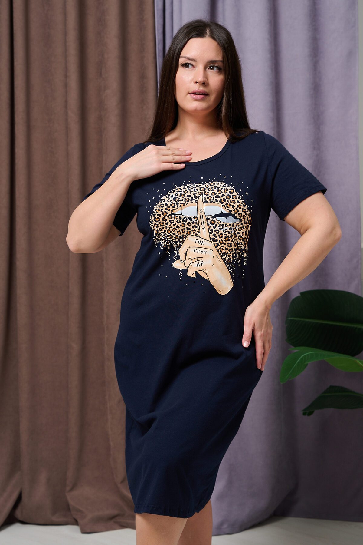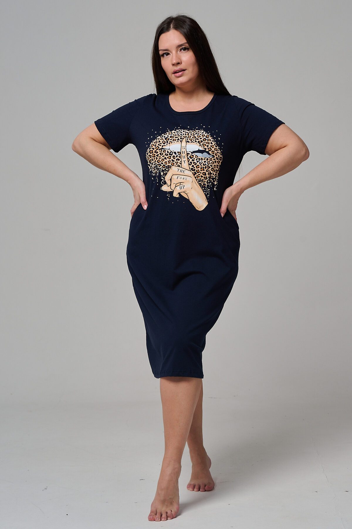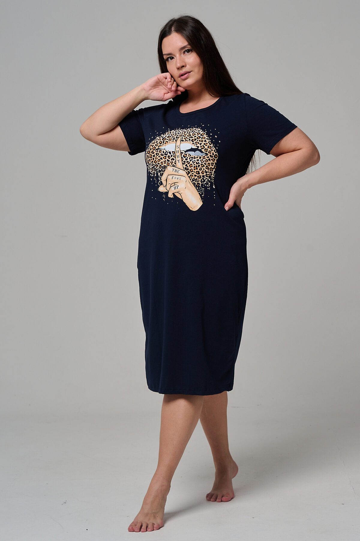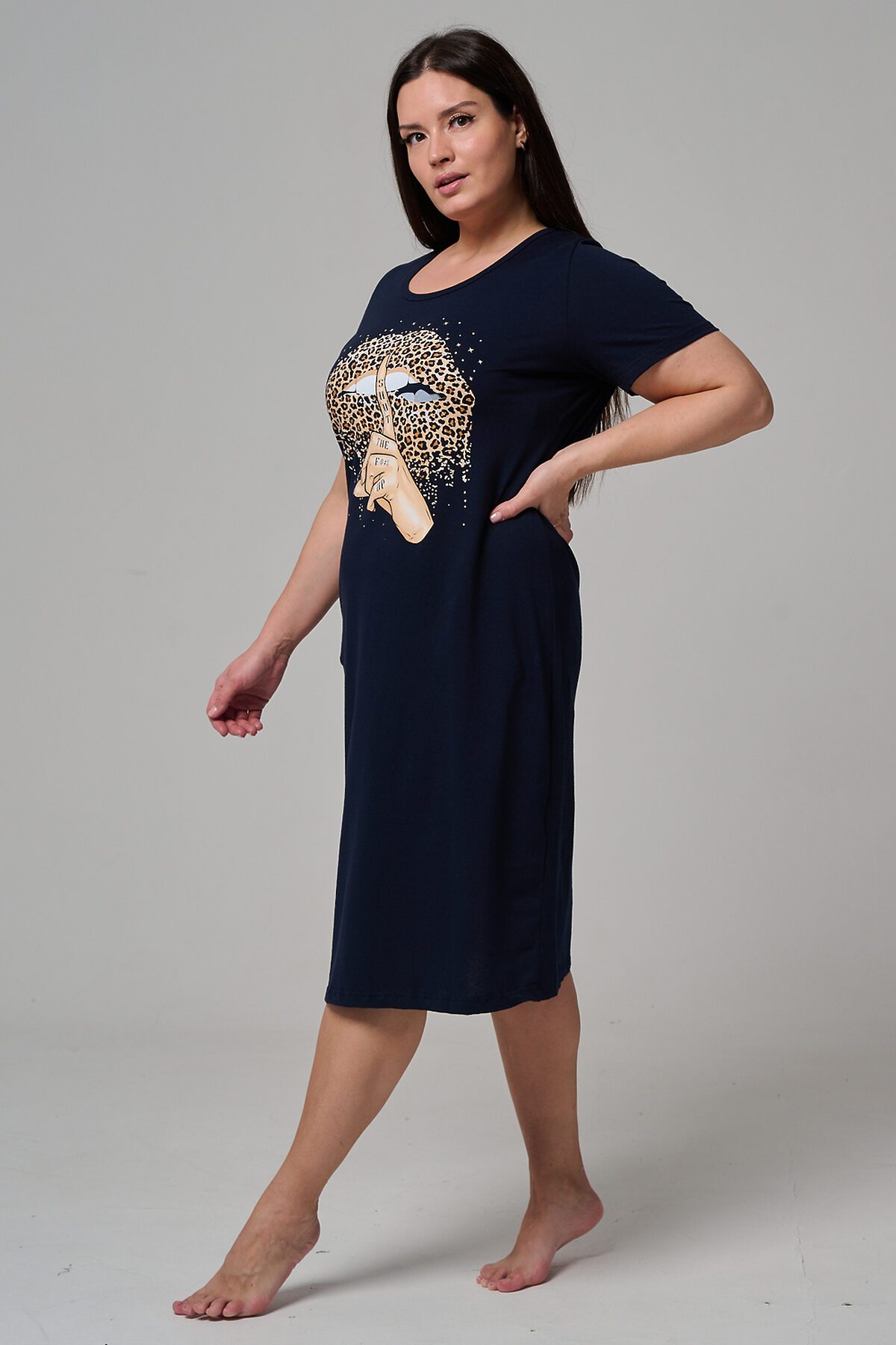 Туника полуприлегающего силуэта, с округлой горловиной, длиной ниже колена. Рукав втачной, короткий. Горловина обработана бейкой из основного полотна.