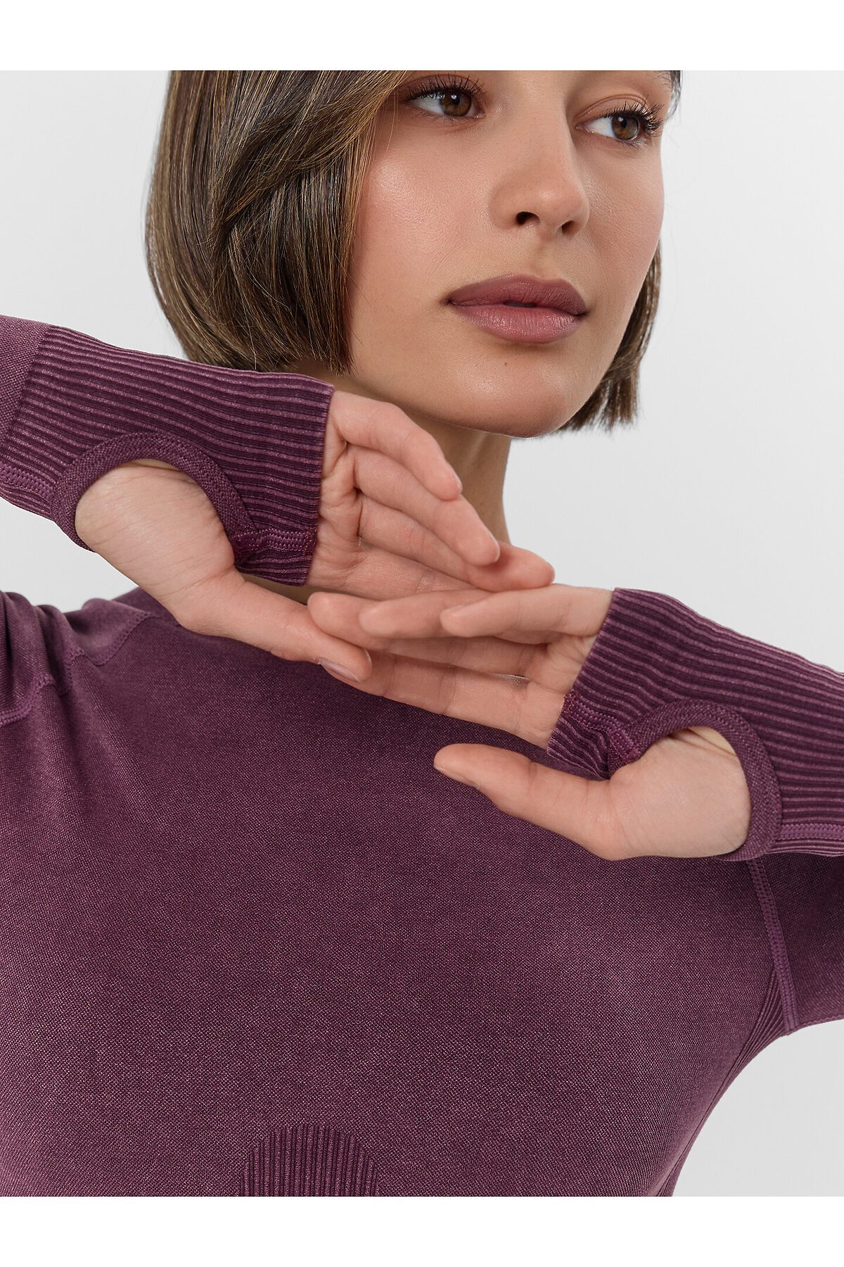 Женский джемпер-рашгард создан для активных тренировок. Плотный эластичный материал мягко облегает тело, обеспечивая легкую поддержку мышц во время нагрузки. Фактурные вставки визуально подчеркивают линии фигуры, создавая собранный спортивный силуэт. Удлиненные рукава с отверстием под большой палец надежно фиксируются на запястьях, не смещаясь при интенсивных движениях.