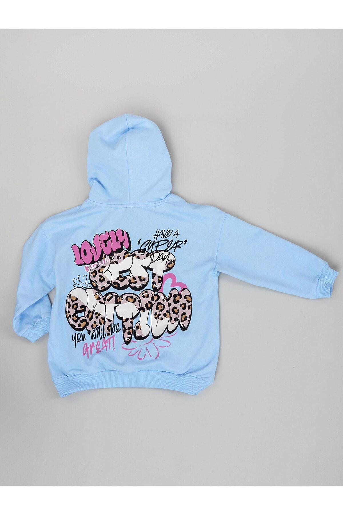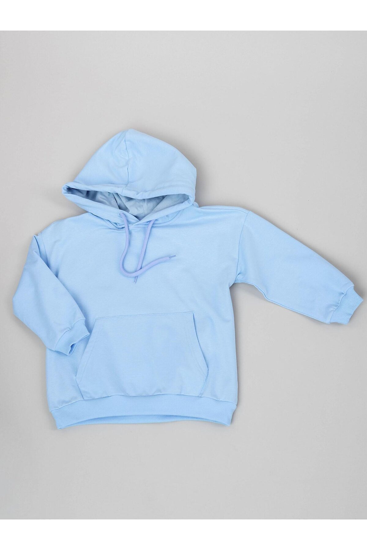 Толстовка (пуловер) для девочки голубого цвета — уютная и мягкая модель из футера с начёсом, отлично подходит для прохладной погоды и повседневной носки.