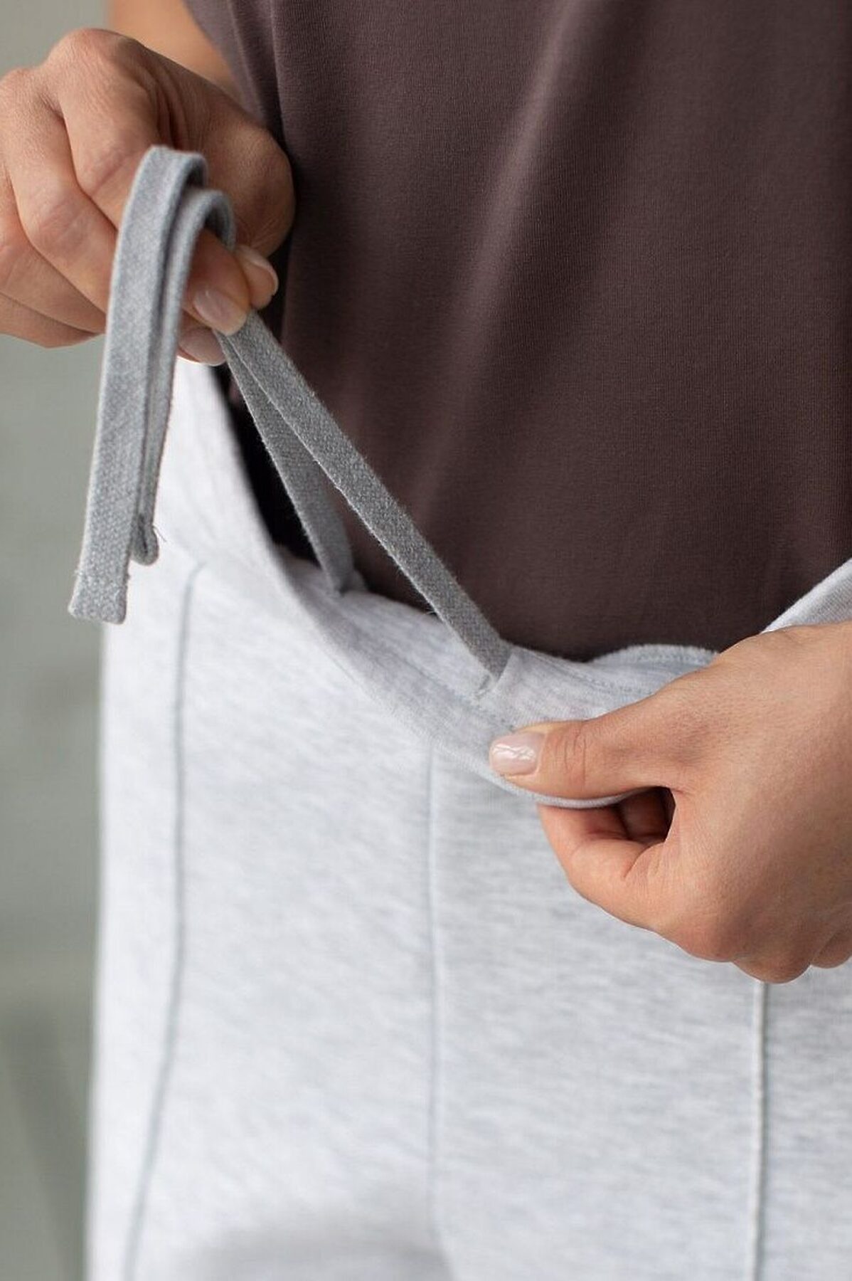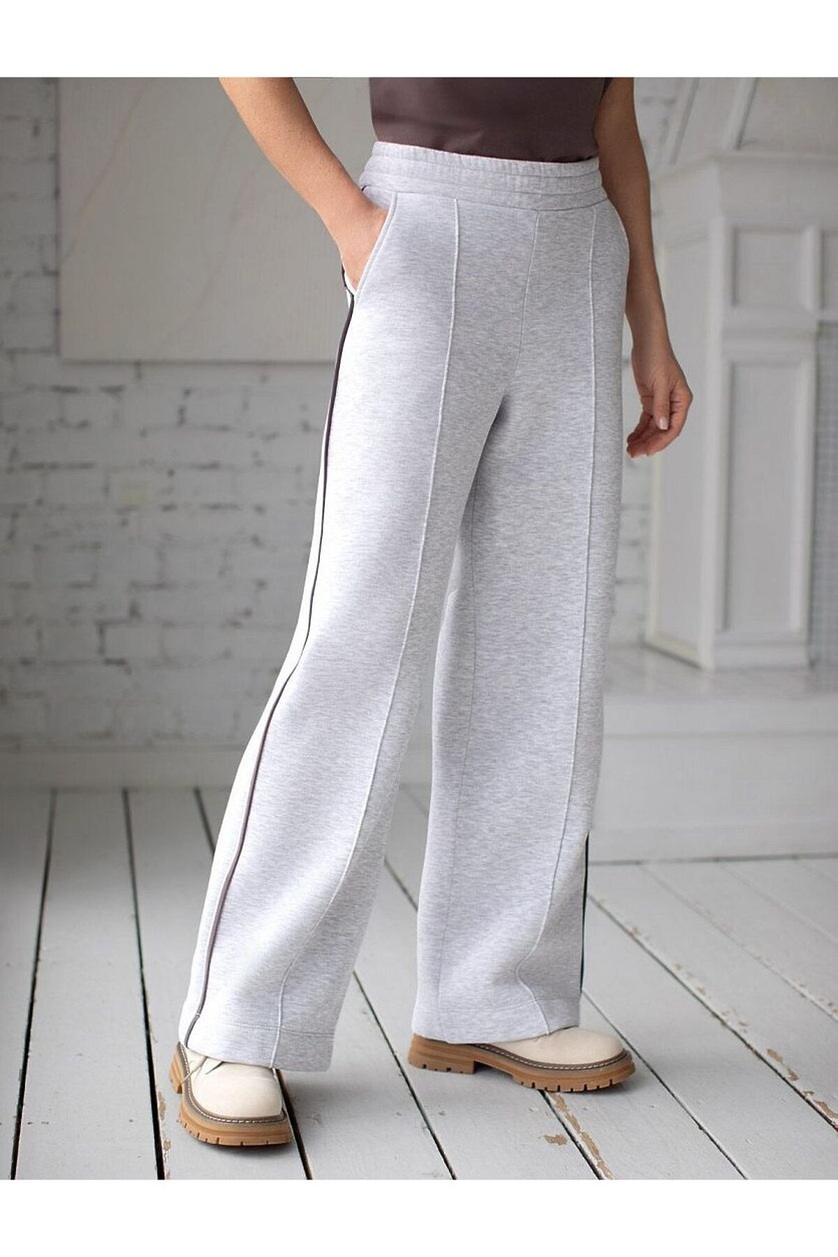 Теплые прямые брюки серого цвета с эффектом меланж из эластичного футера трехнитки с начесом созданы для максимального комфорта в холодную погоду. Мягкий материал приятный к телу, хорошо держит форму, не вытягивается и не теряет форму даже при активной носке. Благодаря дышащим свойствам премиального футера, брюки подходят на любую погоду, обеспечивая оптимальный микроклимат и уют. Свободный крой и эластичный широкий пояс делает посадку удобной для разных типов фигуры и размеров, включая большие и маленькие. Застроченные стрелки визуально вытягиват силуэт и подчеркивают эстетичнось повседневных брюк, а контрастные тонкие лампасы добавляют актуальности образу. Благодаря особенностям трехниточного плетения и внутреннему слою с начесом, эти брюки отлично сохраняют тепло в холодные осенние и зимние дни, при этом в них вы будете выглядеть модно и современно. Сочетайте в комплекте с худи D49.142.
