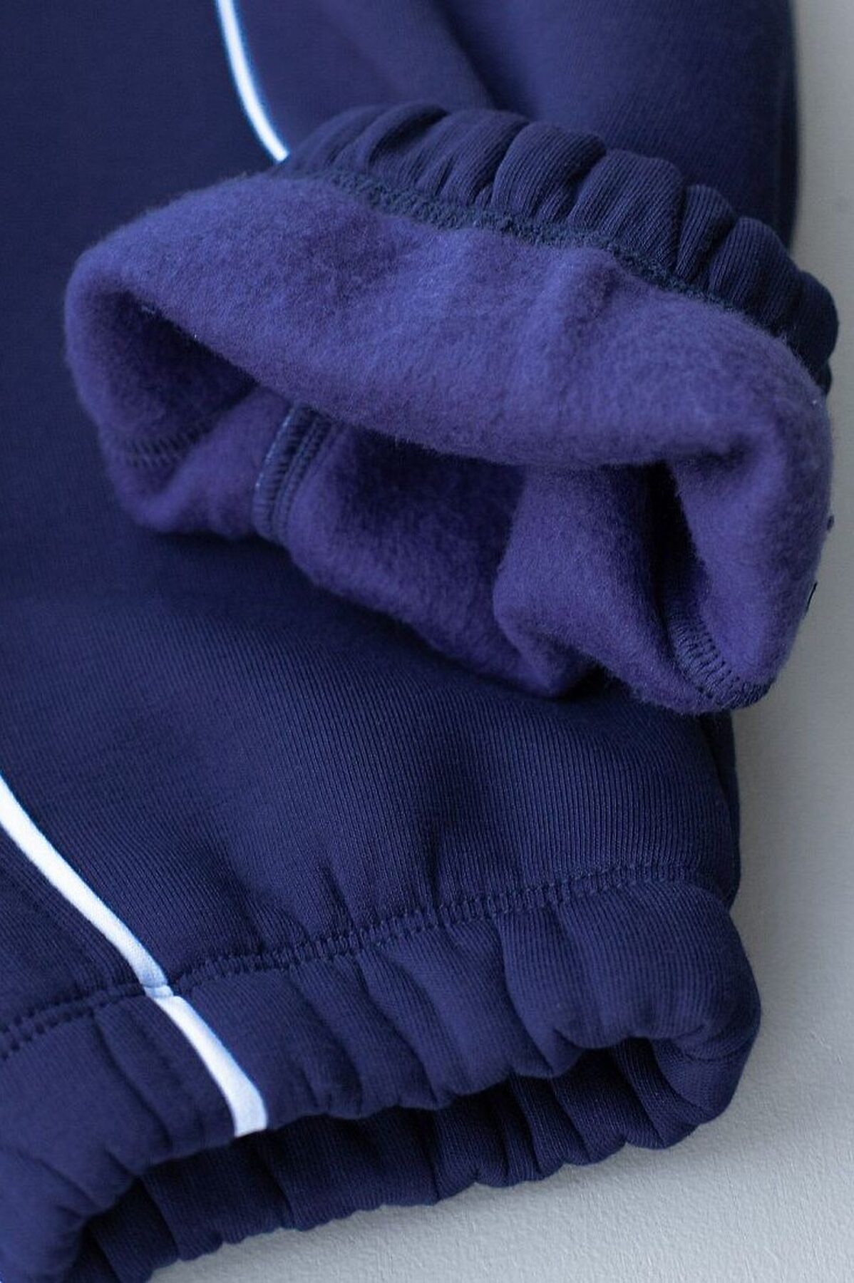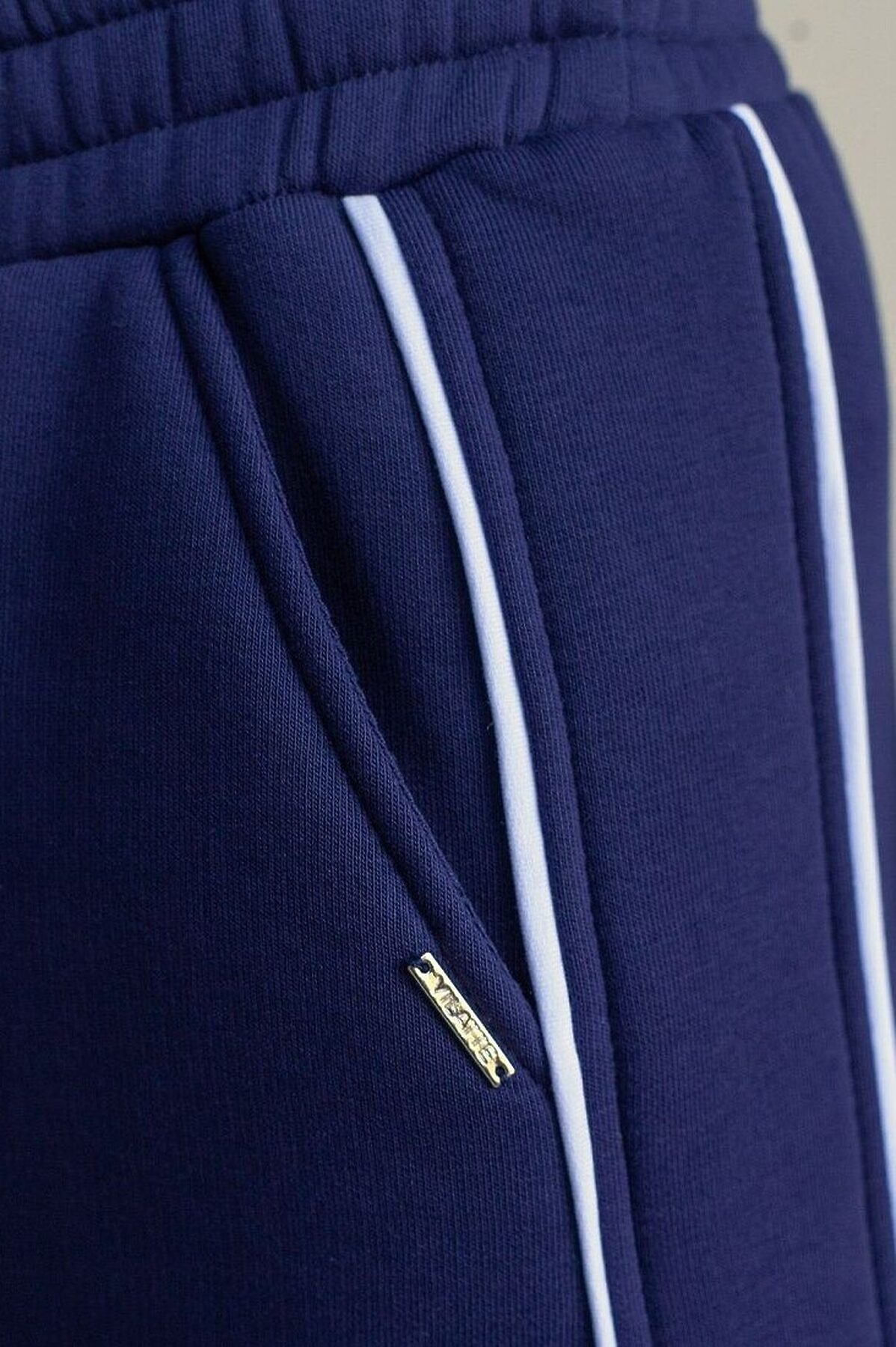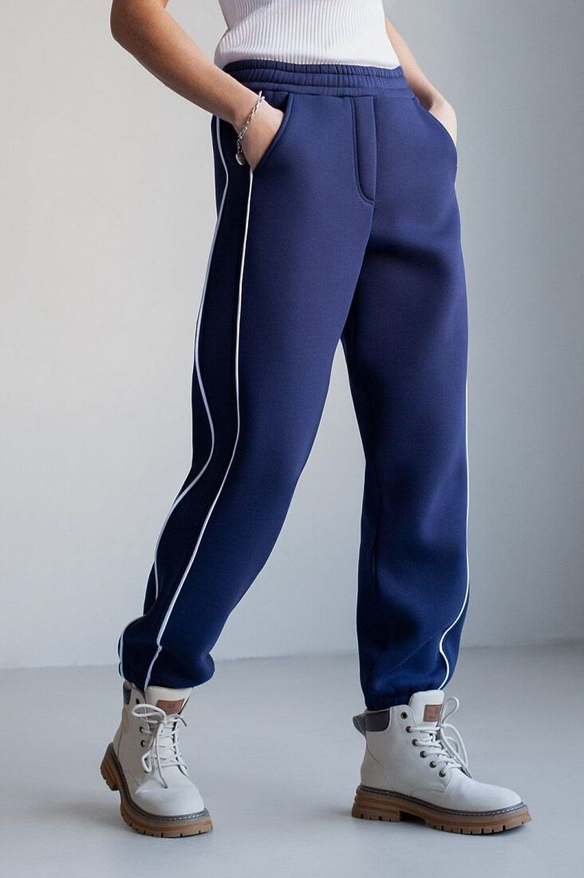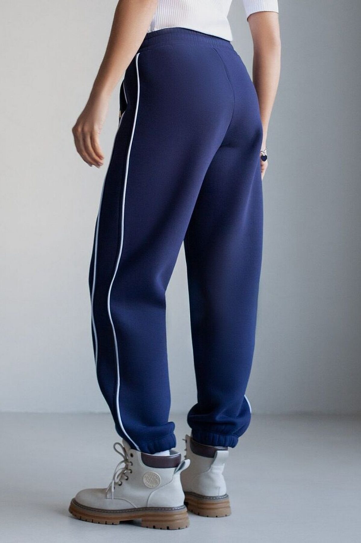 Теплые брюки джоггеры темно-синего цвета с эффектом меланж из эластичного футера трехнитки с начесом созданы для максимального комфорта в холодную погоду. Мягкий материал приятный к телу, хорошо держит форму, не вытягивается и не теряет форму даже при активной носке. Благодаря дышащим свойствам премиального футера, брюки подходят на любую погоду, обеспечивая оптимальный микроклимат и уют. Свободный крой и эластичный широкий пояс делает посадку удобной для разных типов фигуры и размеров, включая большие и маленькие. Контрастные тонкие лампасы добавляют актуальности образу. Благодаря особенностям трехниточного плетения и внутреннему слою с начесом, эти брюки отлично сохраняют тепло в холодные осенние и зимние дни, при этом в них вы будете выглядеть модно и современно. Сочетайте в комплекте с худи D49.142 D49.143