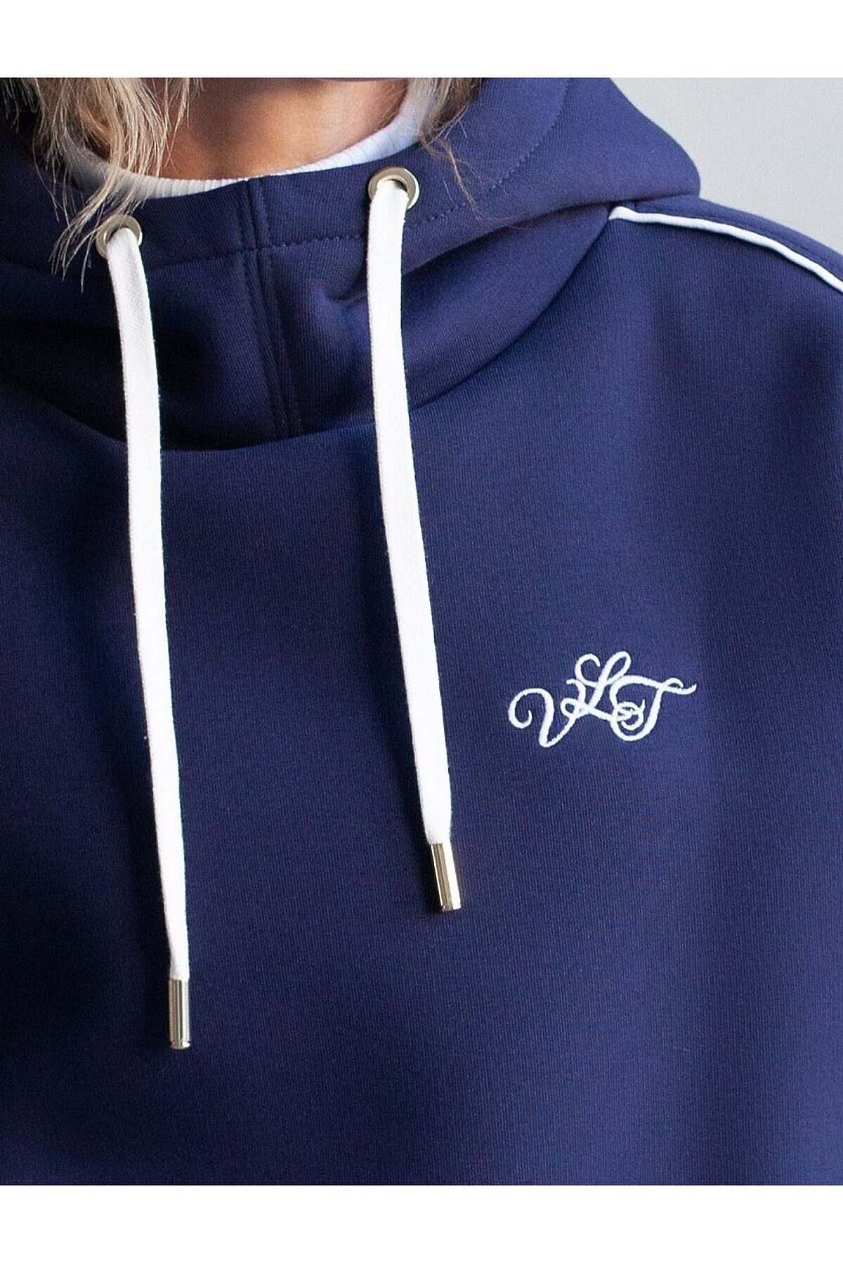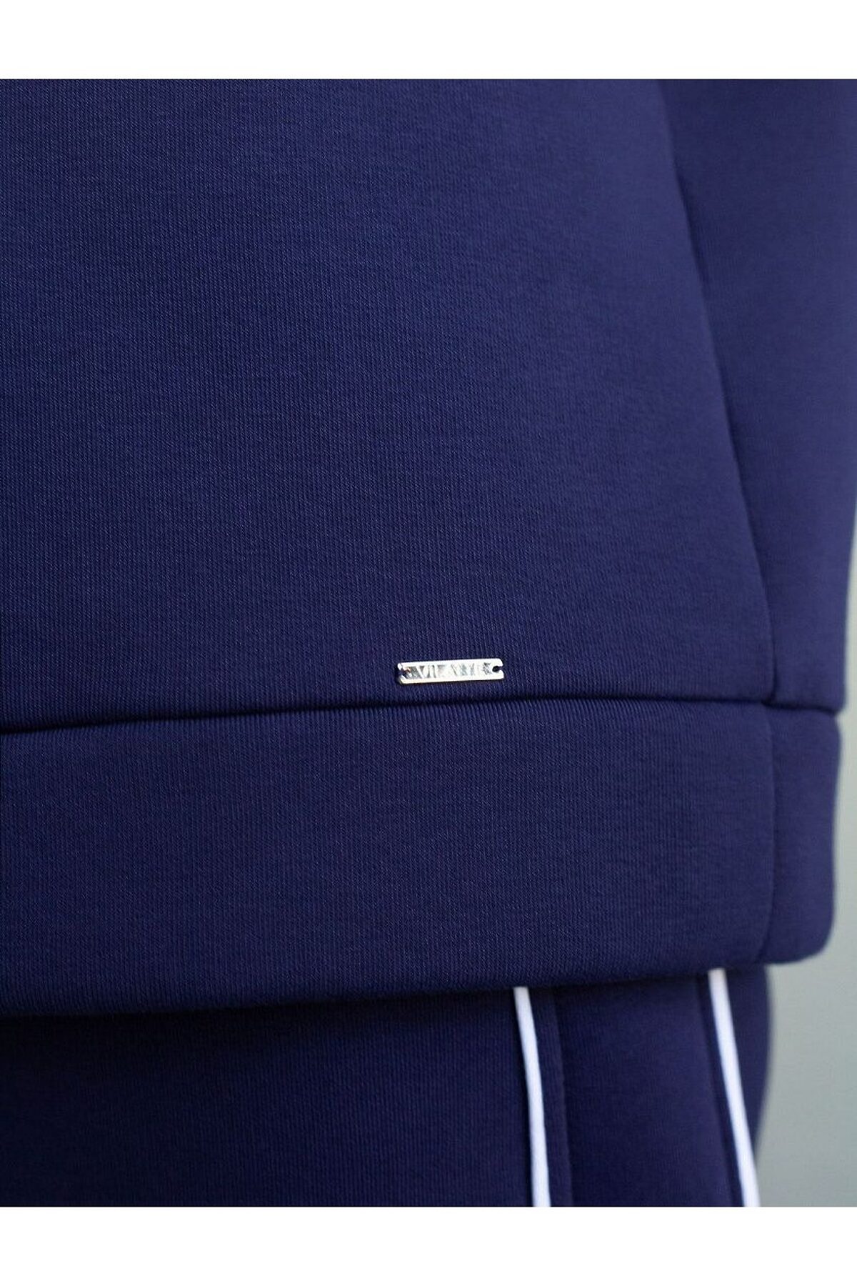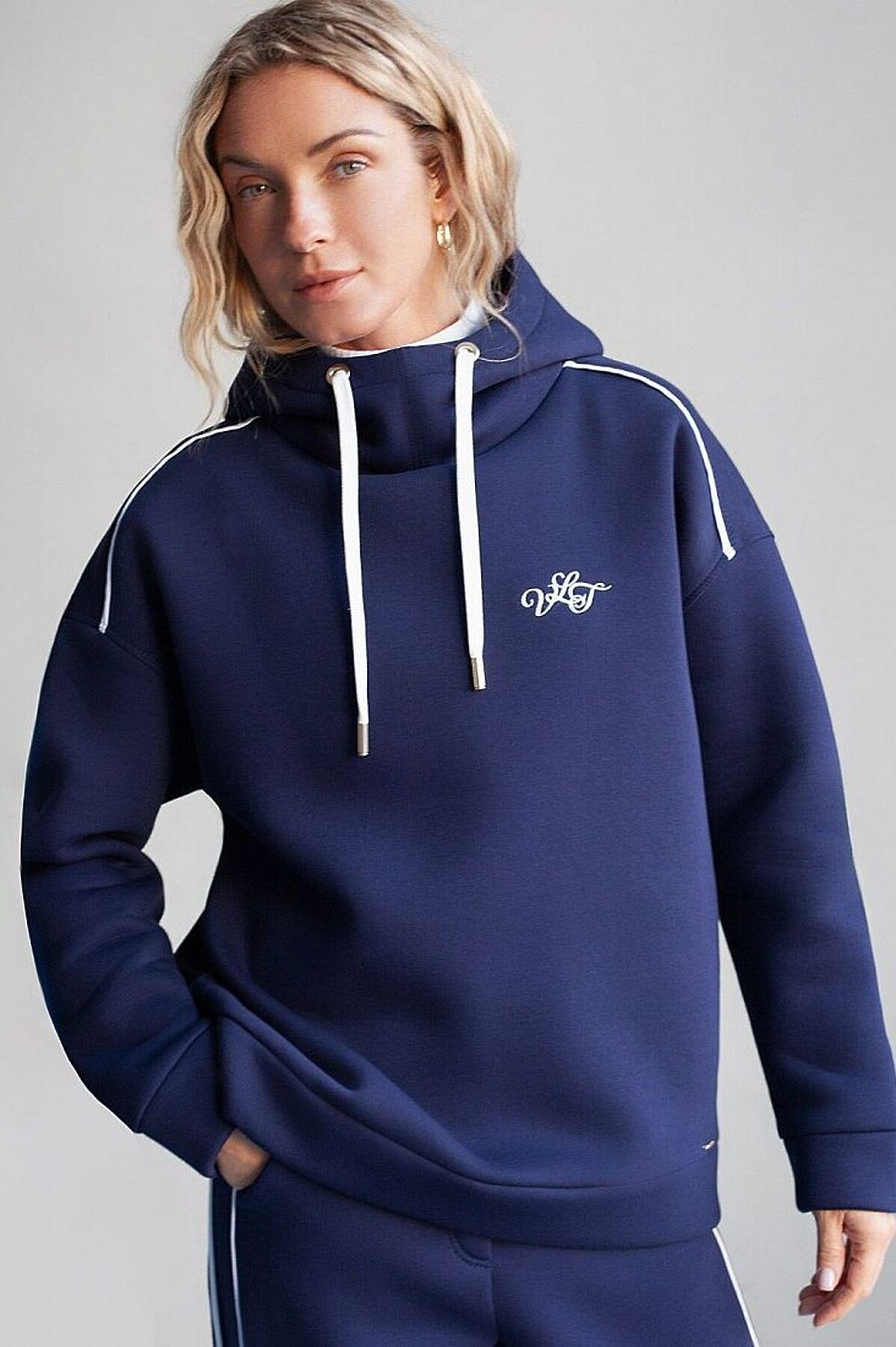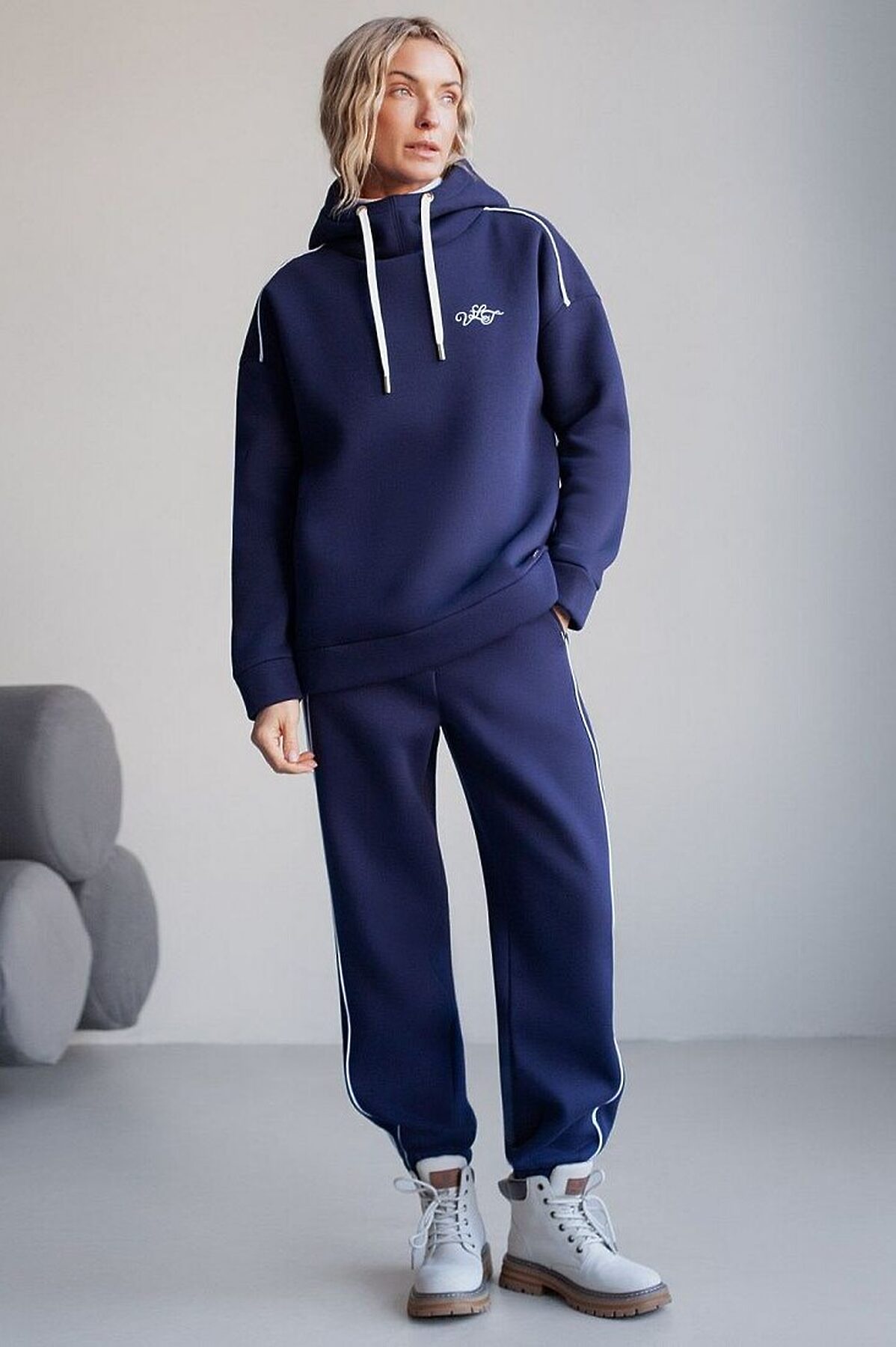 Уютное худи темно-синего цвета с цельнокроенным капюшоном и спущенной линией плеча создано для комфорта в холодную погоду. Модель выполнена из премиального футера трехнитки с мягким начесом, что обеспечивает дополнительное тепло и приятные ощущения при носке. Глубокий капюшон дополнен шнуром для регулировки объема, что обеспечивает отличную защиту от ветра и холода, а серебристая фурнитура добавляет стильный акцент к современному худи. Элементы дизайна — минималистичная вышивка с логотипом бренда и тонкие онтрастные лампасы — делают худи более выразительным без перегруженности деталями, сохраняя эстетичность и современный вид. Эластичные манжеты на рукавах обеспечивают дополнительную защиту от продувания, способствуя сохранению тепла внутри. Натуральный хлопок гарантирует дышащий эффект, позволяя сохранять оптимальный микроклимат тела даже при длительном ношении. Благодаря эластану в составе повседневное худи подходит для активного отдыха, вы будете чувствовать себя свободно в любой ситуации. Представлены бол