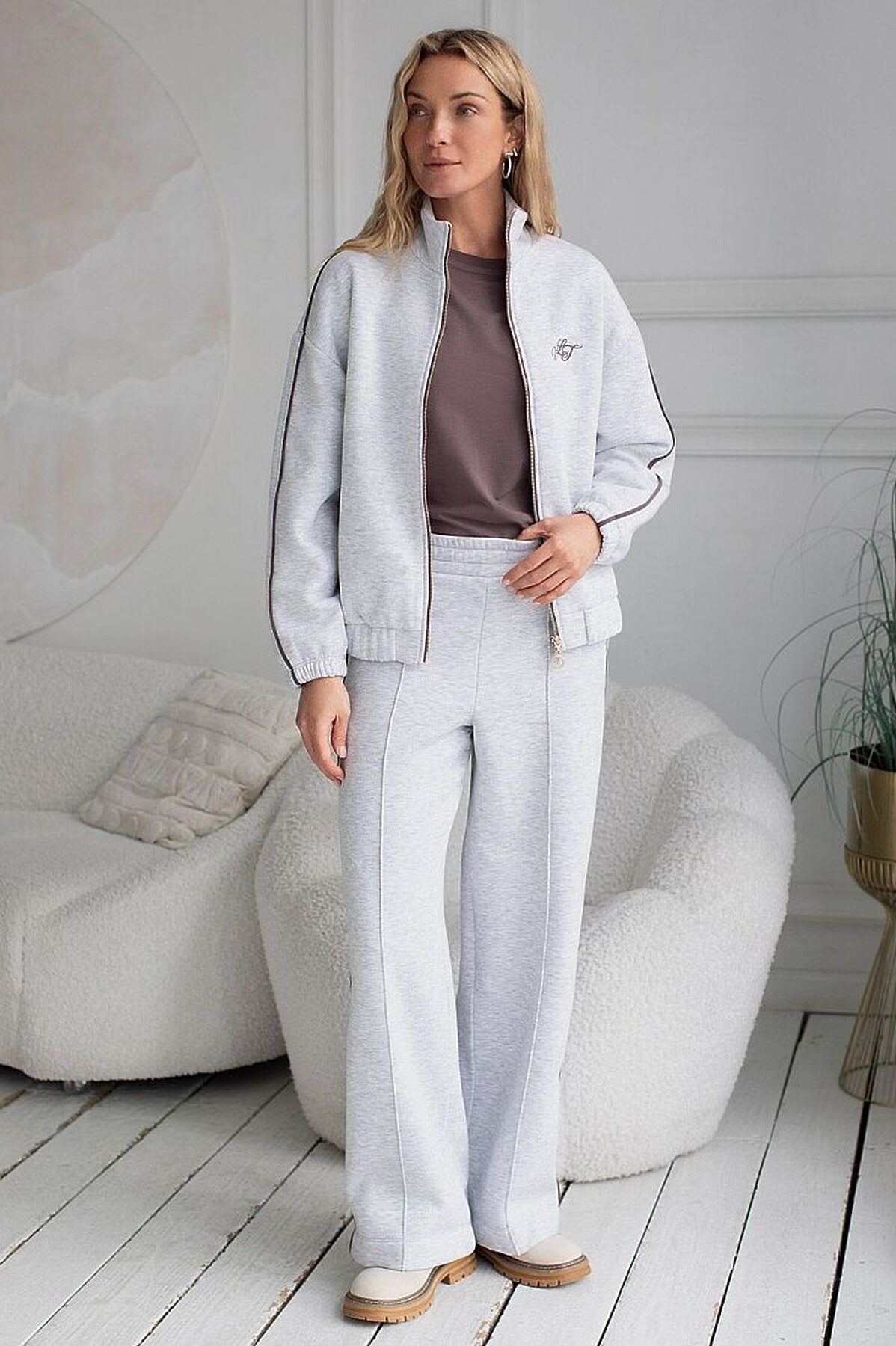 Уютный бомбер со спущенной линией плеча создан для комфорта в холодную погоду. Модель выполнена из премиального футера трехнитки с мягким начесом, что обеспечивает дополнительное тепло и приятные ощущения при носке. Элементы дизайна — минималистичная вышивка с логотипом бренда и тонкие онтрастные лампасы — делают бомбер более выразительным без перегруженности деталями, сохраняя эстетичность и современный вид. Эластичные манжеты на рукавах обеспечивают дополнительную защиту от продувания, способствуя сохранению тепла внутри. Натуральный хлопок гарантирует дышащий эффект, позволяя сохранять оптимальный микроклимат тела даже при длительном ношении. Благодаря эластану в составе повседневный бомбер подходит для активного отдыха, вы будете чувствовать себя свободно в любой ситуации. Сочетается в костюме с брюками D44.159