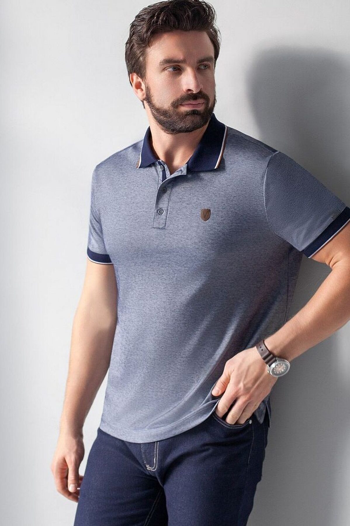 Футболка-поло VILATTE, т.синий меланж